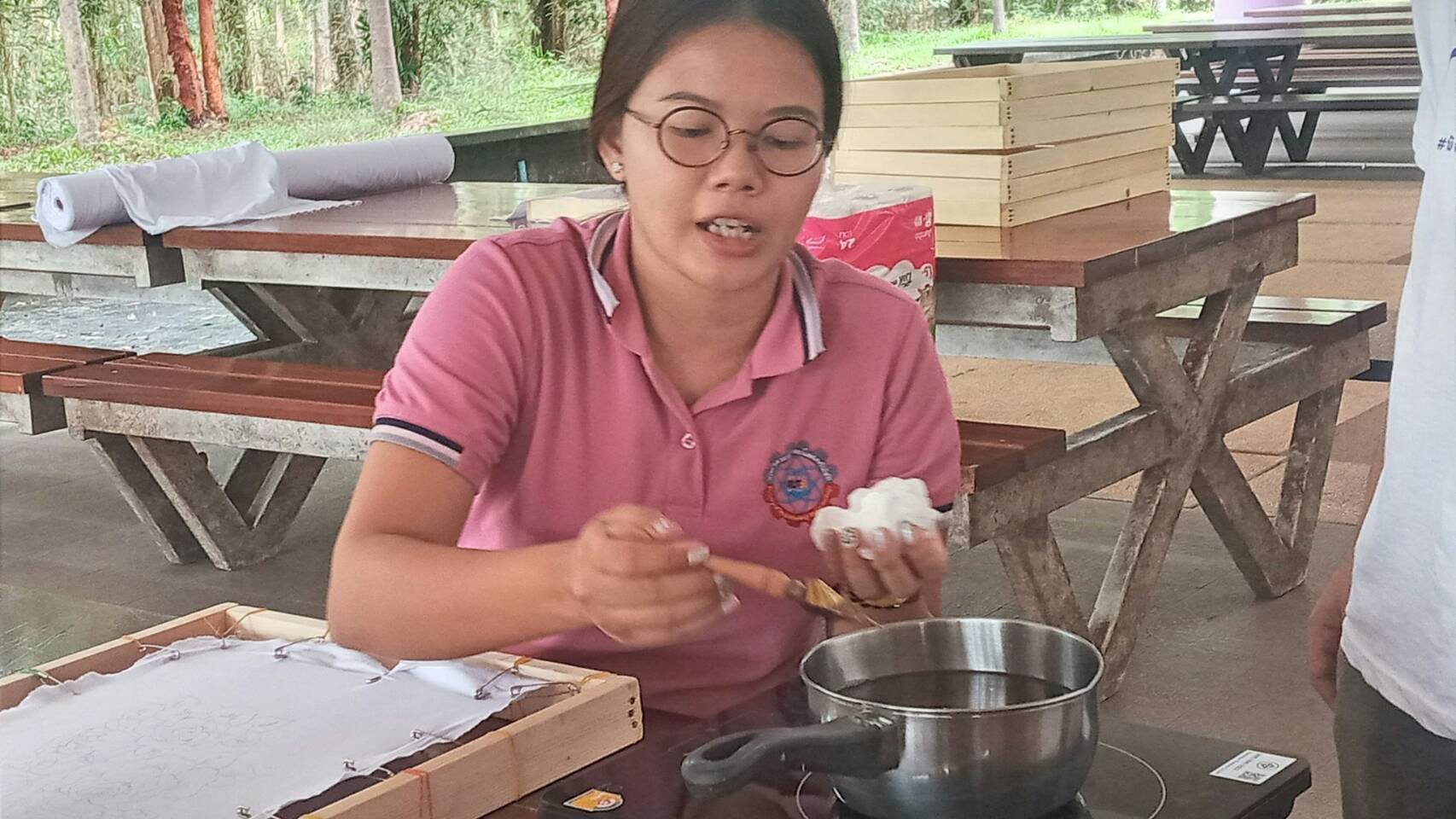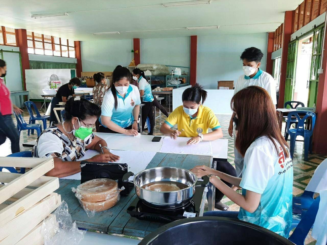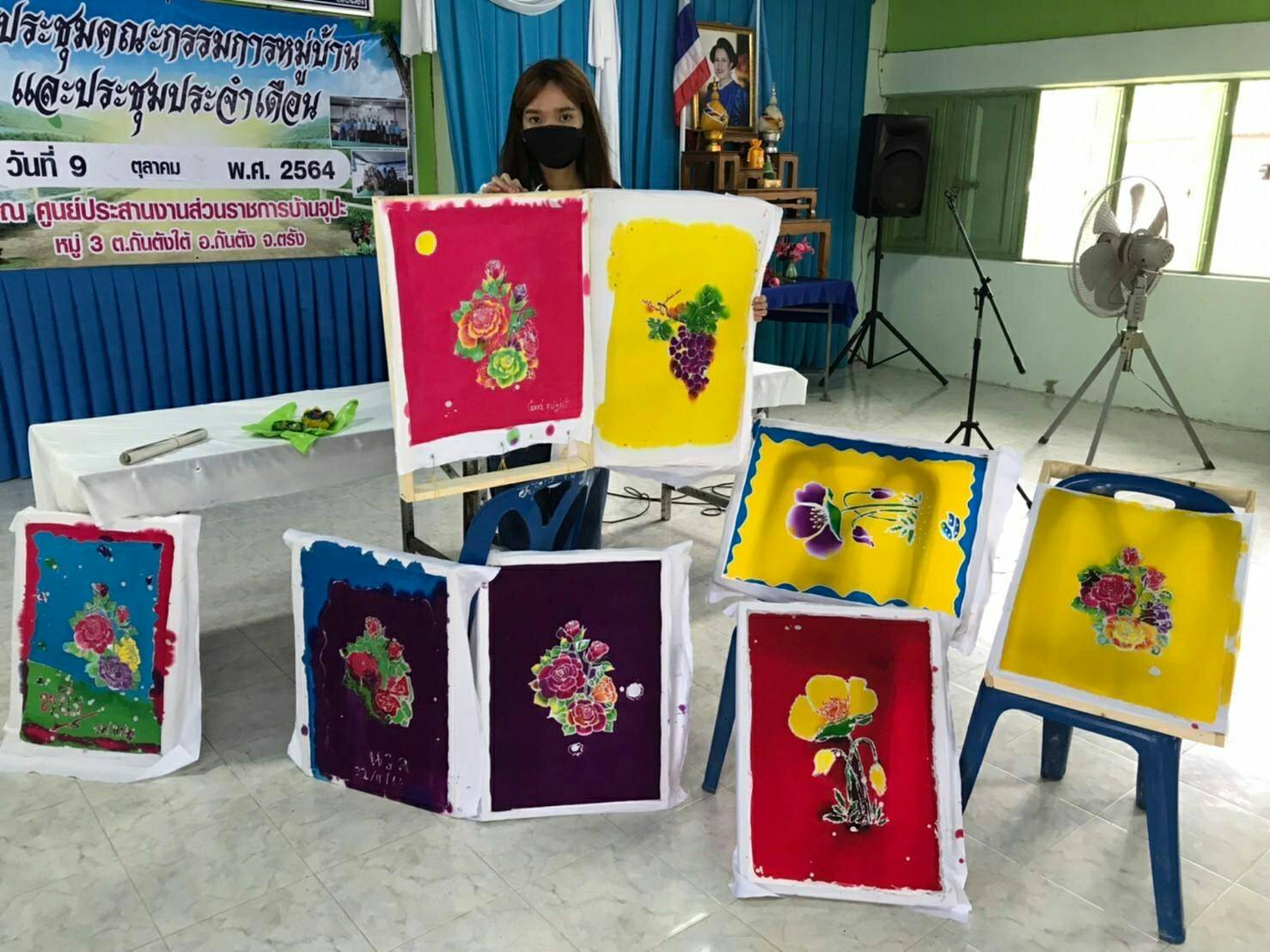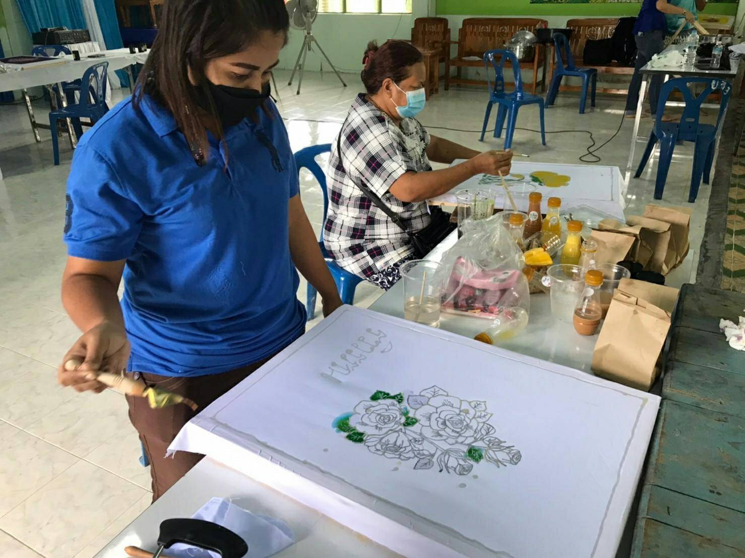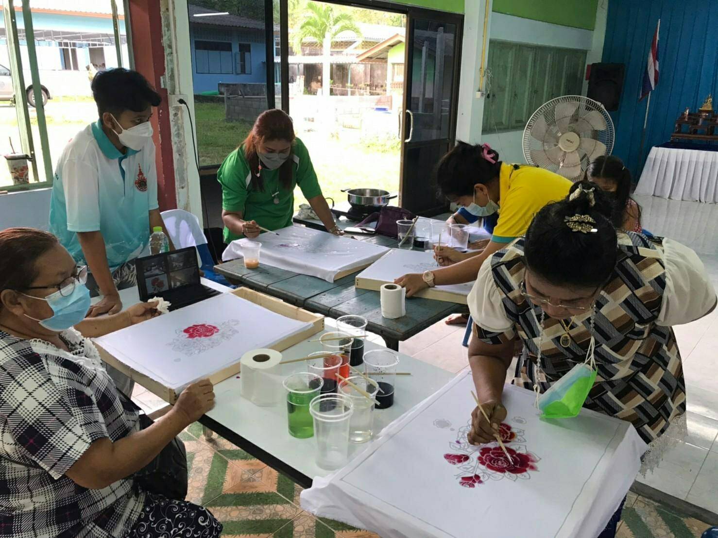 โดยการอบรมเชิงปฏิบัติการผ้าบาติก สร้างลวดลายต่างๆ เพื่อให้เกิดการพัฒนาทักษะในการเสริมสร้างอาชีพใหม่ในชุมชน สามารถเพิ่มรายได้ให้กับชุมชนต่อไป
