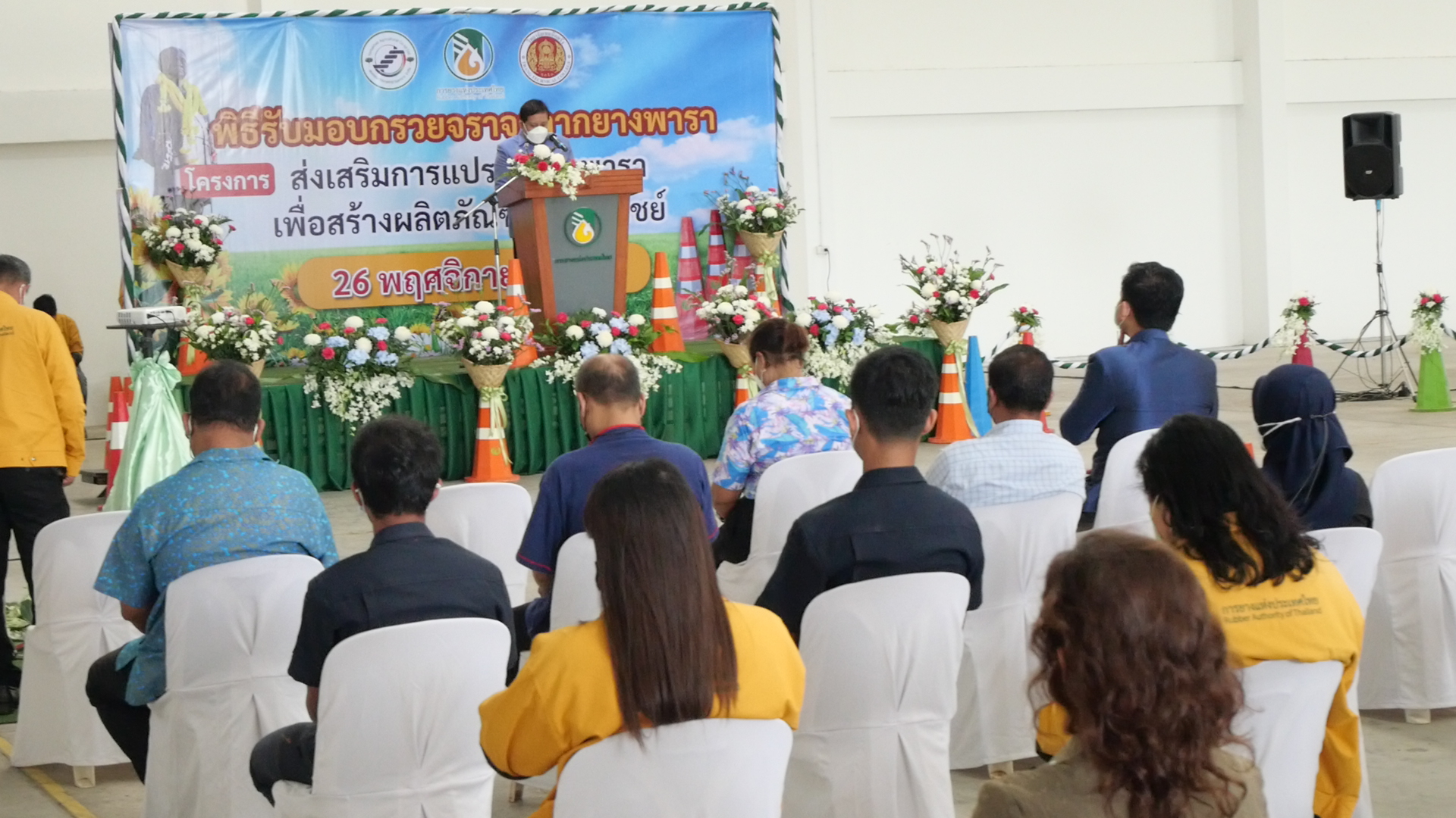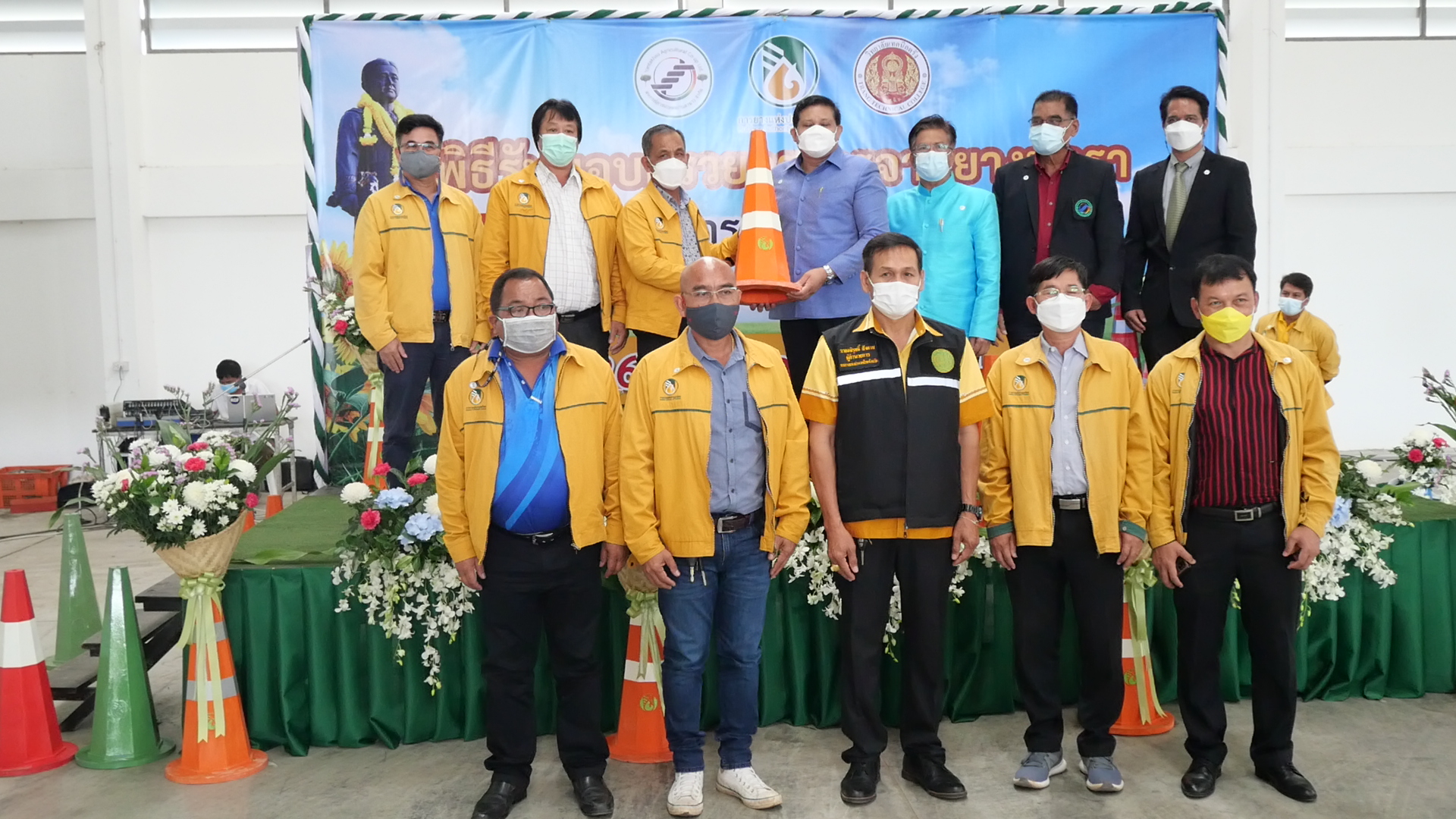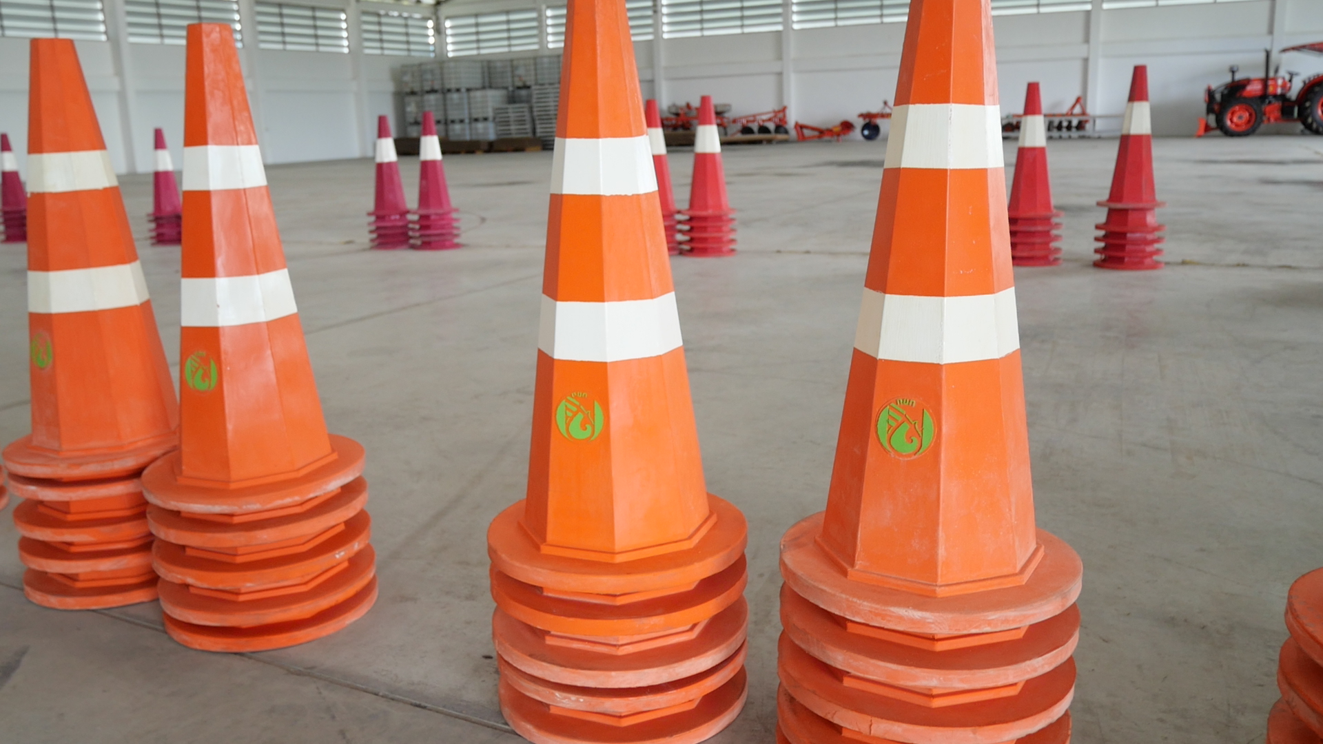 การยางแห่งประเทศไทย จังหวัดตรัง มอบกรวยจราจรจากยางพารา ในโครงการส่งเสริมการแปรรูปยางพารา เพื่อสร้างผลิตภัณฑ์เชิงพาณิชย์