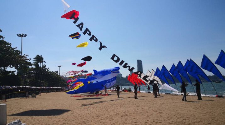 ณ บริเวณ ชั้น G ศูนย์การค้า รอยัลการ์เด้นพลาซ่า พัทยา และ พบกับ THAITAN KITE TEAM THAILAND ที่จะนำคาราวานว่าวมากมายหลากหลายชนิด จากนานาประเทศ มาให้นักท่องเที่ยวได้ชมกัน ณ ริมหาดพัทยา ตั้งแต่โซนหน้าศูนย์การค้า รอยัลการ์เด้นพลาซ่า พัทยา ยาวไป 300 เมตร จัดเต็มพื้นที่ เพื่อส่งเสริมการท่องเที่ยวประเทศไทยในช่วงเทศกาล ประจักษ์สู่สายตาชาวไทยและชาวอินเดียในทั่วโลก และเป็นการเสริมสร้างความสัมพันธ์วัฒนธรรมอันดีงามระหว่างสองประเทศ และเพื่อสนับสนุน SME ท้องถิ่นที่นำเสนอสินค้าแนววัฒนธรรมอินเดีย