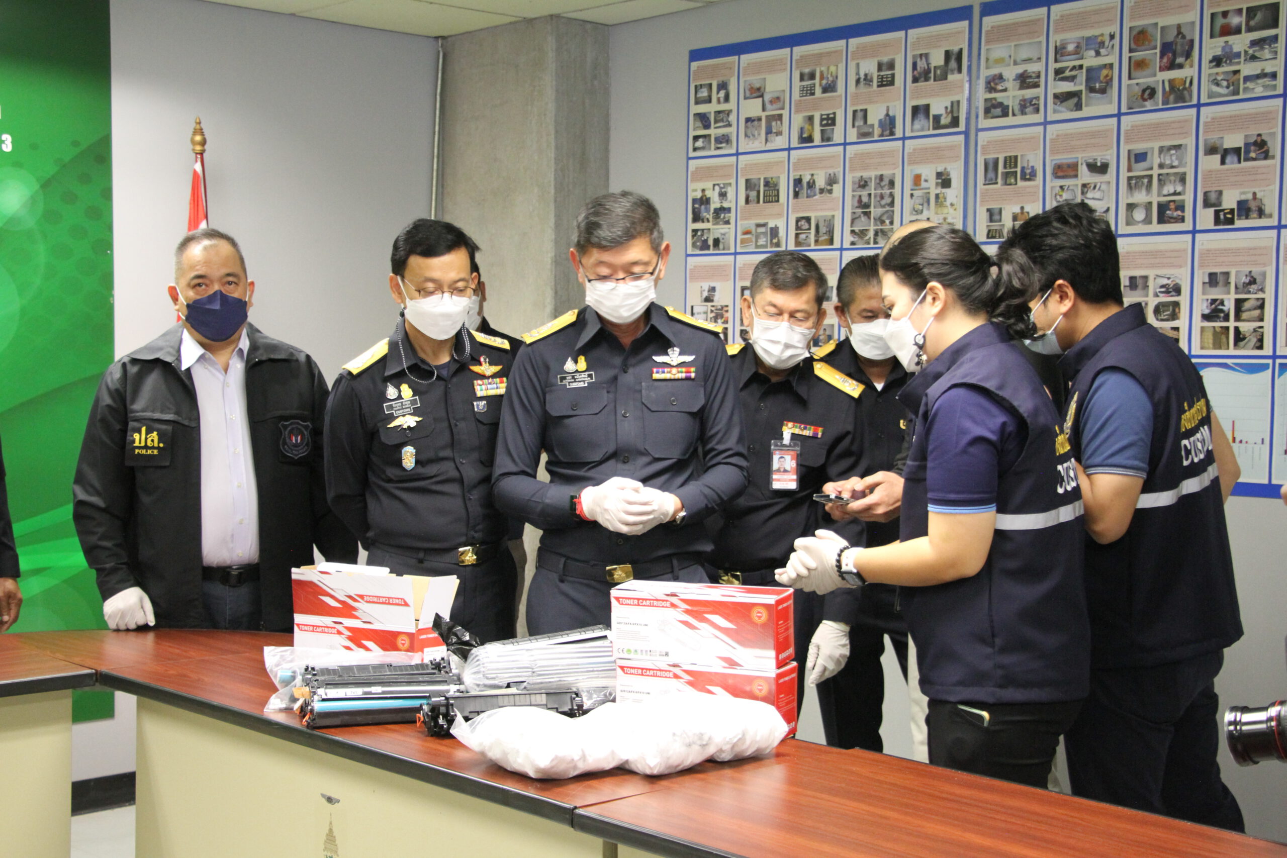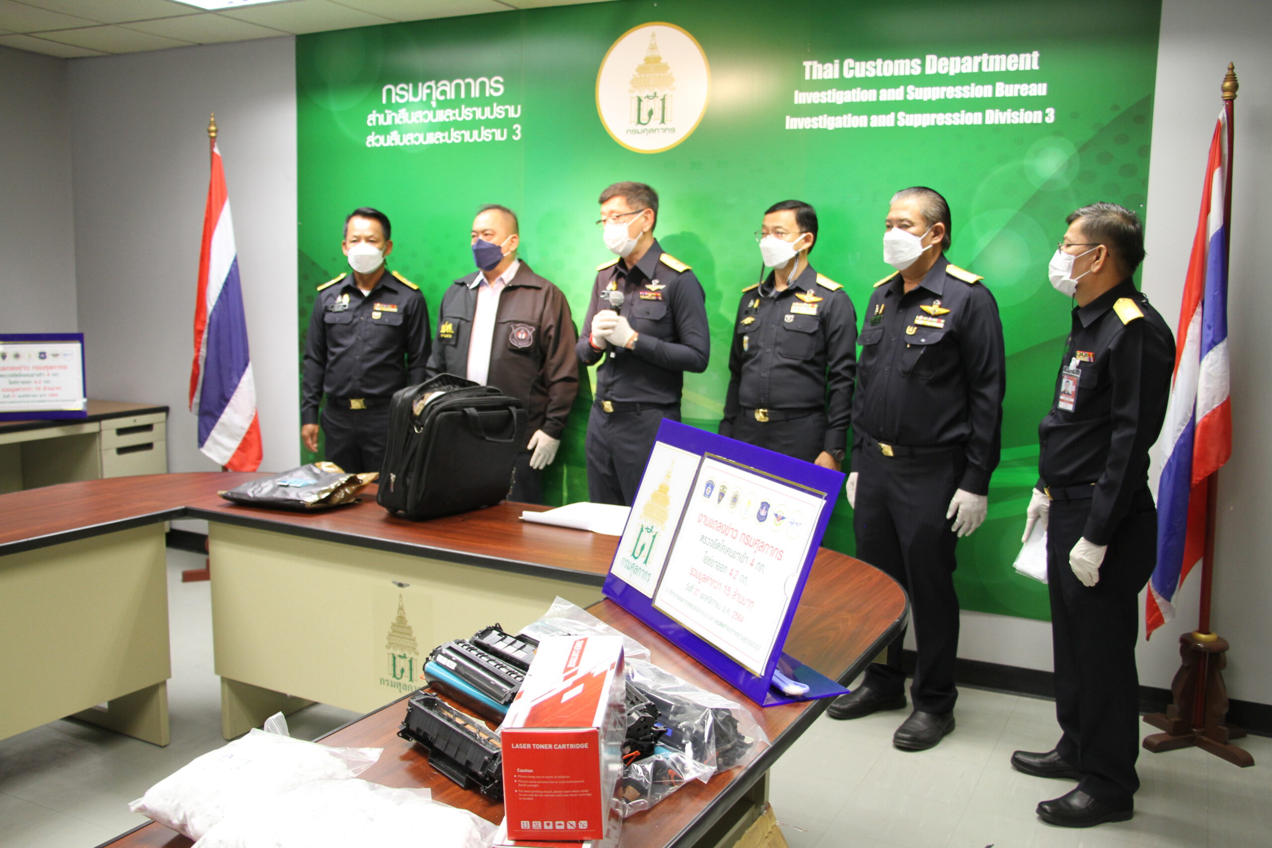 *****และในวันเดียวกัน เวลาประมาณ 22.30 น. กรมศุลกากรร่วมกับชุดปฏิบัติการ AITF (AIRPORT INTERDICTION TASK FORCE) ร่วมกันตรวจสอบพัสดุไปรษณีย์ลงทะเบียนระหว่างประเทศ ต้นทางประเทศไทย ปลายทางประเทศออสเตรเลีย สำแดง (แสดง) สินค้าเป็น Toner cartridge ผลการตรวจสอบพบ ยาเสพติดให้โทษประเภท 1 ไอซ์ (เมทแอมฟาตามีน) ลักษณะเป็นเกร็ดขาวขุ่น ซุกซ่อนในตลับหมึกพิมพ์ จำนวน 20 กล่อง น้ำหนักรวมสิ่งห่อหุ้มประมาณ 4,270 กรัม มูลค่ากว่า 3 ล้านบาท อันเป็นความผิดตาม มาตรา 244 ประกอบมาตรา 166 และมาตรา 252 แห่งพระราชบัญญัติศุลกากร พ.ศ. 2560 และพระราชบัญญัติยาเสพติดให้โทษ พ.ศ. 2522 จึงได้ดำเนินการจับกุมพร้อมทั้งประสานข้อมูลกับหน่วยงานที่เกี่ยวข้องเพื่อขยายผล และส่งคดีเพื่อดำเนินการตามกฎหมายต่อไป