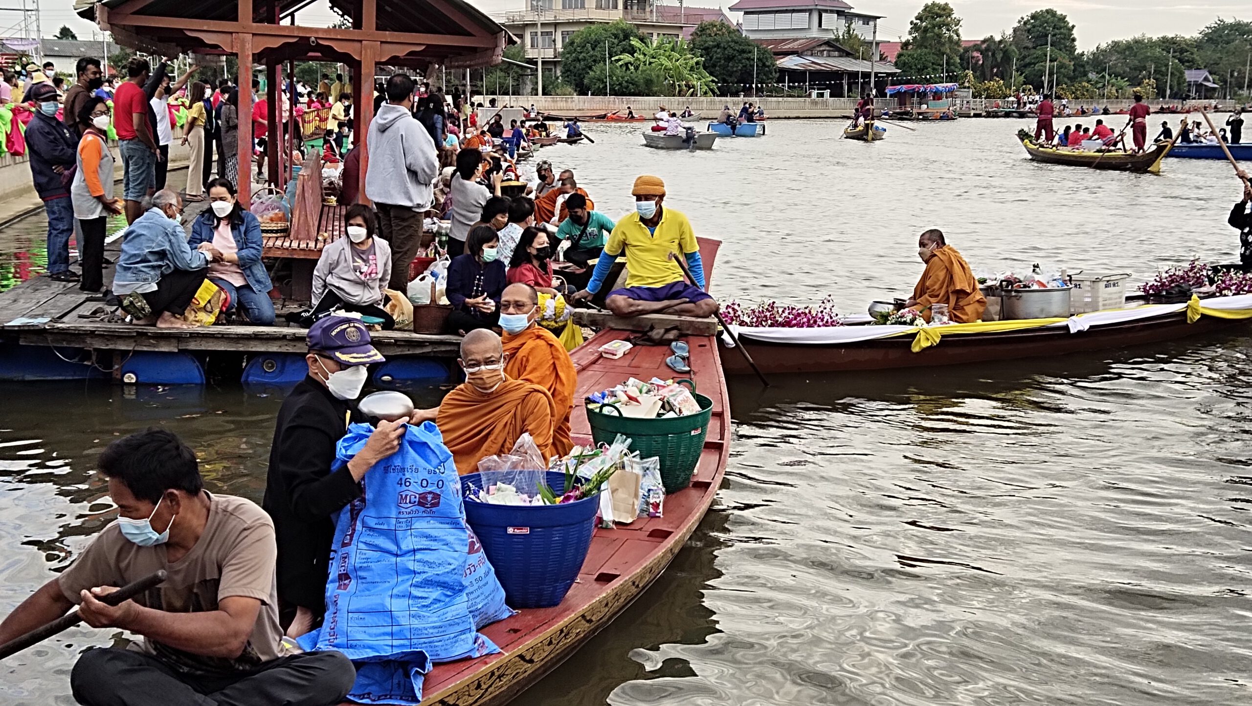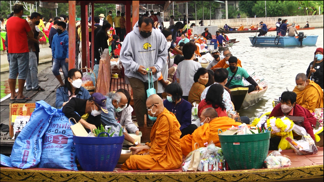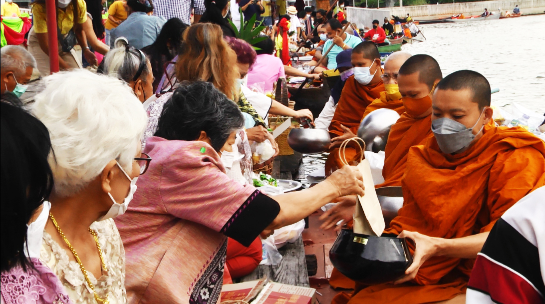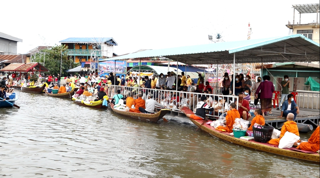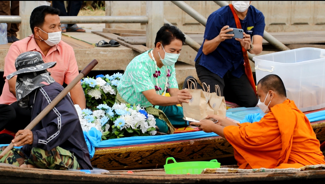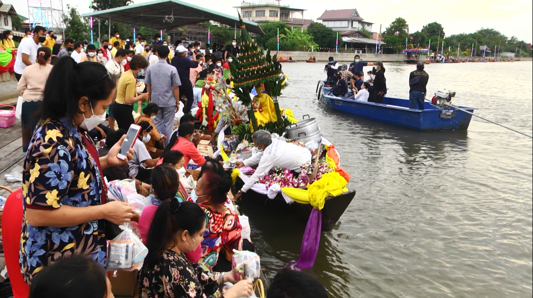 สุพรรณบุรี พุทธศาสนิกชนร่วมสืบทอดประเพณีตักบาตรกลางน้ำ กว่า 100 ปี