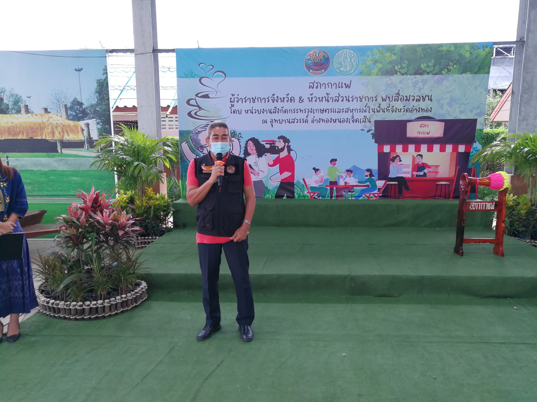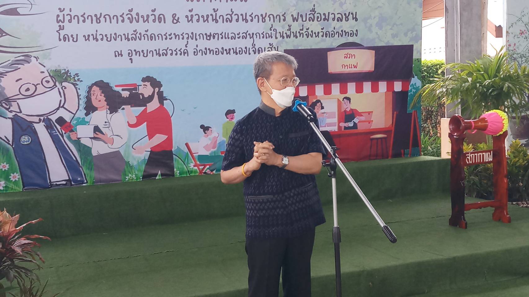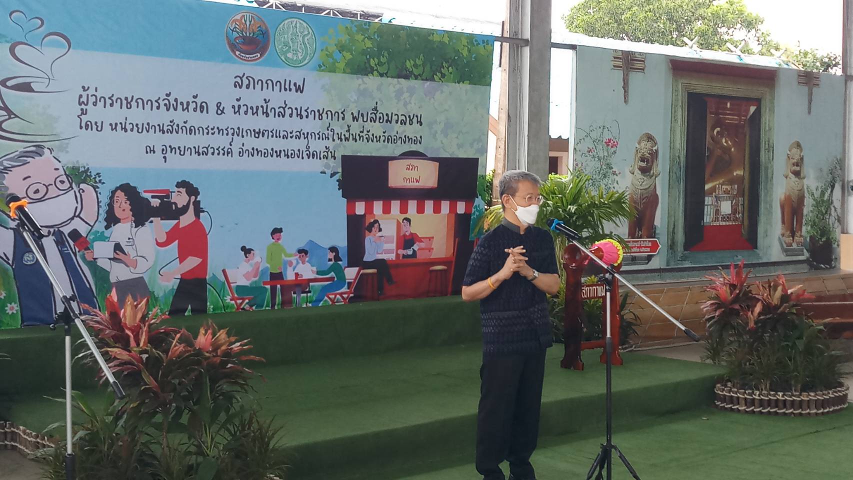 นายวีระศักดิ์ วิจิตร์แสงศรี ผู้ว่าราชการจังหวัดอ่างทอง เปิดเวทีสภากาแฟ พบสื่อมวลชน