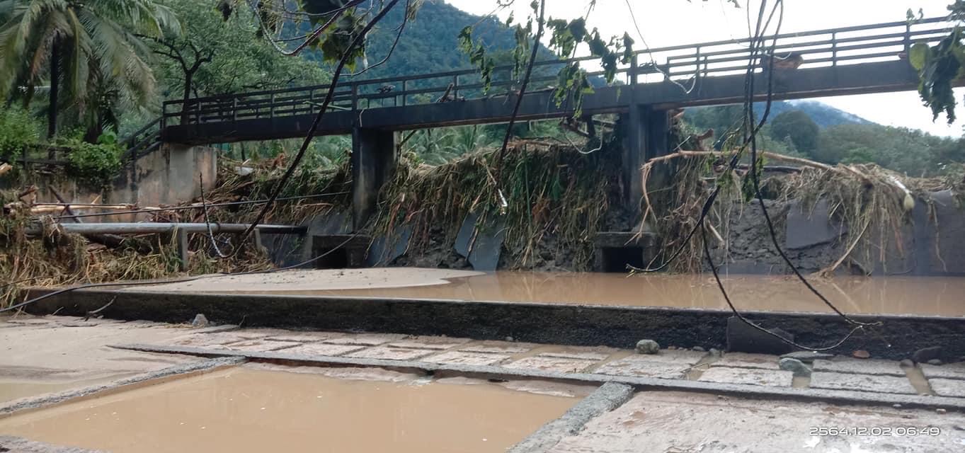 ข้อมูลจากสำนักงานป้องกันและบรรเทาสาธารณภัยจังหวัดตรัง เมื่อเวลา 16.00 น. ของวันที่ 2 ธันวาคม 2564 มีผู้ได้รับผลกระทบจากน้ำท่วมครั้งนี้ 2 อำเภอ 3 ตำบล 8 หมู่บ้าน 153 ครัวเรือน 362 คน มีผู้เสียชีวิต 1 คน ซึ่งเป็นผู้ป่วยติดเตียง ญาติพี่น้องช่วยให้ออกมาจากบ้านพักในระหว่างน้ำป่าไหลหลากไม่ทัน มีสัตว์เลี้ยง และทรัพย์สินของชาวบ้านสูญหาย/เสียหาย และพืชผลทางการเกษตรเสียหายจำนวนมาก ปัจจุบันสถานการณ์น้ำท่วม โดยรวมคลี่คลายแล้ว
