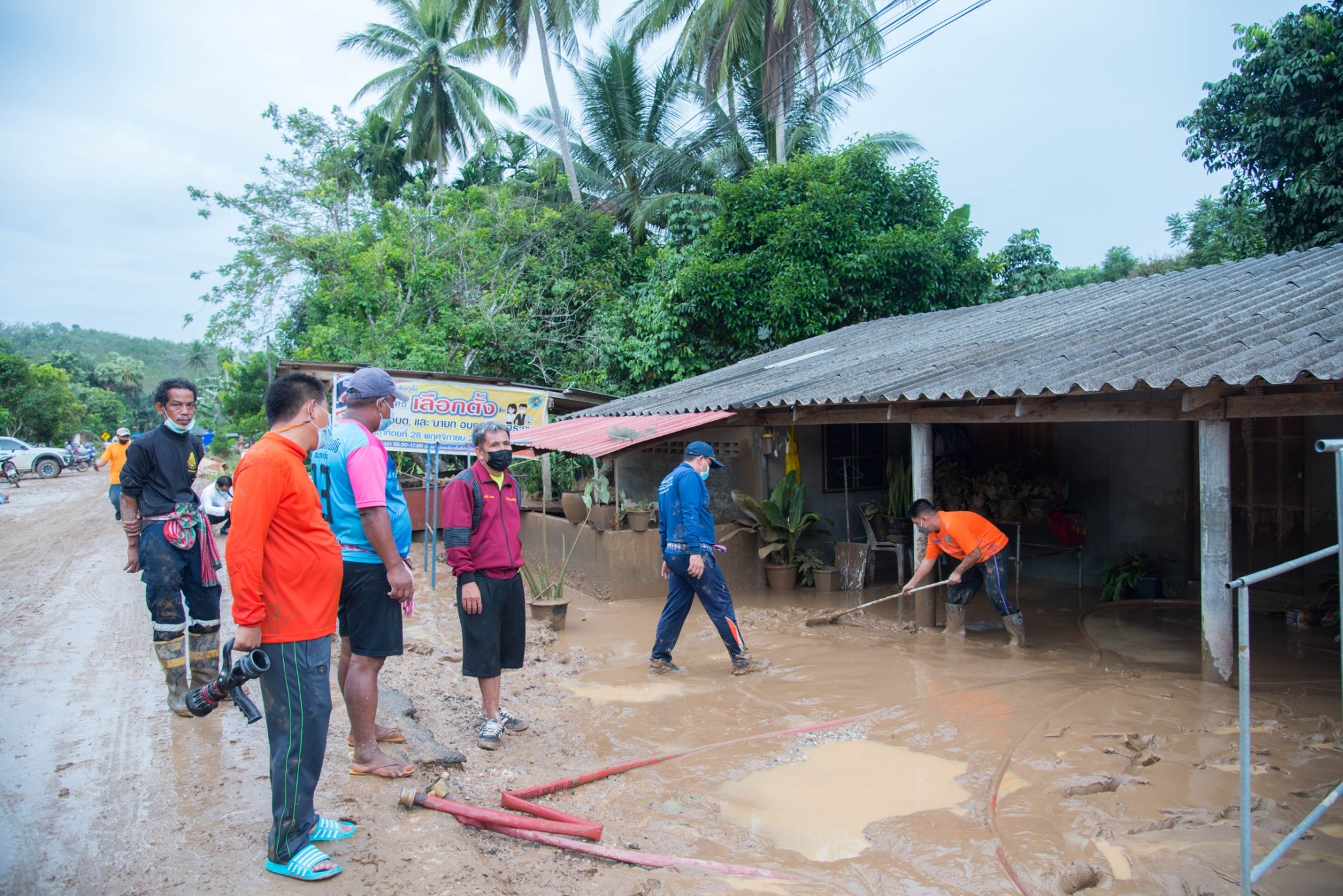 นายก อบจ.ตรัง กล่าวว่า หลังจากทราบถึงความเดือดร้อนของชาวบ้านตั้งแต่ช่วงหลังเกิดเหตุไม่นาน ได้สั่งการให้เจ้าหน้าที่งานป้องกันและบรรเทาสาธารณภัย และกองช่าง อบจ.ตรัง รุดนำอุปกรณ์ เครื่องมือเช่น รถแบ็คโฮ รถบรรทุกน้ำ เปลขนย้าย เพื่อสนับสนุนการช่วยเหลือพี่น้องประชาชนร่วมกับหน่วยงานที่เกี่ยวข้องทั้งฝ่ายปกครองอำเภอ สำนักงานป้องกันและบรรเทาสาธารณภัยจังหวัดตรัง กำนัน ผู้ใหญ่บ้าน และจิตอาสา ซึ่งได้มาพบปะพูดคุยให้กำลังใจพี่น้องประชาชนที่ประสบภัยครั้งนี้ รวมถึงต้องให้กำลังใจผู้นำท้องที่ ท้องถิ่น และเจ้าหน้าที่ทุกฝ่ายที่มาช่วยกันบรรเทาทุกข์ให้ชาวบ้าน ต้องยอมรับว่าสถานการณ์ที่เกิดขึ้นนั้นรุนแรงมาก พี่น้องประชาชนต้องอยู่กันอย่างลำบาก หลังจากนี้ได้สั่งการให้เจ้าหน้าที่ของ อบจ.ตรัง ยังคงให้ความช่วยเหลือพี่น้องชาวบ้านอย่างใกล้ชิด และเพิ่มรถแบ็คโฮ รถบรรทุกน้ำ อุปกรณ์ที่จำเป็นลงพื้นที่เพื่อขนย้ายข้าวของ ชำระล้างคราบโคลนตามบ้านเรือนให้พี่น้องประชาชนได้รวดเร็วขึ้น ส่วนการช่วยเหลือเยียวยาทราบว่าหน่วยงานที่เกี่ยวข้อง เช่น อบต. ป้องกันและบรรเทาสาธารณภัยจังหวัดตรัง จะดำเนินการตามระเบียบกฎหมาย ส่วนทาง อบจ.ตรัง จะต้องประชุมหารือเพื่อมาหนุนเสริมการช่วยเหลือพี่น้องประชาชนต่อไป