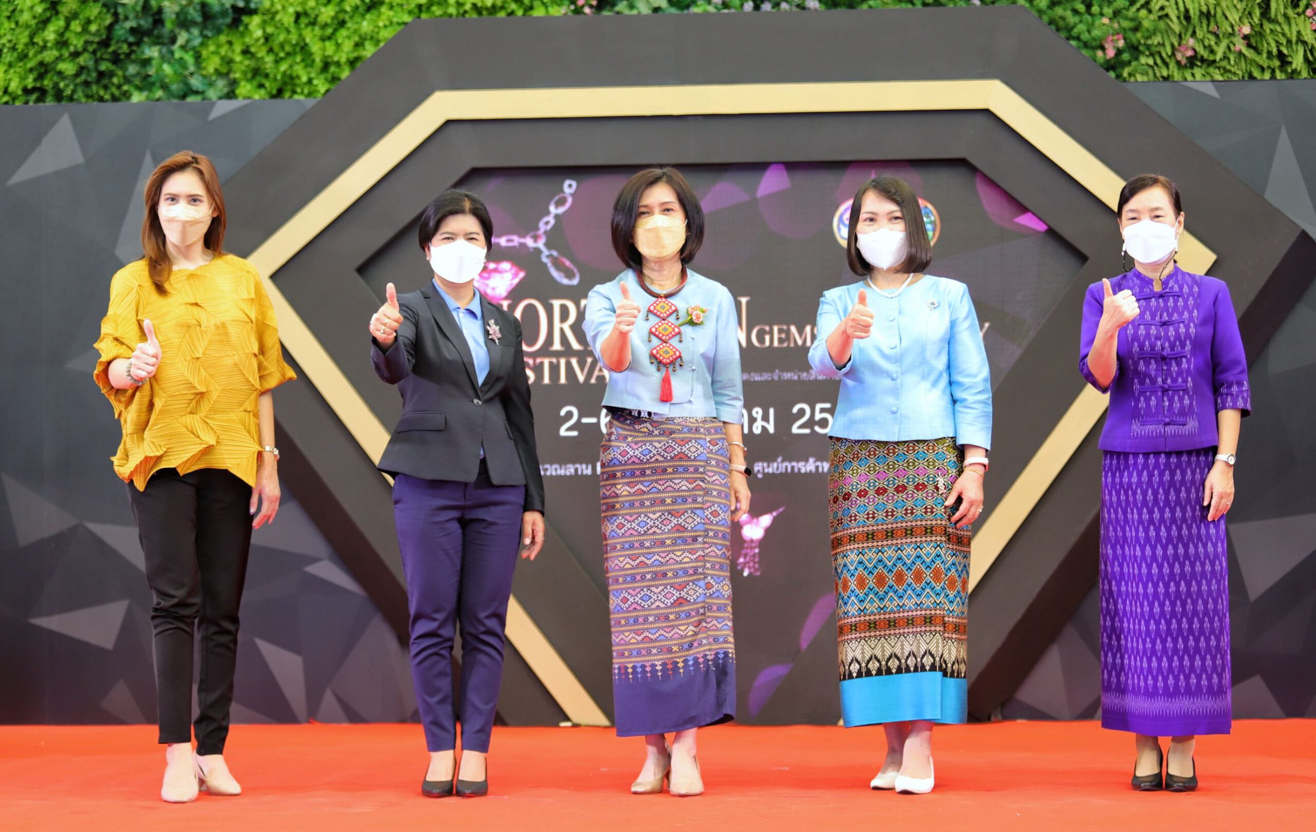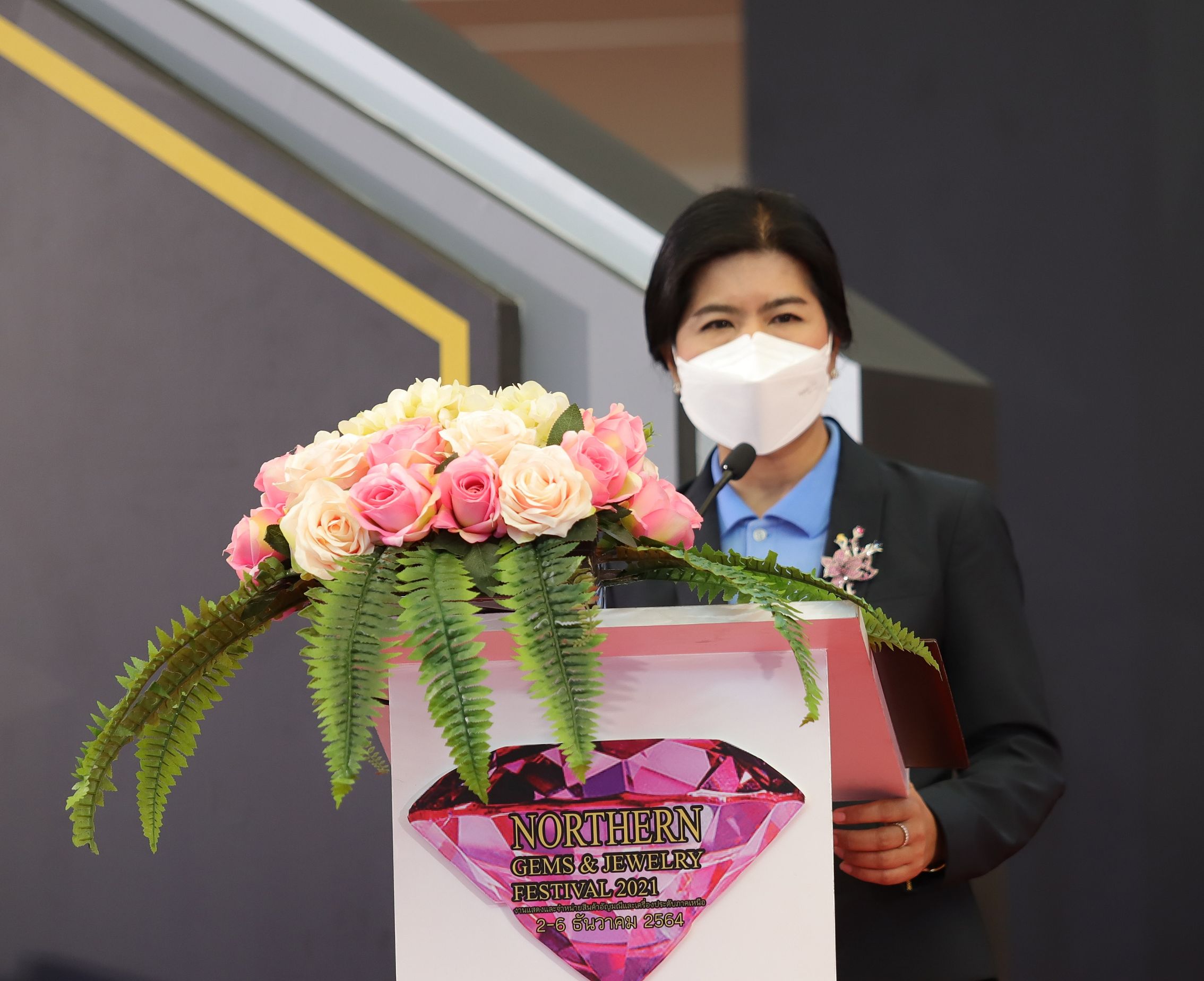 โดยมีนางสาวหทัยรัตน์ คีรีวัลย์ นักวิชาการพาณิชย์ชำนาญการพิเศษ รักษาราชการแทน พาณิชย์จังหวัดตาก รายงานวัตถุประสงค์การจัดงานฯ ครั้งนี้สำนักงานพาณิชย์จังหวัดภาคเหนือ 17 จังหวัด โดยสำนักงานพาณิชย์จังหวัดตาก จัดงานแสดงและจำหน่ายสินค้าอัญมณีและเครื่องประดับภาคเหนือ “Northern Gems and Jewelry Festival 2021 ” ภายใต้โครงการพัฒนาต่อยอดอุตสาหกรรมสร้างสรรค์และสินค้าชุมชน ประจำปีงบประมาณ พ.ศ. 2564ของ กระทรวงพาณิชย์ โดยมีวัตถุประสงค์เพื่อมุ่งเน้นการยกระดับผลิตภาพและการเพิ่มขีดความสามารถในการแข่งขันในระดับประเทศให้แก่ผู้ประกอบการท้องถิ่น มีเป้าหมายการพัฒนาที่ยั่งยืน โดยการสร้างความเข้มแข็งทางเศรษฐกิจและแข่งขันได้อย่างยั่งยืน