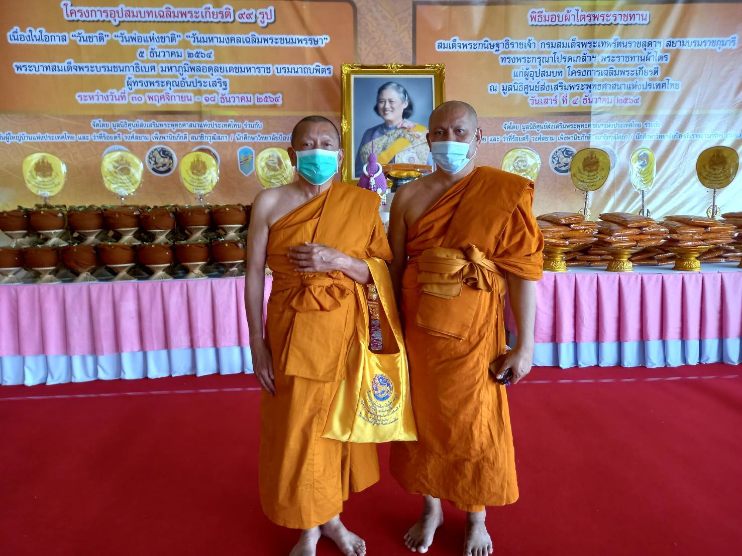 ในส่วนของพระปลัดสุชาติ ฐฺานจาโร ผู้ช่วยเจ้าอาวาสวัดหงส์รัตนารามวรวิหารและประธานกรรมการมูลนิธิส่งเสริมพระพุทธศาสนาแห่งประเทศไทยร่วมกับว่าที่ร้อยตรีวงศ์สยาม เพ็งพานิชภักดี สมาชิกวุฒิสภา ชมรมกำนันผู้ใหญ่บ้านแห่งประเทศไทย นักศึกษาวิทยาลัยป้องกันราชอาณาจักร(วปอ)รุ่น 64 ได้ตระหนักถึงภาระสำคัญนี้จึงได้ร่วมกันจัดโครงการอุปสมบทเฉลิมพระเกียรติฯ ระหว่างวันที่ 30 พฤศจิกายน ถึง วันที่ 18 ธันวาคม 2564 ซึ่งมีผู้เข้าร่วมอุปสมบท 65 ท่านมาจากกองทัพบก กองทัพเรือสำนักงานตำรวจแห่งชาติ ข้าราชการพ่อค้าประชาชน จากส่วนต่างๆ และในวันพรุ่งนี้วันที่ 4 ธันวาคม 2564 เวลา 09.00 น.จะมีพิธีอัญเชิญผ้าไตรพระราชทาน สู่มณฑลพิธี