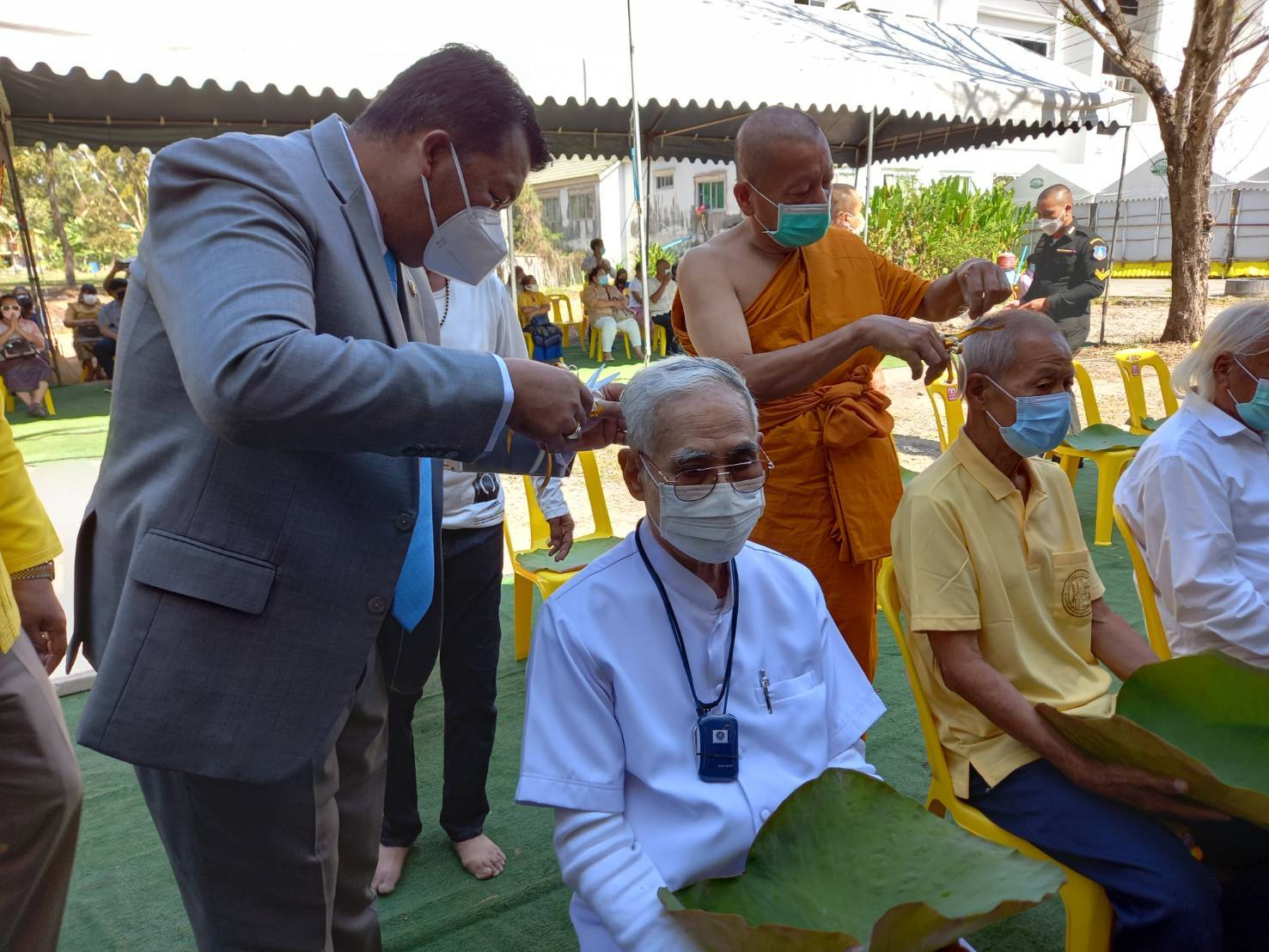 นนทบุรี ว่าที่ร้อยตรีวงศ์สยาม เพ็งพานิชภักดี (สมาชิกวุฒิสภา)เป็นประธาน)ฝ่ายฆราวาส)พิธีตัดปอยผมนาค โครงการอุปสมบทเฉลิมพระเกียรติ 99 รูป