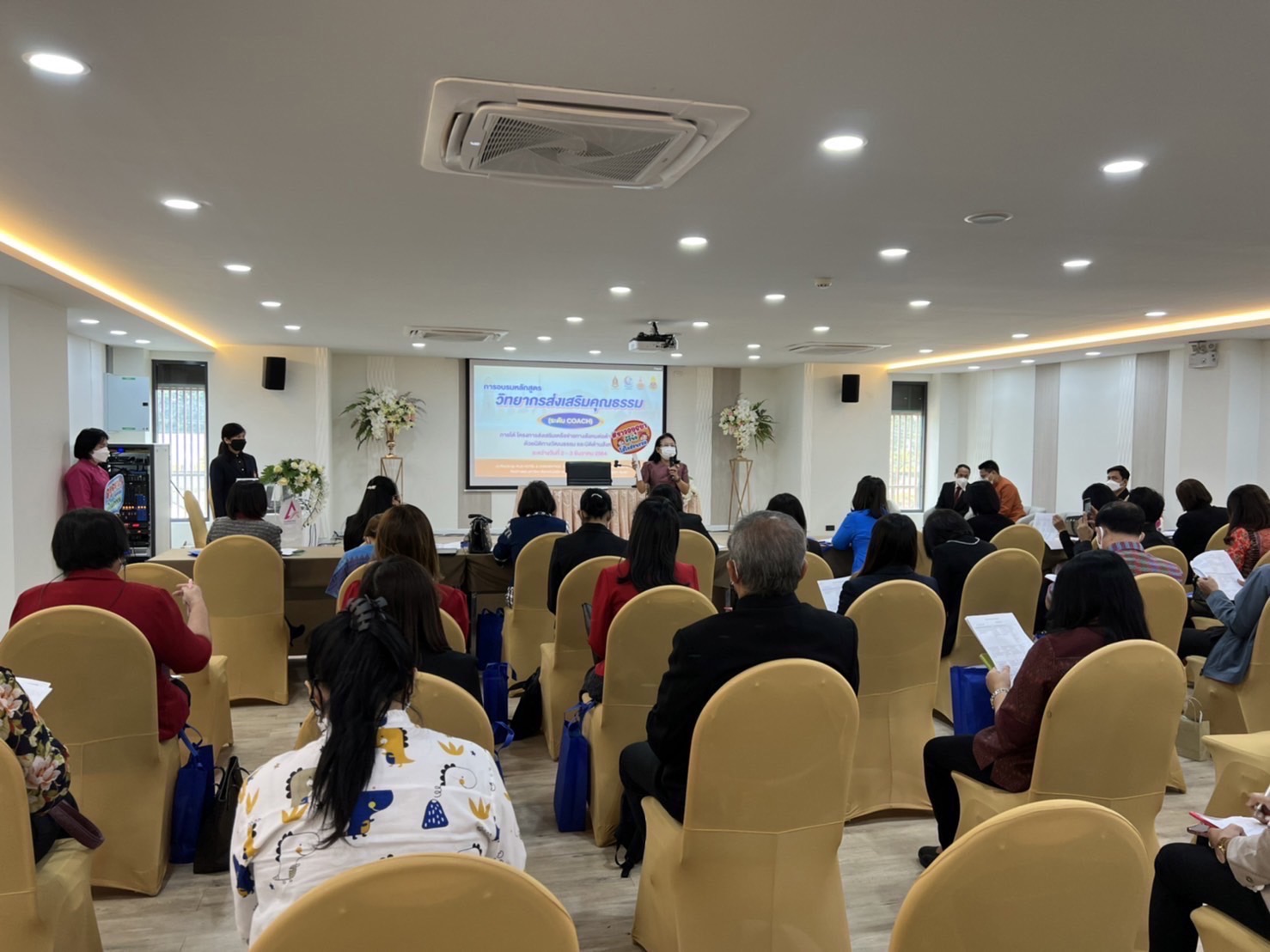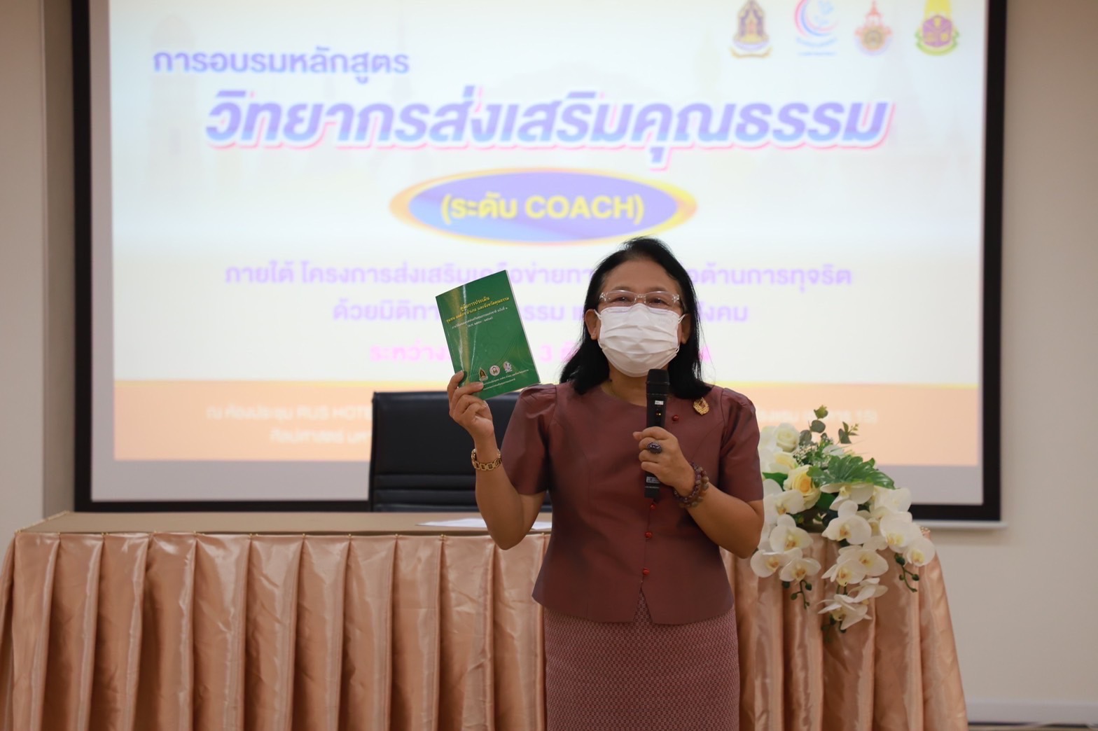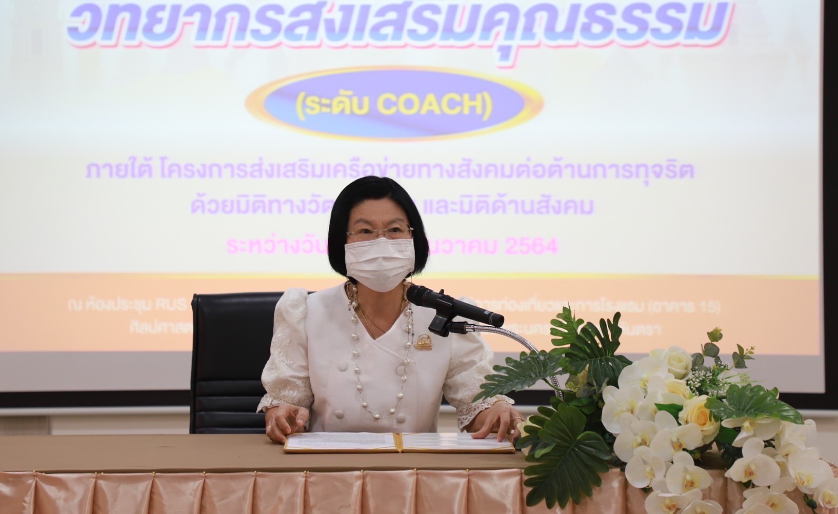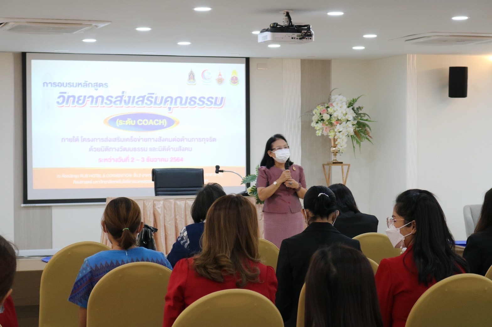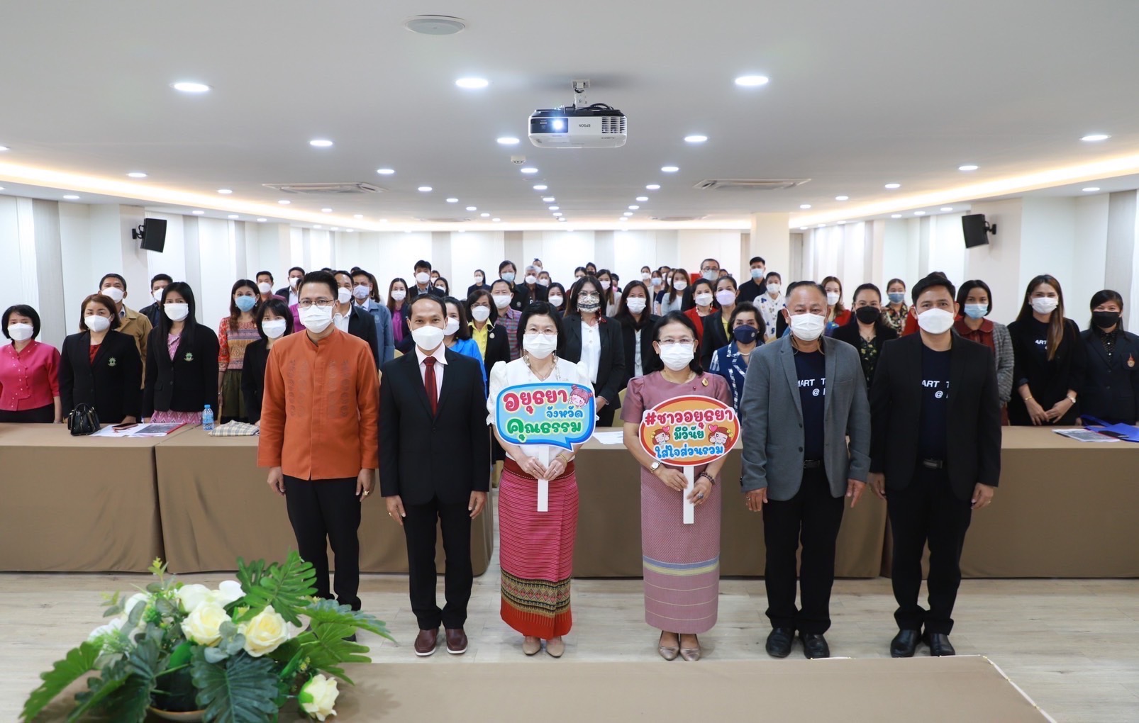 ในการนี้ นางจุรีพร ขันตี วัฒนธรรมจังหวัด ให้ความรู้ ความเข้าใจเกี่ยวกับการประเมินชุมชน องค์กร อำเภอ และจังหวัดคุณธรรม ภายใต้แผนแม่บทส่งเสริมคุณธรรมแห่งชาติ ฉบับที่ ๑ (พ.ศ. ๒๕๕๙-๒๕๖๔) และสร้างการรับรู้จังหวัดพระนครศรีอยุธยาเป็นจังหวัดคุณธรรม ภายใต้แนวคิด “ชาวอยุธยามีวินัย ใส่ใจส่วนรวม” โดยมีนางนุชนาถ ประทีปธีรานันต์ รองผู้ว่าราชการจังหวัดพระนครศรีอยุธยา เป็นประธานเปิดการฝึกอบรม เมื่อวันที่ ๒ -๓ ธันวาคม ๒๕๖๔ ณ ห้องประชุม RUS HOTEL &CONVENTION ชั้น ๒ อาคารปฏิบัติการท่องเที่ยวและการโรงแรม (อาคาร ๑๕ ) มหาวิทยาลัยเทคโนโลยีราชมงคลสุวรรณภูมิ ศูนย์พระนครศรีอยุธยาหันตรา