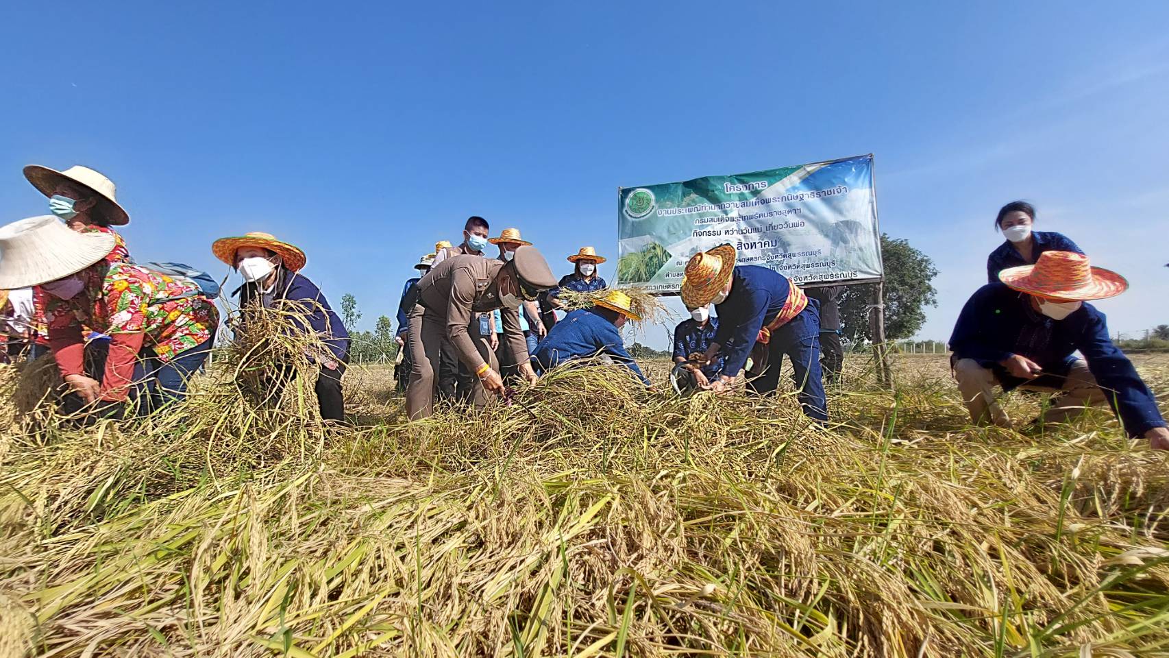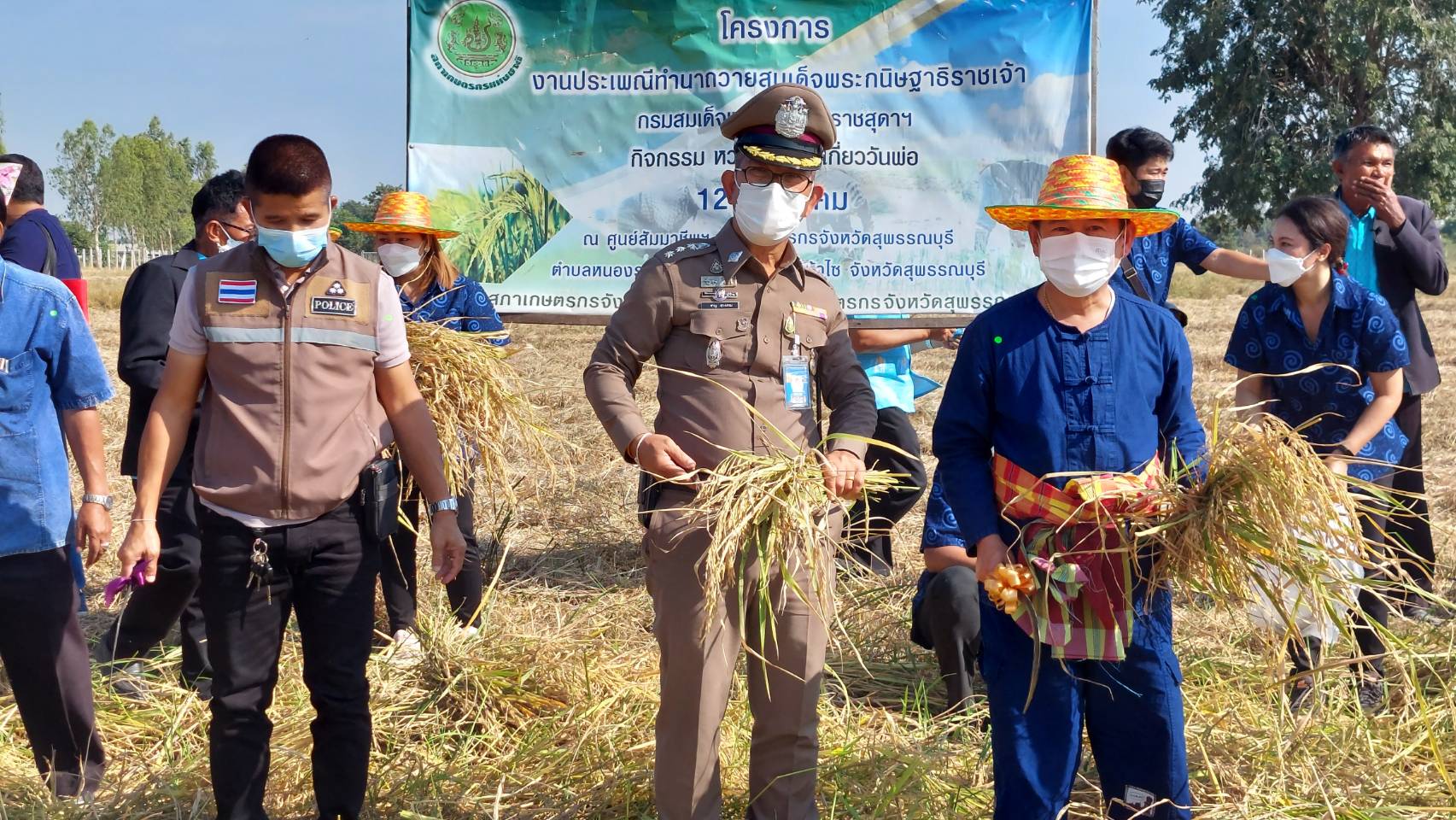 นายณัฐภัทร สุวรรณประทีป ผู้ว่าราชการจังหวัดสุพรรณบุรี กล่าวว่าด้วยสำนึกในพระมหากรุณาธิคุณในแนวทางปรัชญาเศรษฐกิจพอเพียงของพระบาทสมเด็จพระบรมชนกาธิเบศร มหาภูมิพลอดุลยเดชมหาราช บรมนาถบพิตร ที่ได้ยกย่องอาชีพการทำนาว่าถือเป็นกระดูกสันหลังของขาติ ที่หล่อเลี้ยงคนไทยมาอย่างยาวนาน จากรุ่น สู่รุ่นนั้น โครงการศูนย์สัมมาชีพต้นแบบเกษตรผสมผสานตามแนวปรัชญาเศรษฐกิจพอเพียง นับเป็นการปลูกฝังส่งเสริมการเรียนรู้เกี่ยวกับการทำนาแก่เยาวชน คนรุ่นใหม่ และผู้ที่สนใจ การจัดงานในครั้งนี้ได้มีการบูรณาการร่วมกันระหว่างหน่วยงานสมาคมเกษตรกรปลอดภัย และสถาบันการศึกษา อาทิเช่น กิจกรรมลงแขกเกี่ยวข้าวด้วยเคียวแบบโบราณ พิธีรับขวัญข้าวเข้าบ้าน การตำข้าวเม่า เผาข้าวหลาม ซึ่งเป็นประเพณีโบราณ ที่นับวันจะหาดูได้ยากทั้งนี้เพื่อเป็นการสืบสานวัฒนธรรมท้องถิ่นอันควรค่าแก่การอนุรักษ์ประเพณีไว้ให้คนรุ่นหลังได้สืบสานและต่อยอดสืบไป