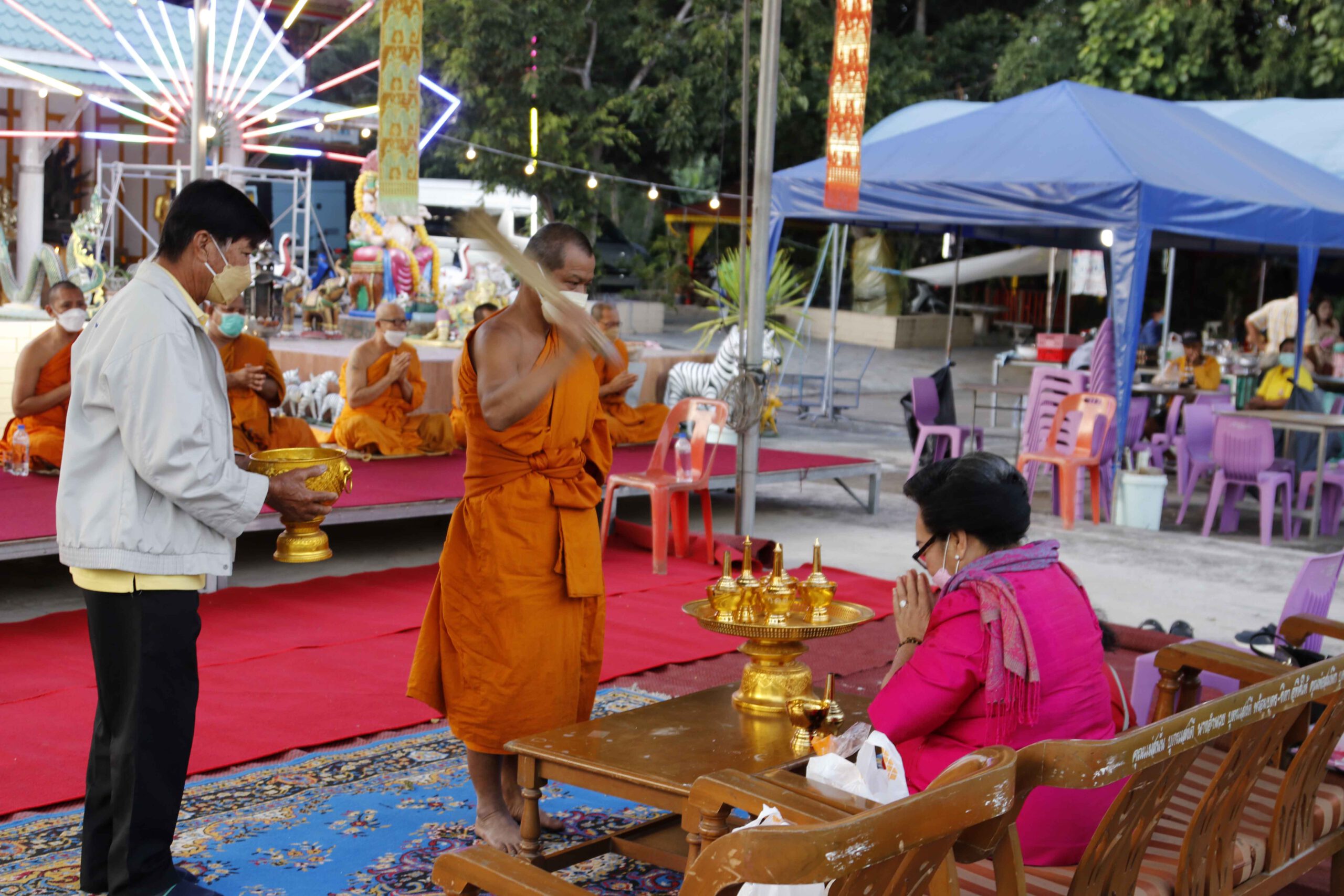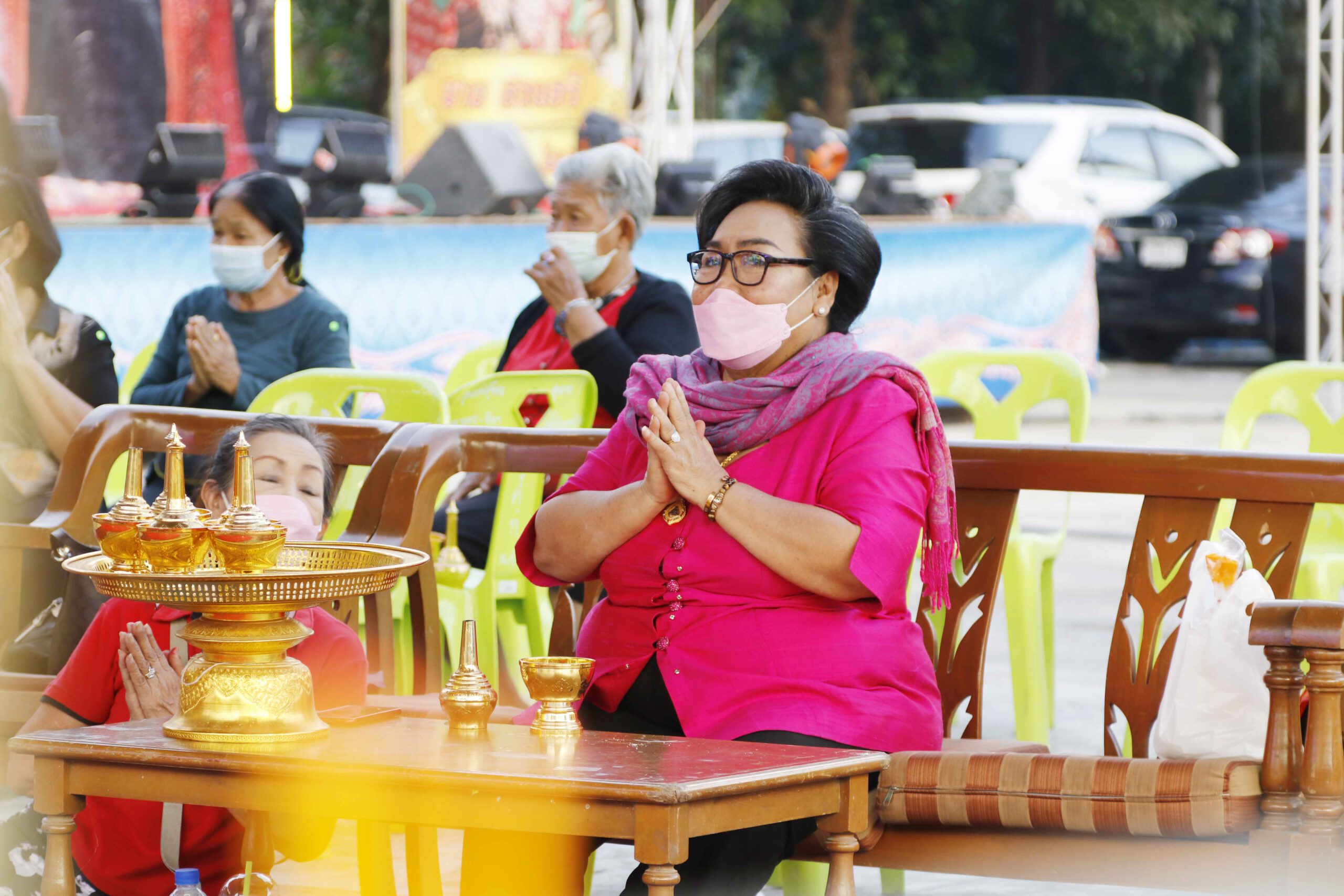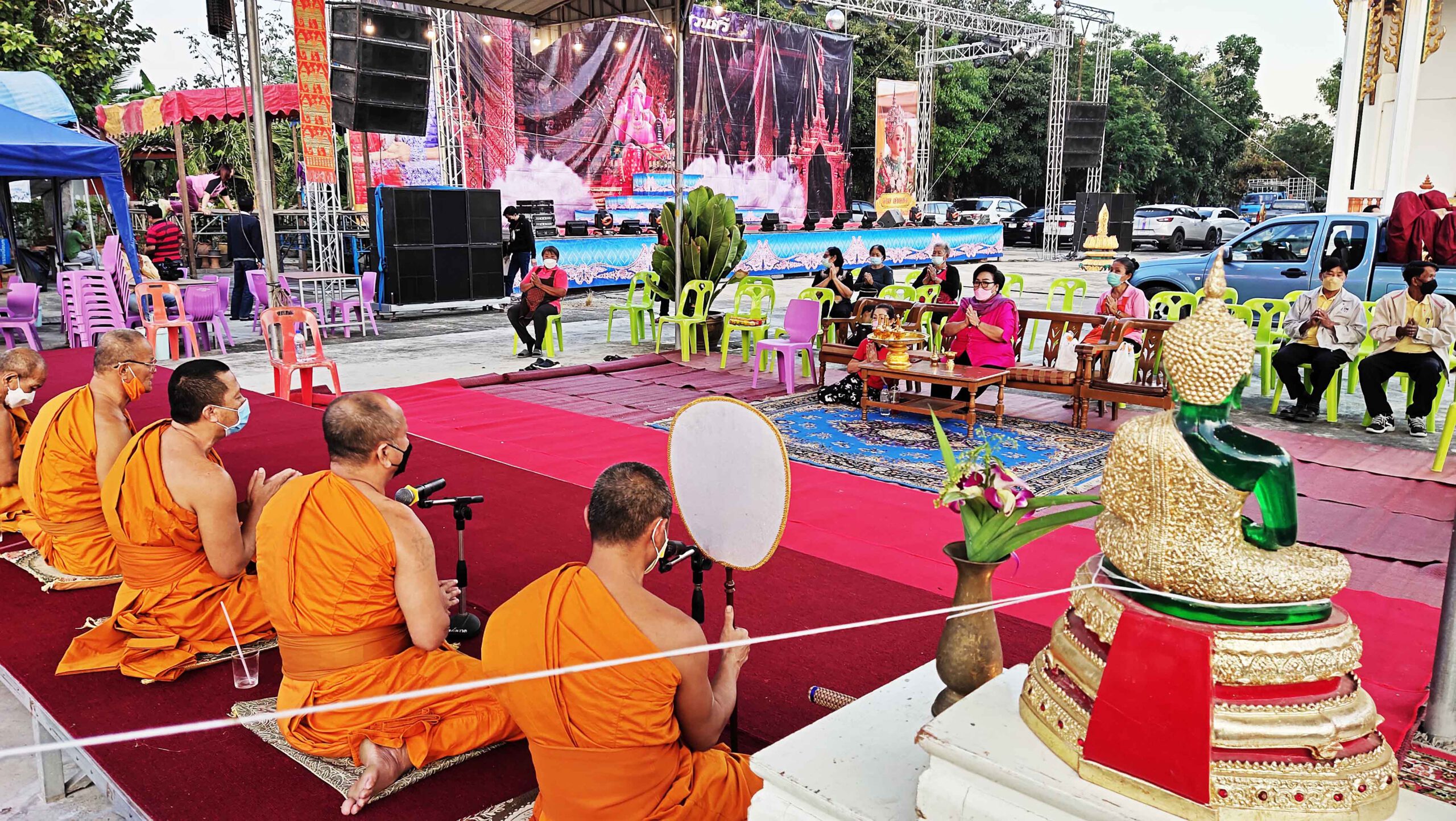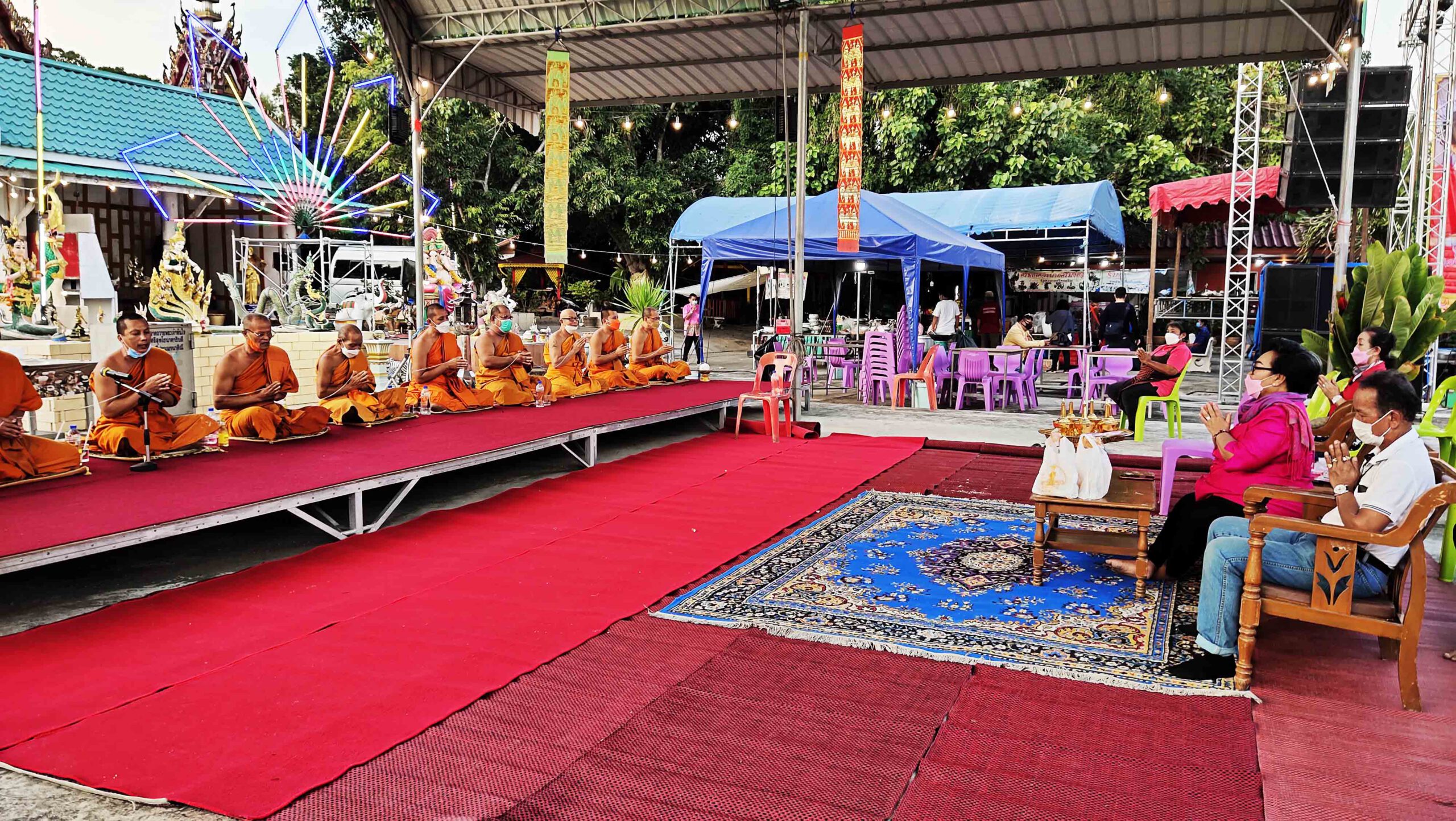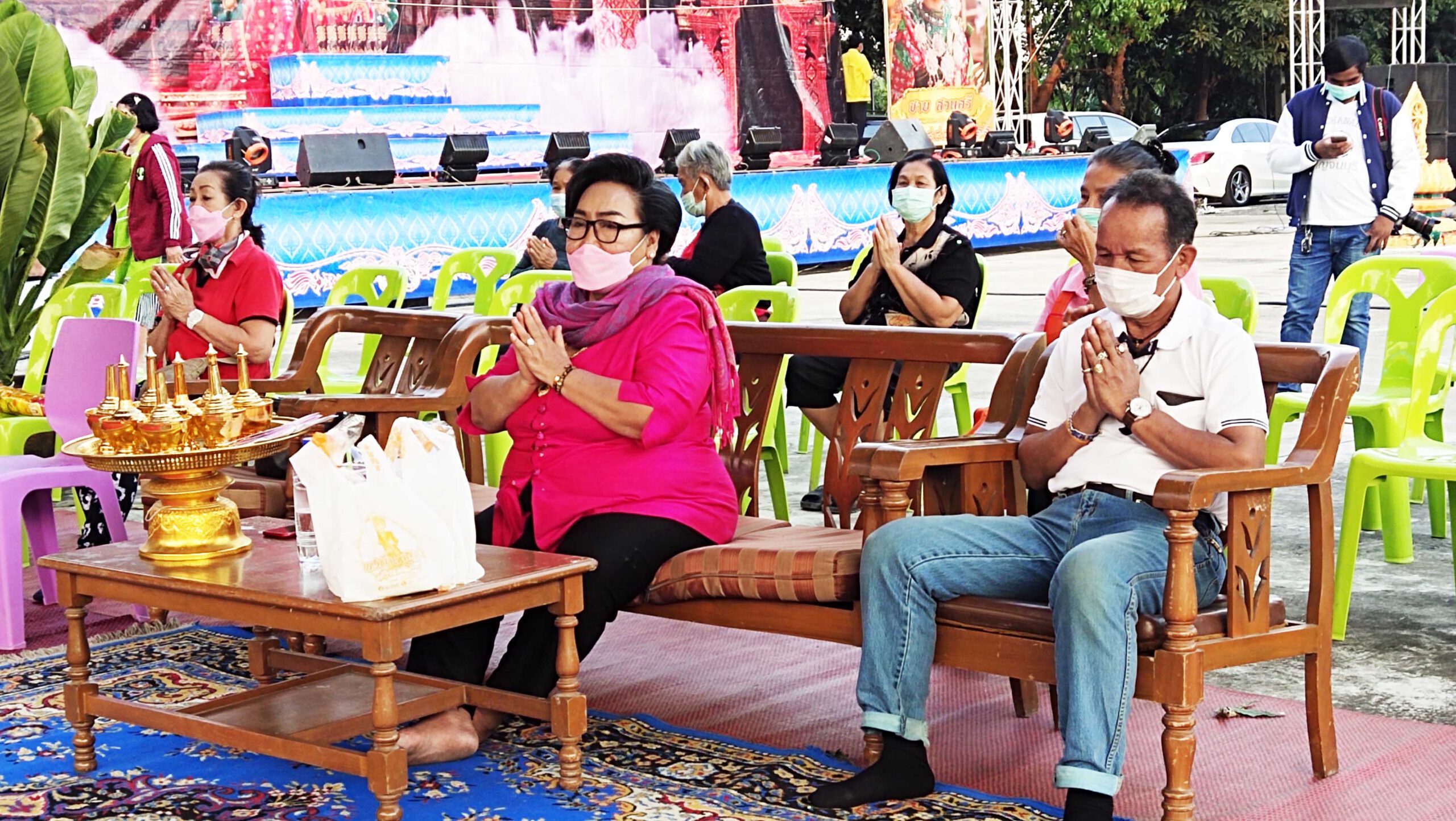 ทางด้านพงษ์ศักดิ์ สวนศรี หัวหน้าคณะลิเกเงินล้านชื่อดังกล่าวว่าวันนี้ต้องขอบคุณป้าติ๋ว ที่มีพระคุณเป็นเจ้าภาพแรกที่จ้างคณะลิเกวงใหญ่ มาทำการแสดงวันนี้ถือเป็นการเปิดวงวันแรก เนื่องจาก 2 ปีที่ผ่านมาหลังเกิดการแพร่ระบาดของเชื้อไวรัสโควิด 19 ทางคณะลิเกต้องหยุดทำการแสดง ทีมงานนับ 100ชีวิตต้องอยู่กันอย่างยากลำบากชาวคณะลิเกต่างก็ต้องปรับตัวในการทำมาหากินตนก็ไปปฏิบัติธรรมที่วัดทุกอาทิตย์ ครอบครัวก็ต้องปรับตัวไปขายขนมสายไหม ส่วนน้องซาย ก็รับราชการ และพี่ชายก็ไปทำธุรกิจขายอาหารเสริม เพื่อสุขภาพและภูมิคุ้มกันอยากให้ทุกคนแข็งแรง