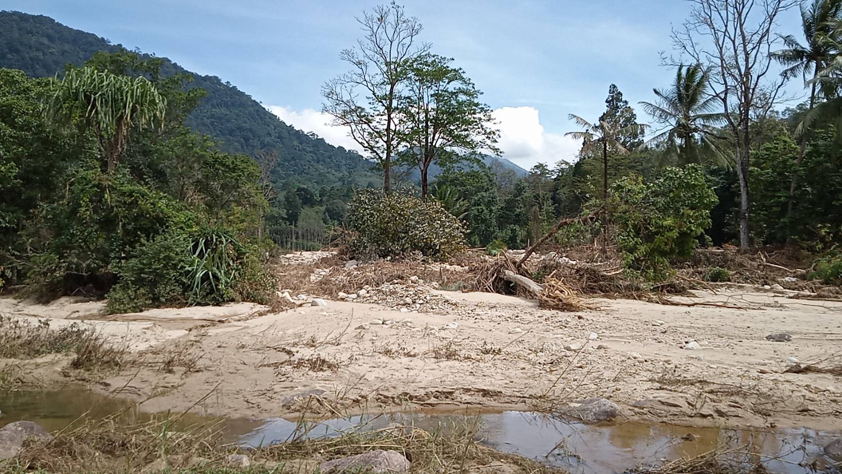 ขณะที่เจ้าหน้าที่กองช่างได้นำรถแบ็คโฮเข้าปรับพื้นที่บริเวณฝายคลองน้ำล้นห้วยสอ หมู่ที่ 4 ซึ่งเสียหายจากความรุนแรงของน้ำป่าไหลหลากในครั้งนี้