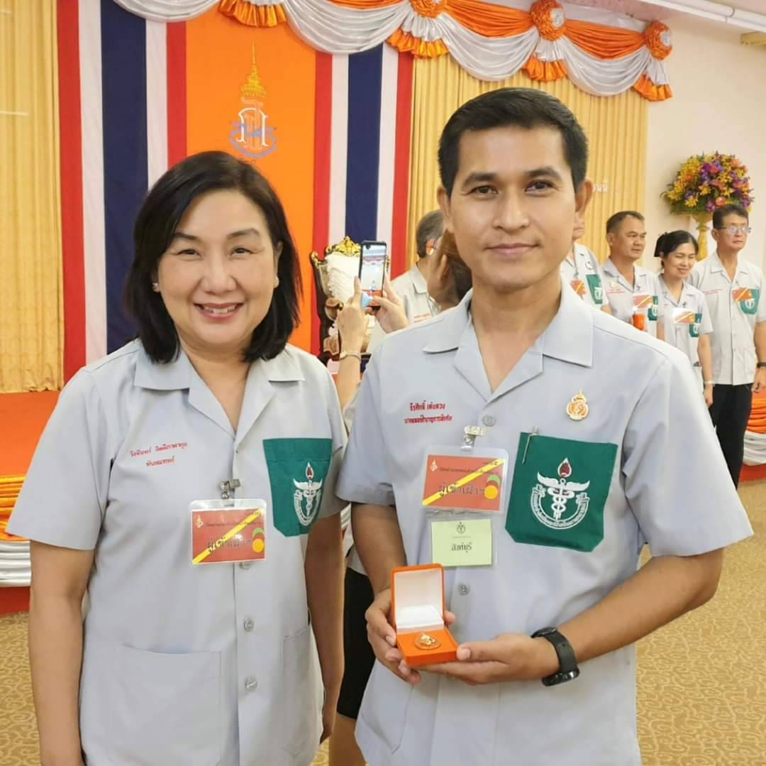นพ.โชคชัย สาครพานิช นายแพทย์สาธารณสุขจังหวัดสิงห์บุรี มอบหมายให้นพ.ธีรศักดิ์ เด่นดวง รักษาการนายแพทย์เวชกรรมป้องกัน เชี่ยวชาญ รองนายแพทย์สาธารณสุขจังหวัดสิงห์บุรีและผู้บริหารรับพระราชทานเข็มที่ระลึก “อาสาสมัครสาธารณสุข สมเด็จกรมพระศรีสวางควัฒนฯ” ตามรอยพระบาทสมเด็จพระศรีนครินทราบรมราชชนนี