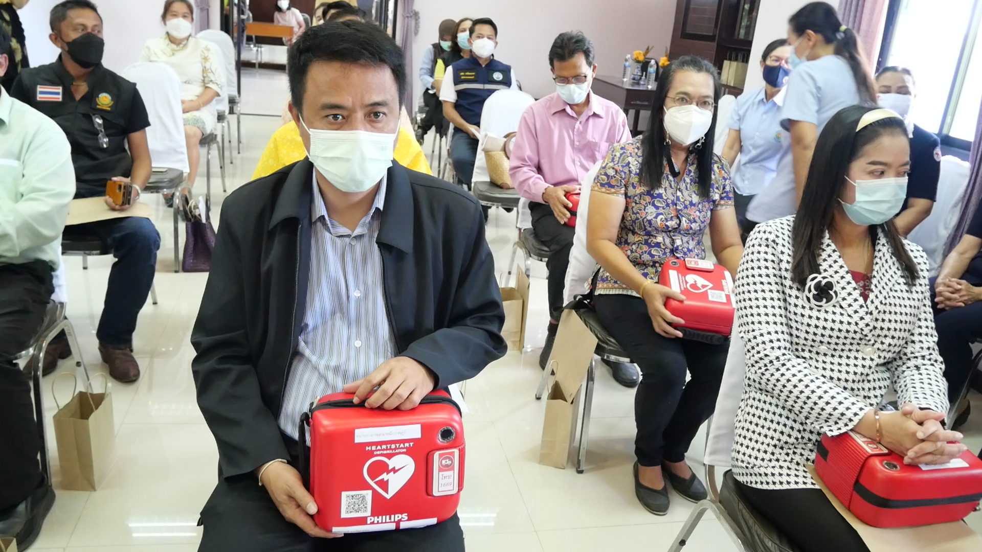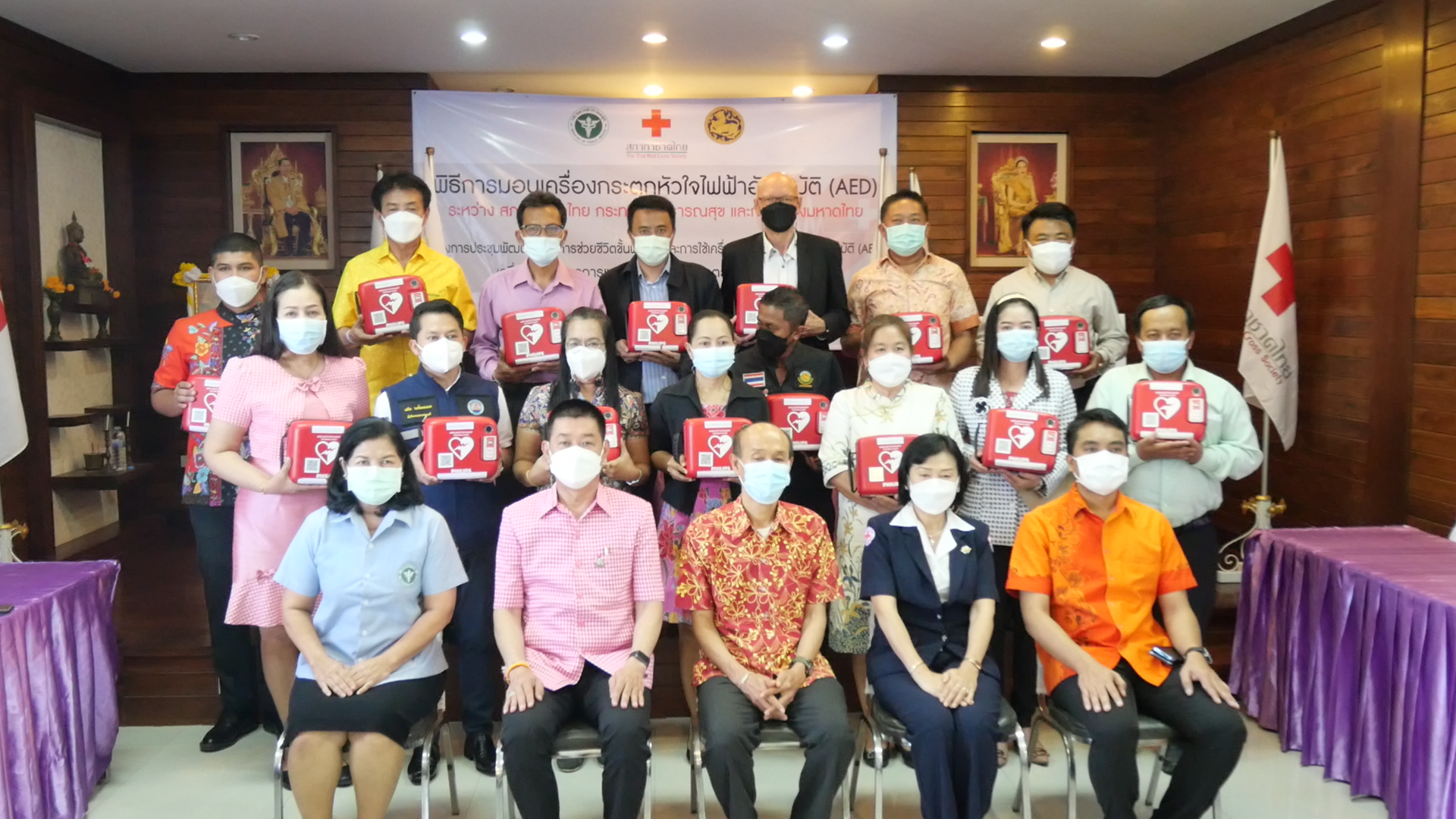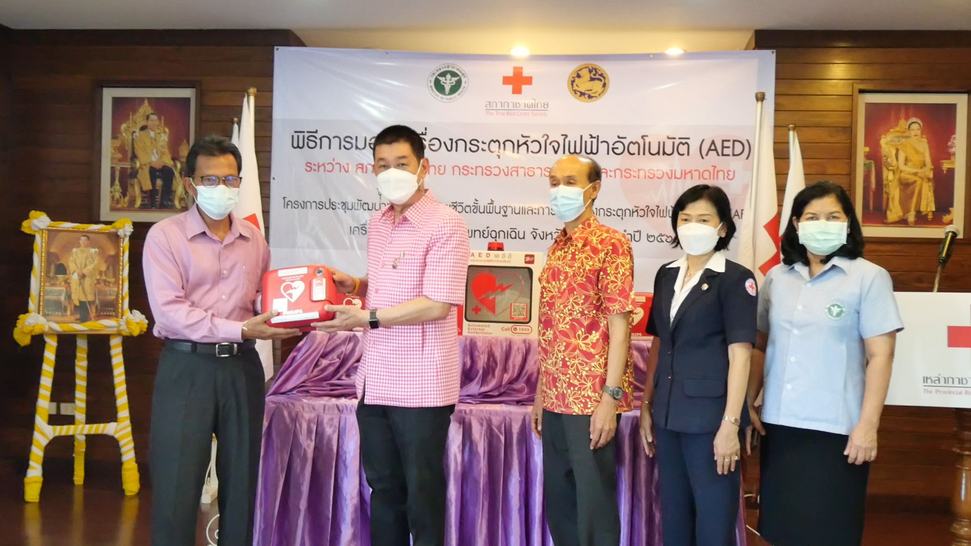ด้วยสภากาชาดไทย ได้จัดหารายได้เพื่อซื้อเครื่องกระตุกหัวใจไฟฟ้าอัตโนมัติ หรือเครื่อง AED เป็นอุปกรณ์ช่วยชีวิตกู้ชีวิตประชาชนทีเกิดภาวะหัวใจหยุดเต้นเฉียบพลัน ติดตั้งในส่วนภูมิภาคทั่วประเทศในยามฉุกเฉิน ตามการจัดกิจกรรมโครงการกระตุกหัวใจ เพื่อคนไทยทุกคน และจัดกิจกรรม “วิ่งกระตุกหัวใจ 125 ปี สภากาชาดไทย” และกิจกรรม “กระตุกหัวใจ Virtual Run 2,000,000 Km” จากโครงการดังกล่าว สภากาชาดไทยได้ดำเนินการจัดซื้อเครื่องกระตุกหัวใจไฟฟ้าอัตโนมัติประมาณ 1,100 เครื่อง เพื่อบริจาคส่งต่อให้กระทรวงสาธารณสุขติดตั้ง ดูแล บำรุงรักษา โดยสภากาชาดไทย กระทรวงสาธารณสุขและกระทรวงมหาดไทย ได้ร่วมพิธีลงนามบันทึกข้อตกลงความร่วมมือโครงการบริจาคเครื่องกระตุกหัวใจไฟฟ้าอัตโนมัติ โดยกำหนดวัตถุประสงค์รูปแบบความร่วมมือ บทบาทหน้าที่ของสภากาชาดไทย กระทรวงสาธารณสุขและกระทรวงมหาดไทย