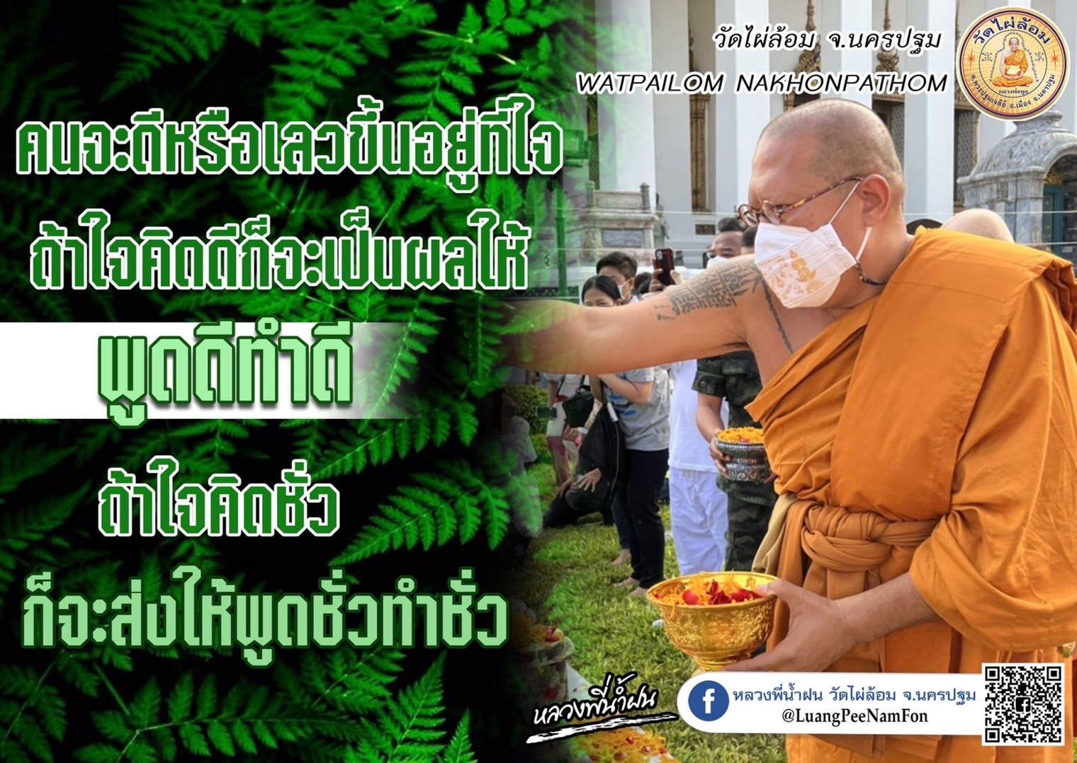 พระครูปลัดสิทธิวัฒน์ (หลวงพี่น้ำฝน) เจ้าอาวาสวัดไผ่ล้อม ต.พระปฐมเจดีย์ อ.เมือง จ.นครปฐม เจริญพรญาติโยมผู้อ่านทุกท่าน ทุกวันนี้มนุษย์เรามีโลกอยู่สองใบ โลกหนึ่งคือโลกจริงที่เราลืมตาตื่นขึ้นมาเจอ ใช้ชีวิต กินข้าว ทำงาน สังสรรค์ จนนอนหลับไปในวันหนึ่งคืนหนึ่งเช่นนี้ทุกวัน กับโลกอีกใบคือโลกออนไลน์ เป็นโลกเสมือนที่เราจะเข้าไปในนั้นเมื่อเราเปิดหน้าจอใด ๆ ขึ้นมาก็ตาม เป็นโลกที่กว้างใหญ่ไร้พรมแดน ย่อโลกทั้งใบลงได้ในหน้าจอเดียว โลกสองใบนี้ ใบหนึ่งเป็นโลกจริง ใบหนึ่งเป็นโลกเสมือน แต่สองใบนี้มีอะไรที่เหมือนกัน คือ มีภัยอันตรายไม่ต่างกัน โลกจริงว่ามีภัยมากมาย แต่โลกเสมือนก็ไม่ต่างกัน อีกทั้งอาจจะแนบเนียน และอันตรายกว่าด้วยซ้ำในบางกรณี