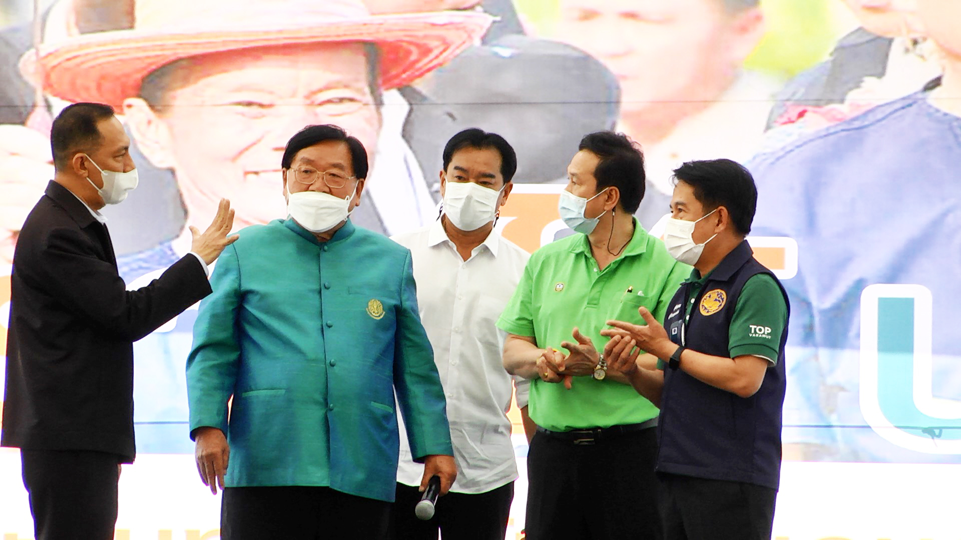 ที่จังหวัดสุพรรณบุรี นายประภัตร โพธสุธน รัฐมนตรีช่วยว่าการกระทรวงเกษตรและสหกรณ์ นายวราวุธ ศิลปอาชา รัฐมนตรีว่าการกระทรวงทรัพยากรธรรมชาติและสิ่งแวดล้อม นายณัฐภัทร สุวรรณประทีป ผู้ว่าราชการจังหวัดสุพรรณบุรี พร้อมหัวหน้าส่วนราชการ และหน่วยงานที่เกี่ยวข้อง ลงบริเวณสหกรณ์การเกษตรเพื่อการตลาดลูกค้า ธ.ก.ส. จำกัด (สกต.) ริมถนนสายสุพรรณบุรี-ชัยนาท อำเภอศรีประจันต์ จังหวัดสุพรรณบุรี เพื่อตรวจความพร้อมการจัดเตรียมสถานที่ในการต้อนรับ พลเอกประยุทธ์ จันทร์โอชา นายกรัฐมนตรี และรัฐมนตรีว่าการกระทรวงกลาโหม พร้อมคณะรัฐมนตรี ที่จะเดินทางมาเป็นประธานในพิธีมอบเงินตามมาตรการช่วยเหลือเกษตรกรผู้ปลูกข้าว โครงการประกันรายได้เกษตรกรผู้ปลูกข้าว และมาตรการคู่ขนาน ปีการผลิต 2564/65 ในวันพฤหัสบดีที่ 9 ธันวาคม 2564