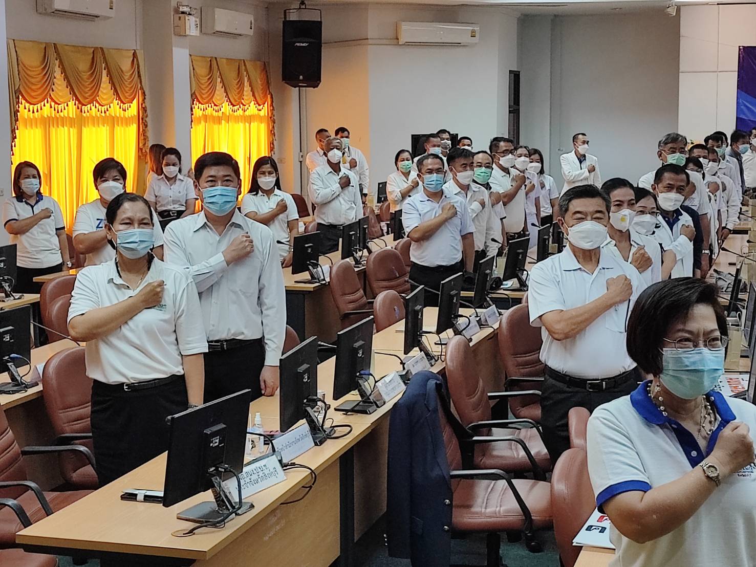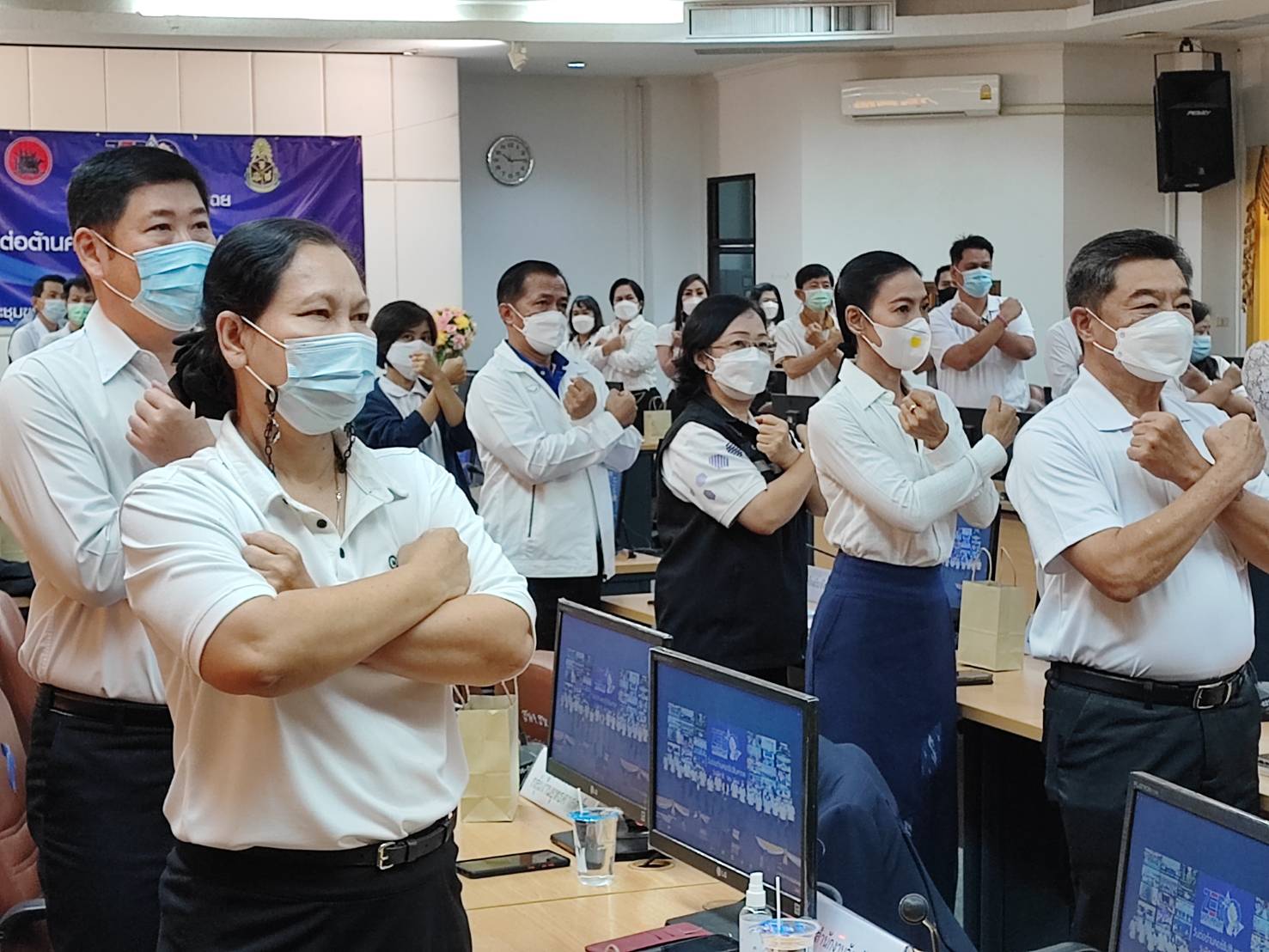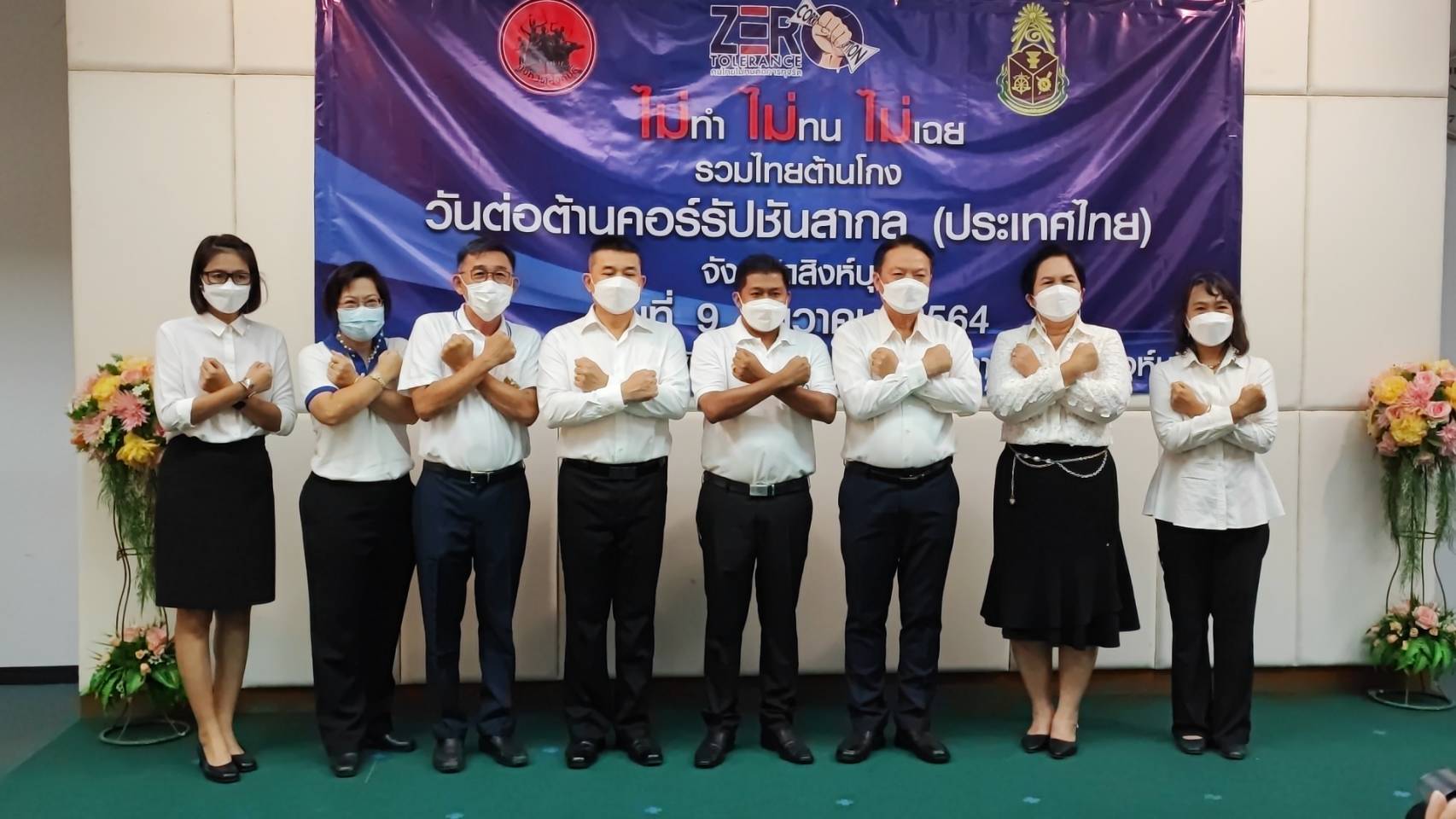 วันพฤหัสบดีที่ 9 ธันวาคม พ.ศ.2564 เวลา 09.30 น.นายสัมฤทธิ์ กองเงิน รองผู้ว่าราชการจังหวัดสิงห์บุรี นายสมชาย หลีหล้าน้อย รองผู้ว่าราชการจังหวัดสิงห์บุรี ผู้บังคับการตำรวจภูธรจังหวัดสิงห์บุรีพร้อมด้วยหัวหน้าส่วนราชการ หัวหน้าหน่วยงานภาครัฐ ภาคเอกชน องค์กรปกครองส่วนท้องถิ่น ภาคประชาสังคม ทุกภาคส่วน ที่เกี่ยวข้องใส่เสื้อสีขาว ร่วมกิจกรรมประกาศเจตนารมณ์เนื่องในวันต่อต้านคอร์รัปชันสากล (ประเทศไทย) แบบออนไลน์ ณ ห้องประชุมขุนสรรค์ พันเรือง ชั้น 5 ศาลากลางจังหวัดสิงห์บุรี ได้รับฟัง พลเอกประยุทธ์ จันทร์โอชา นายกรัฐมนตรี แถลงผลการประเมินคุณธรรมและความโปร่งใสในการดำเนินงานของหน่วยงานภาครัฐ (ITA) และสถานการณ์การทุจริต โดย พลตำรวจเอกวัชรพล ประสานราชกิจ ประธานกรรมการ ป.ป.ช. พร้อมด้วย สำนักงาน ป.ป.ท. และองค์กรต่อต้านคอร์รัปชัน (ประเทศไทย) ร่วมแสดงสัญลักษณ์ต่อต้านการทุจริต ผ่านสัญญาณการถ่ายทอดสดทาง Facebook Live เพจสำนักงาน ป.ป.ช.