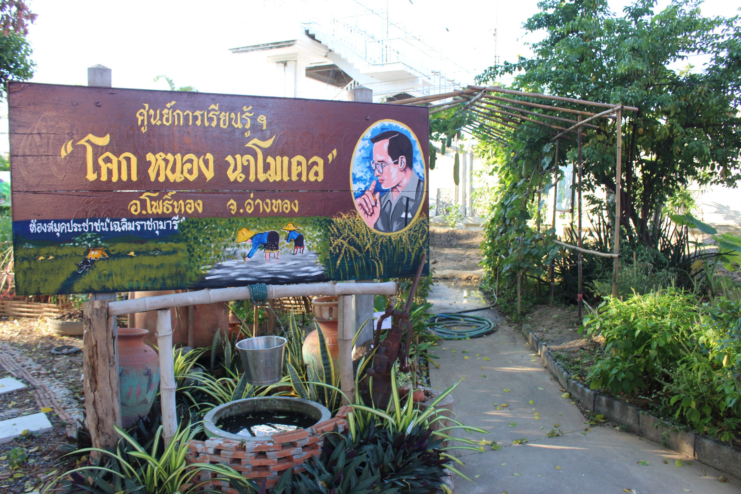 พ.จ.อ.พัฒน์ ผดุงญาติ ผู้อำนวยการ สำนักงาน กศน. จังหวัดอ่างทอง กล่าวให้การต้อนรับพร้อมทั้งรายงานสถานการศึกษาในสังกัดของสำนักงาน กศน.จังหวัดอ่างทอง มีจำนวน 7 แห่ง มีบุคลาการรวมทั้งสิ้น จำนวน 156 คน มีห้องสมุดประชาชน “เฉลิมราชกุมารี” จำนวน 3 แห่ง ดังนี้ ห้องสมุดประชาชน “เฉลิมราชกุมารี” อำเภอโพธิ์ทอง ห้องสมุดประชาชน “เฉลิมราชกุมารี” อำเภอวิเศษชัยชาญ และห้องสมุดประชาชน “เฉลิมราชกุมารี” อำเภอแสวงหา ส่วนห้องสมุดประชาชน “เฉลิมราชกุมารี” แห่งนี้ ก่อสร้างเมื่อวันที่ 8 มิถุนายน พ.ศ. 2535 ก่อสร้างเป็นลำดับที่ 3 ของประเทศ และได้รับการพัฒนาอย่างต่อเนื่อง เป็นแหล่งการเรียนรู้ของนักเรียน นักศึกษาและประชาชนทั่วไป มีระบบอินเตอร์เน็ตนิทรรศการเรียนรู้ เพื่อให้นักเรียน และประชาชนได้ใช้ประโยชน์ในการศึกษาและค้นคว้า และยังมีกิจกรรมห้องสมุดเคลื่อนที่เป็นการบริการเชิงรุก โดยออกไปให้บริการพื้นที่ชุมชน กศน.ตำบล บ้านหนังสือชุมชน และจัดกิจกรรมร่วมกับเครือข่ายห้องสมุดประชาชน 8 แห่ง เพื่อส่งเสริมการอ่านและการเรียนรู้ร่วมกัน บริเวณโดยรอบของห้องสมุดแห่งนี้ได้มีการเปิดพื้นที่สร้างเป็นศูนย์เรียนรู้ “โคก หนอง นา โมเดล” ให้เป็นศูนย์กลางเรียนรู้เศรษฐกิจพอเพียงในชุมชนอำเภอโพธิ์ทอง อีกทั้งยังเป็นต้นแบบห้องสมุดประชาชน “เฉลิมราชกุมารี”