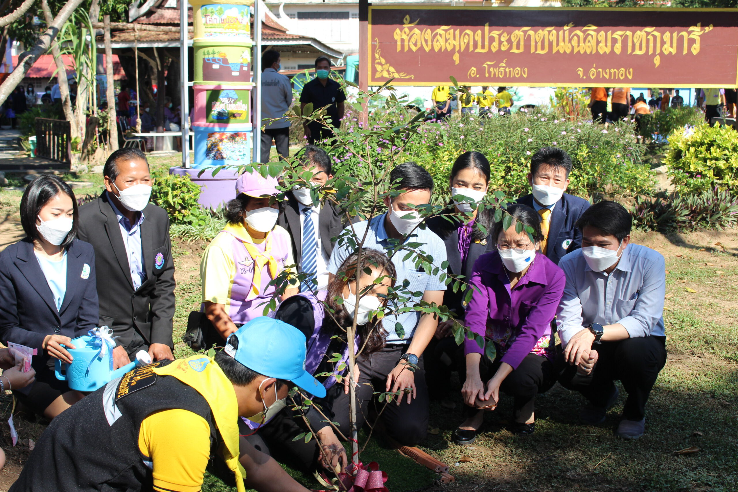 หลังจากนั้นนางสาวกุหลาบ อ่อนระทวย ผอ. กศน. อำเภอโพธิ์ทอง กล่าวต้อนรับ ดร.กนกวรรณ วิลาวัลย์รัฐมนตรีช่วยการทรวงศึกษาธิการพร้อมทั้งที่ปรึกษาฯ และคณะทำงานของรัฐมนตรีช่วยว่าการกระทรวงศึกษาธิการ ได้ชมวิดีทัศน์ แสดงผลการดำเนินงานและกิจกรรมของห้องสมุดประชาชน “เฉลิมราชกุมารี พร้อมทั้งตอบข้อซักถาม หลังจากนั้นเมื่อเวลาประมาณ 10.30 น. ดร.กนกวรรณ วิลาวัลย์ รัฐมนตรีช่วยกระทรวงศึกษาธิการ ได้เดินทางไปปลูกต้นรวงผึ้ง พร้อมด้วยนายภราดร –นายกรวีย์ ปริศนานันทกุล ส.ส.จังหวัดอ่างทองและถ่ายภาพร่วมกัน