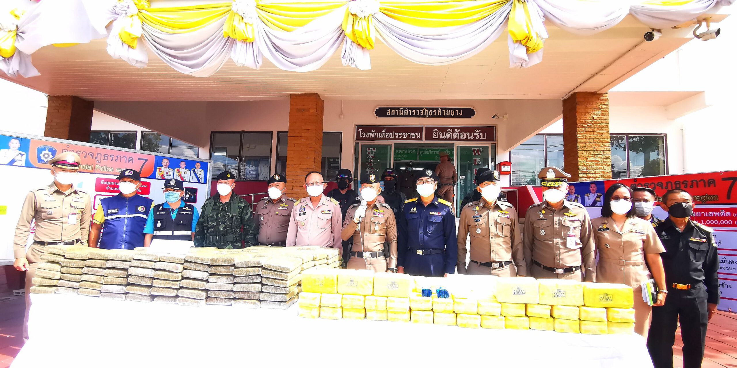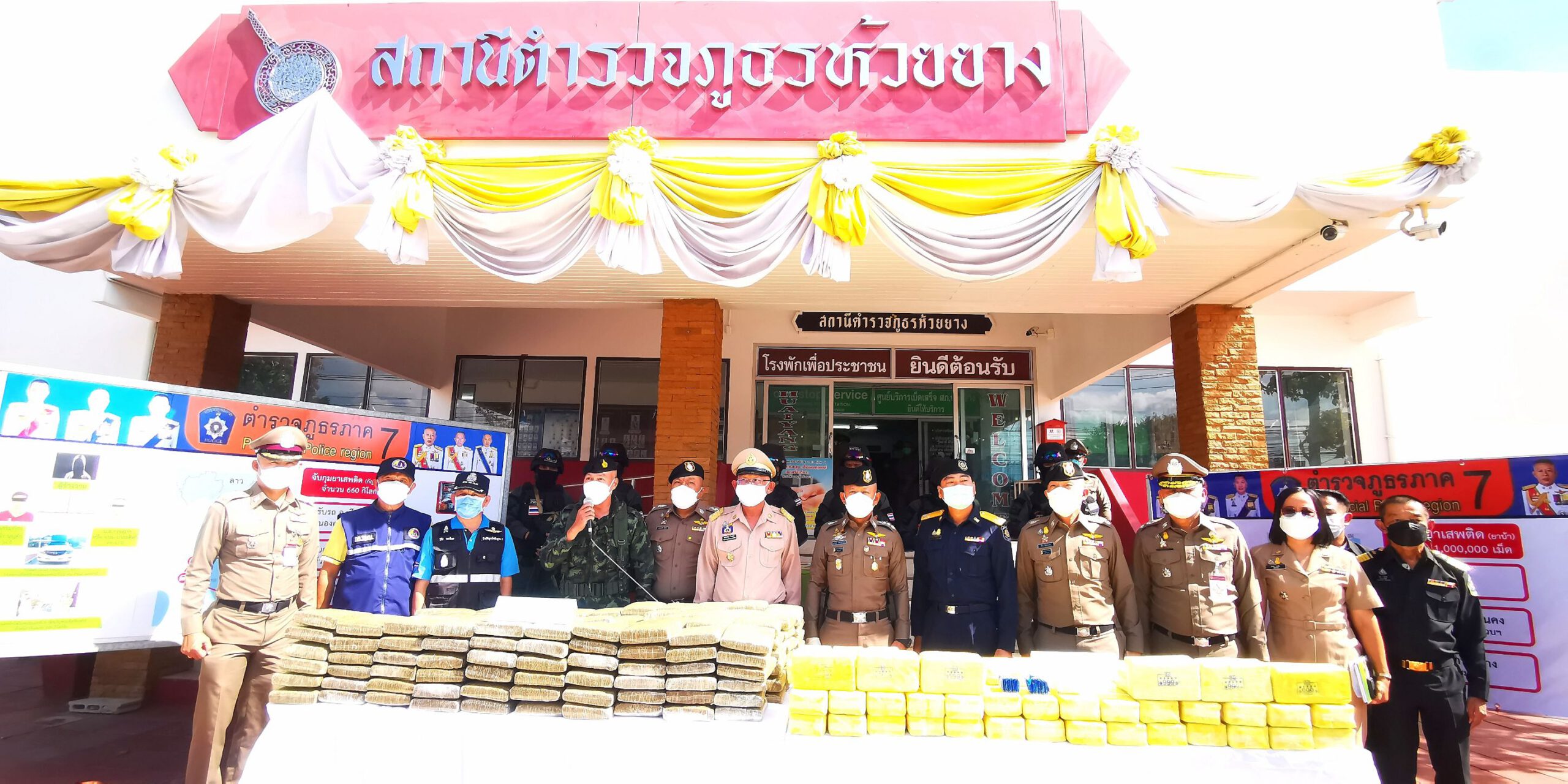 เมื่อเวลา 13.00 น. วันที่ 13 ธ.ค. 64 ที่สถานีตำรวจภูธรห้วยยาง อำเภอทับสะแก จังหวัดประจวบคีรีขันธ์ พล.ต.ท. ธนายุตม์ วุฒิจรัสธำรงค์ ผู้บัญชาการตำรวจภูธรภาค 7 ( ผบช.ภ.7 ) พล.ต.ต.พิสิฐ ตันประเสริฐ พล.ต.ต.บุญญฤทธิ์ รอดมา รอง ผบช.ภ.7 พล.ต.ต. วันชัย ธารณธรรม ผู้บังคับการตำรวจภูธรจังหวัดประจวบคีรีขันธ์ พร้อมด้วย พ.ต.อ.กิตติภพ ชมภูนุช พ.ต.อ.พนิช อ่วมสอาด รอง ผบก.ภ.ประจวบคีรีขันธ์ พ.ต.อ. นนท์ ภักดีพันธ์ ผกก.สภ.หัวยยาง พ.อ.พงศ์พัฒน์ ห้องสินหลาก รอง ผบ.ฉก.จงอางศึก นายสำรวย วรเตชะคงคา ผู้เชี่ยวชาญ ปปส.ภ.7 และ นายพรหมพิริยะ กิจนุสนธิ์ รองผู้ว่าราชการจังหวัดประจวบคีรีขันธ์ พร้อมด้วยทหาร, ฝ่ายปกครอง และด่านกักกันสัตว์ประจวบคีรีขันธ์