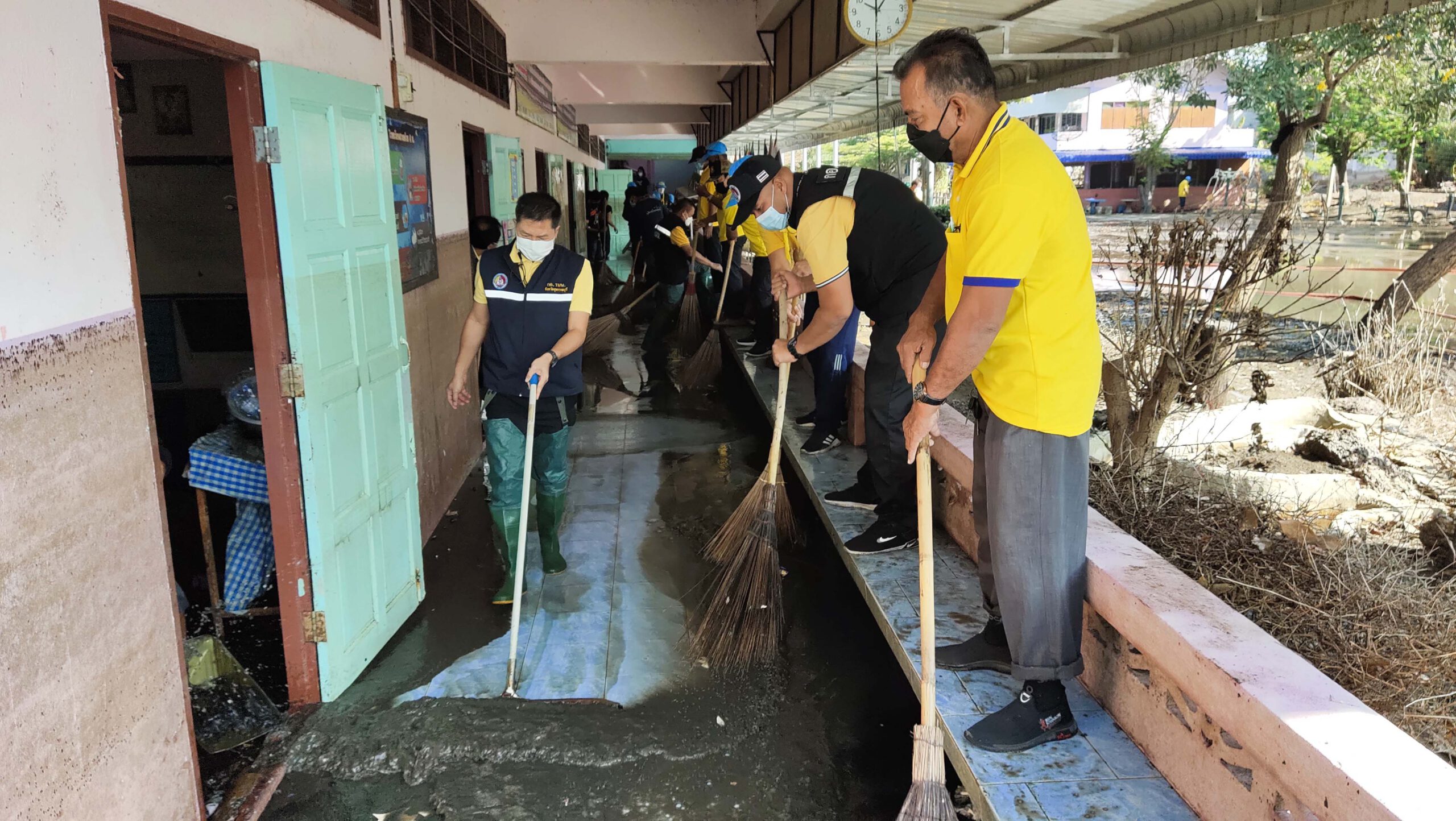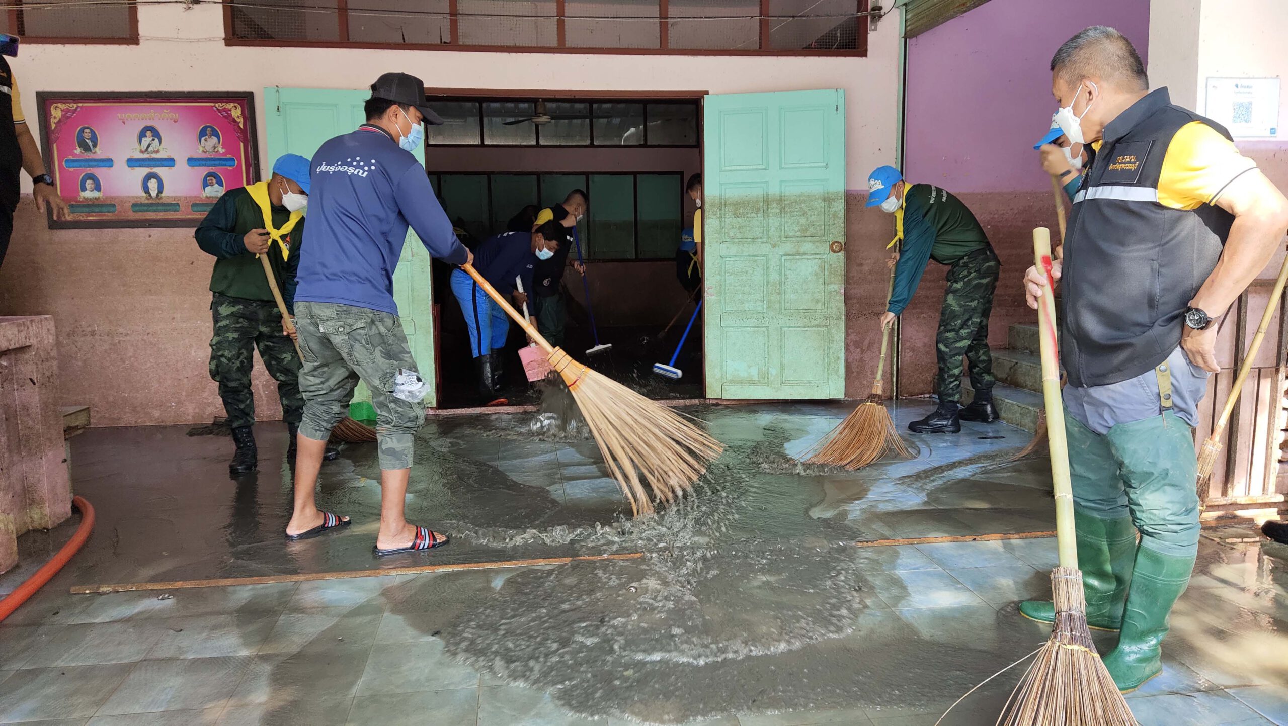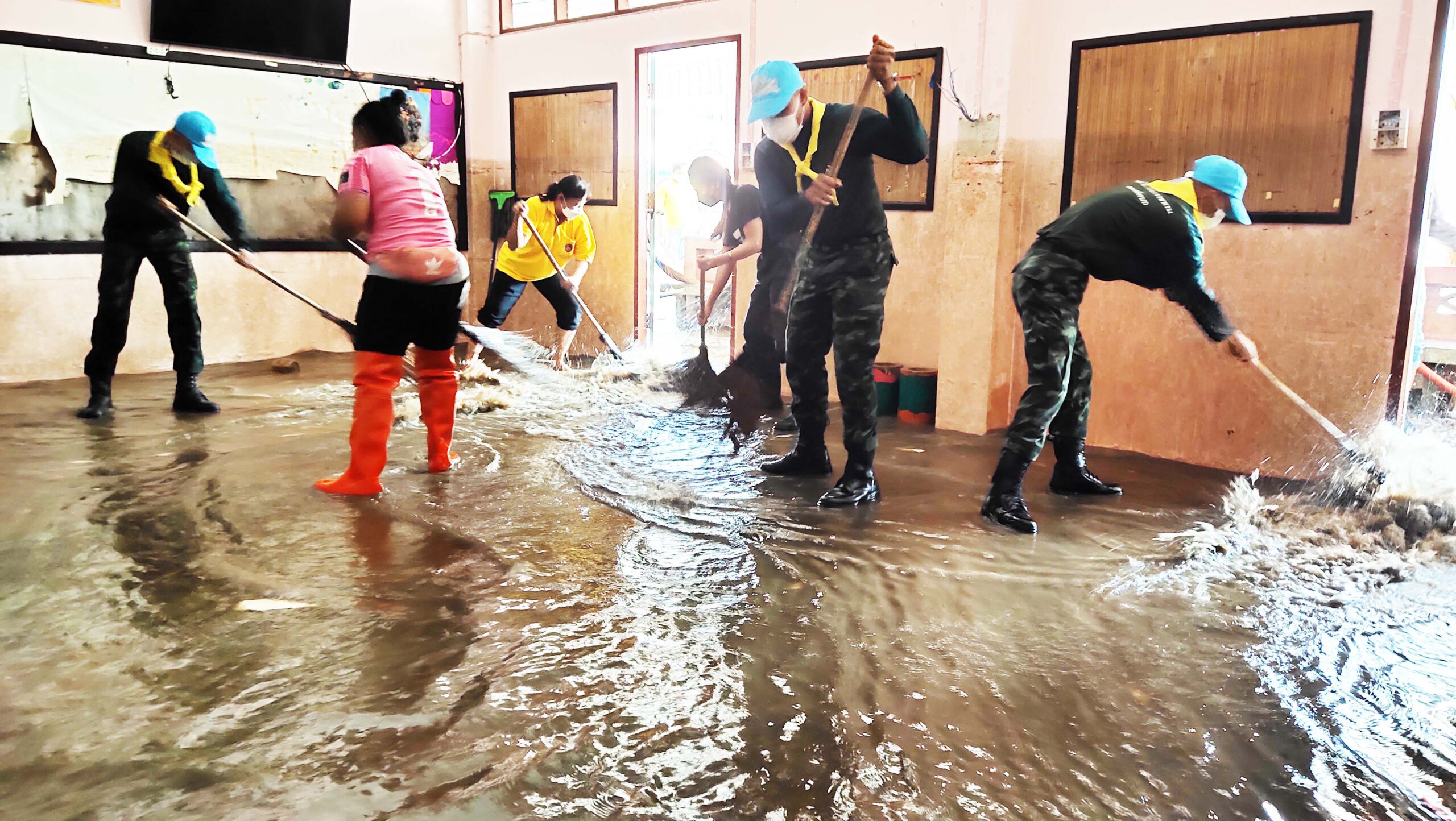สุพรรณบุรี ทหารร่วมจิตอาสาช่วยทำความสะอาดฟื้นฟูโรงเรียนหลังน้ำลด