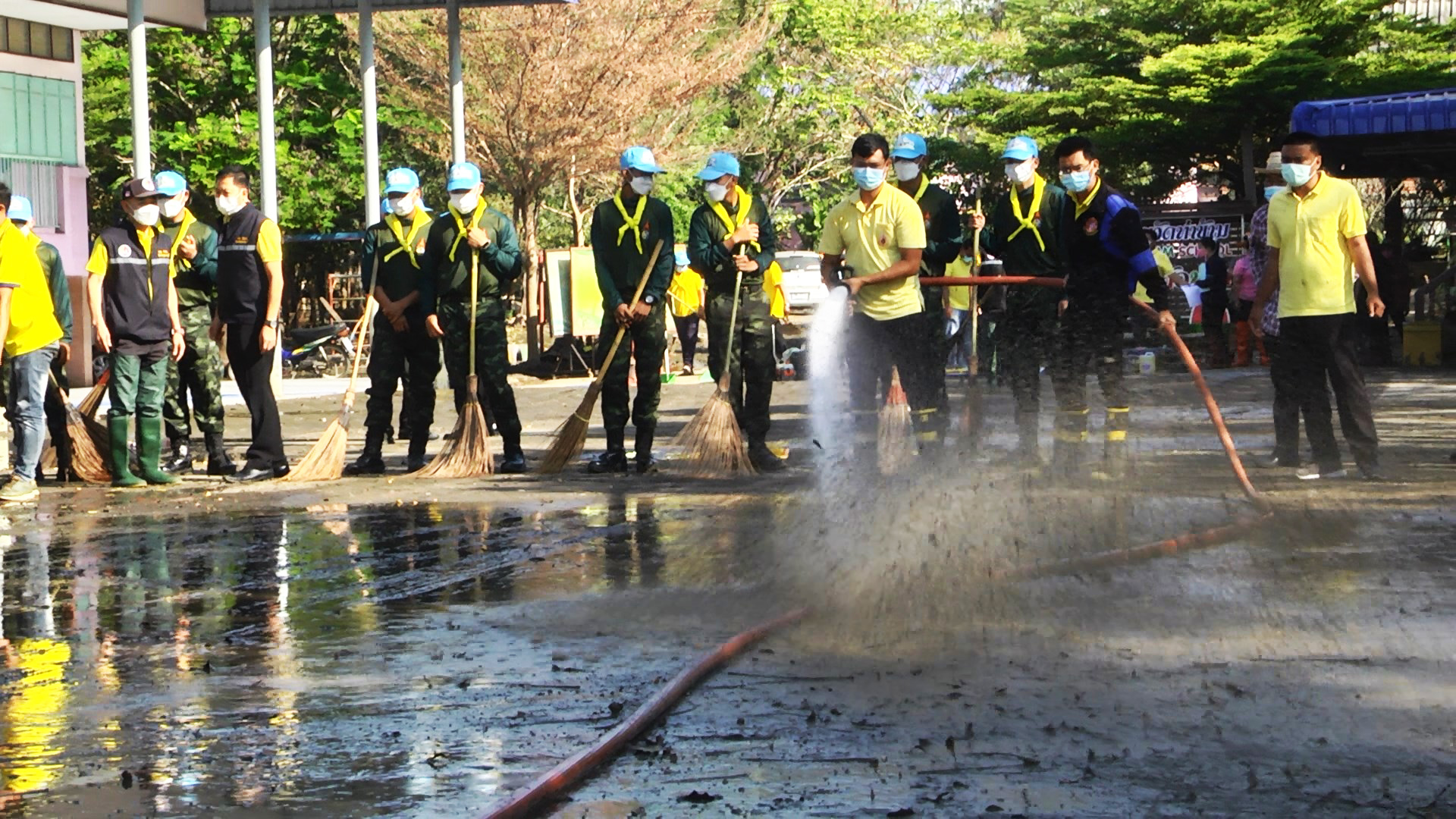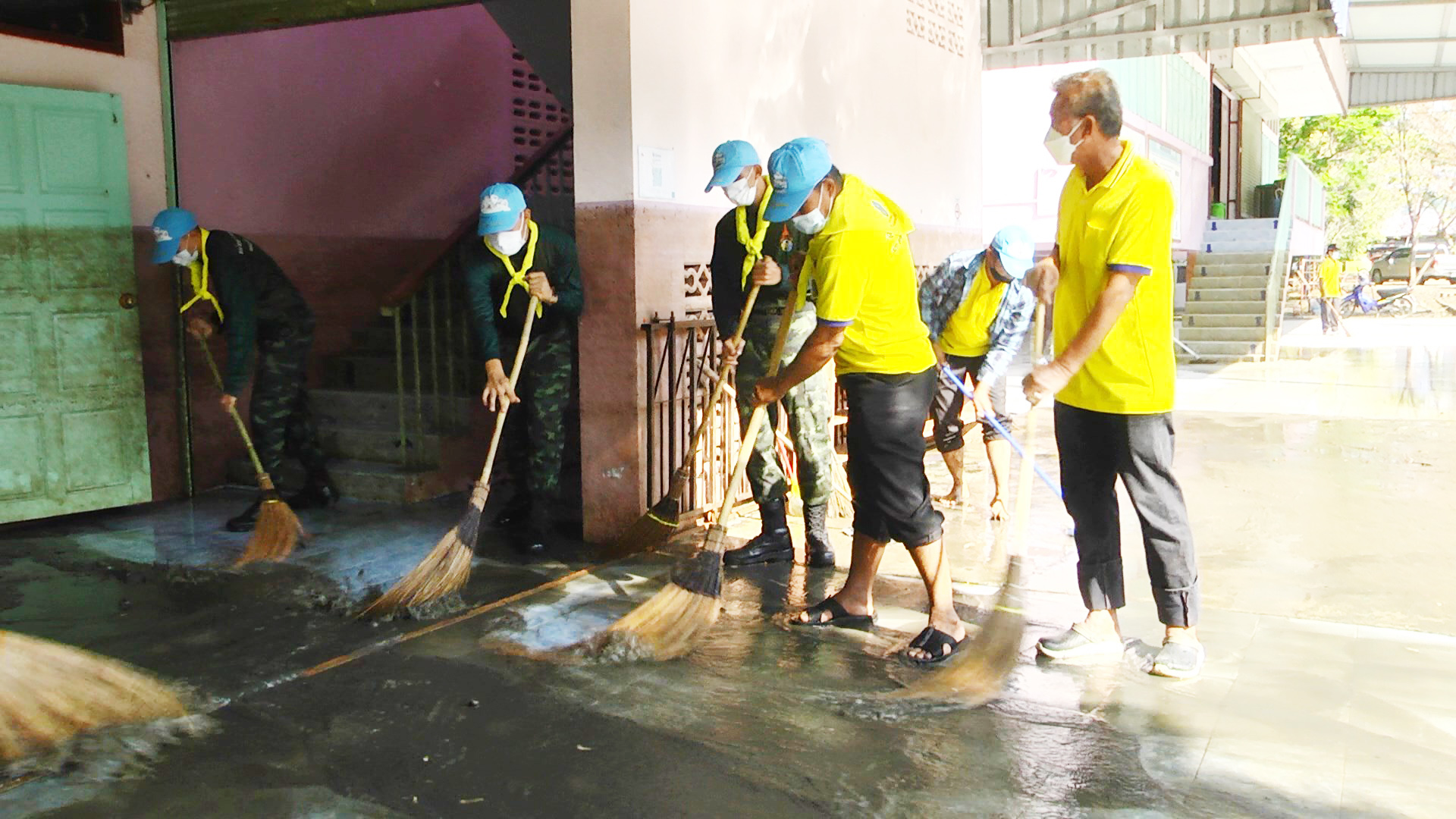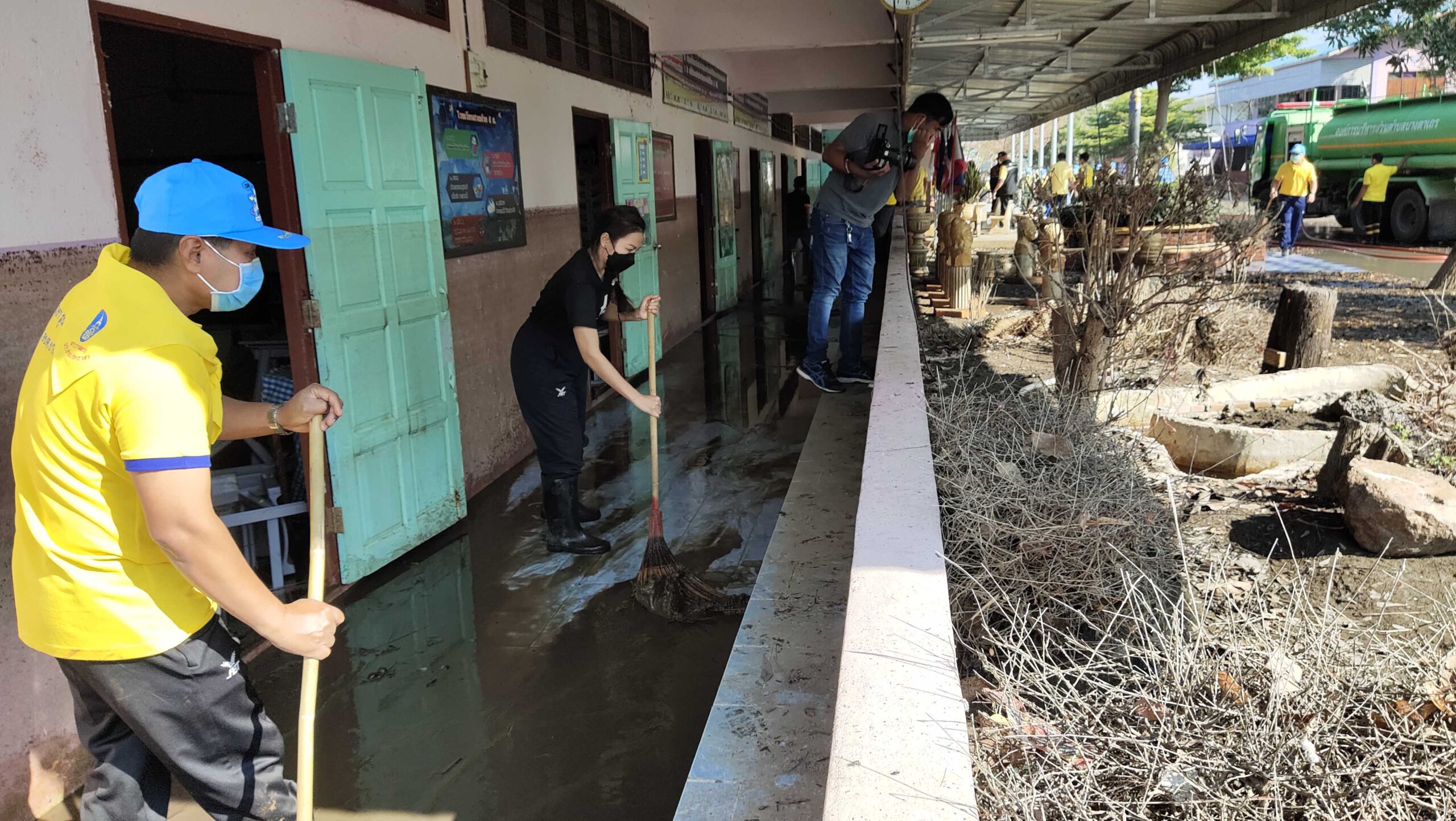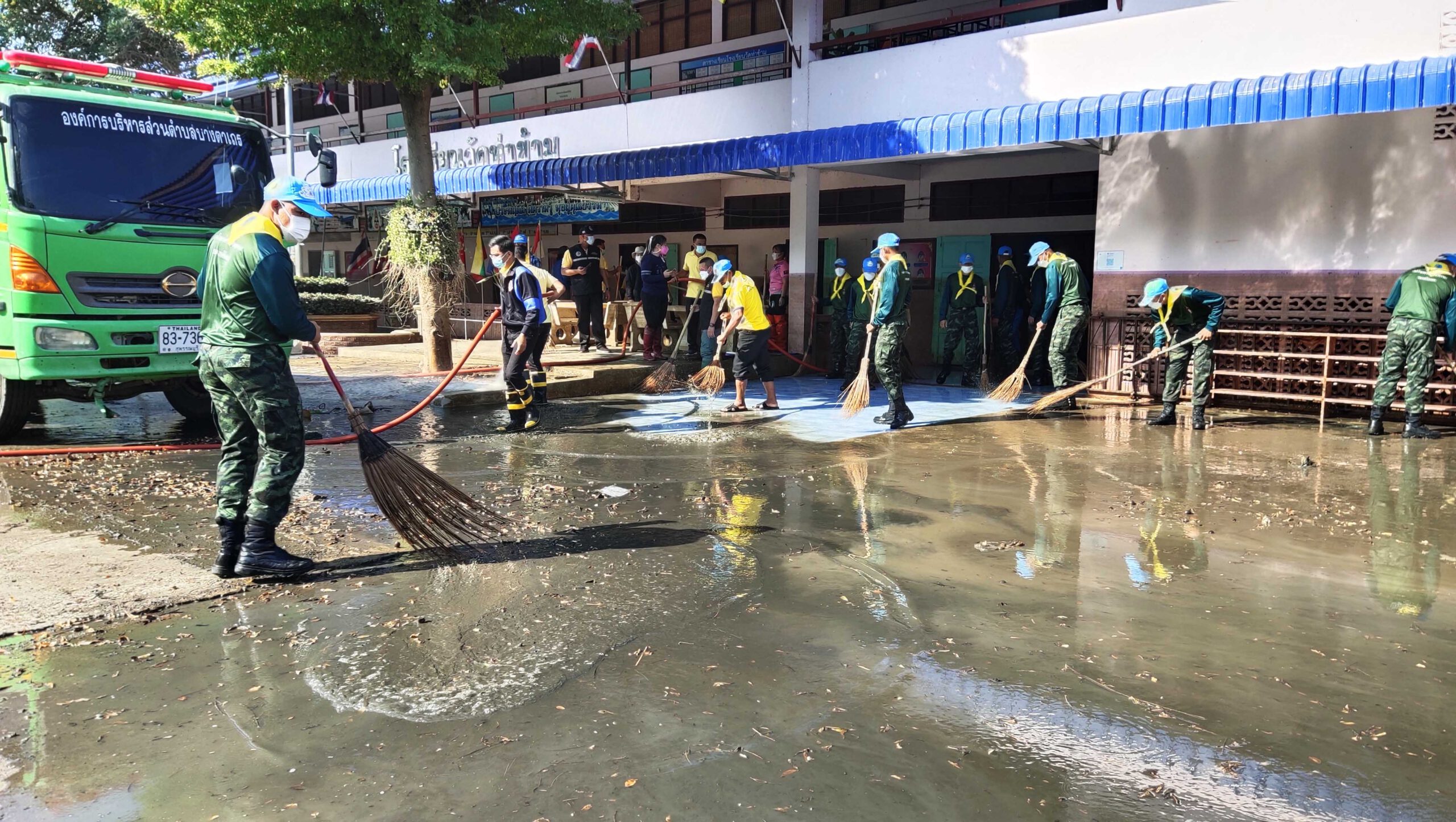 สุพรรณบุรี ทหารร่วมจิตอาสาช่วยทำความสะอาดฟื้นฟูโรงเรียนหลังน้ำลด