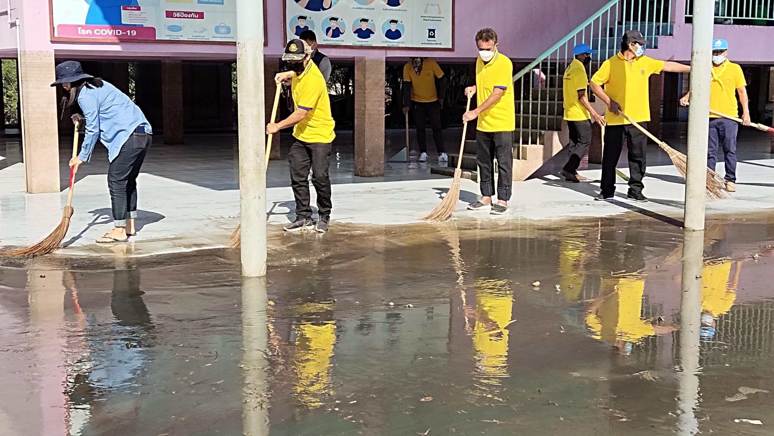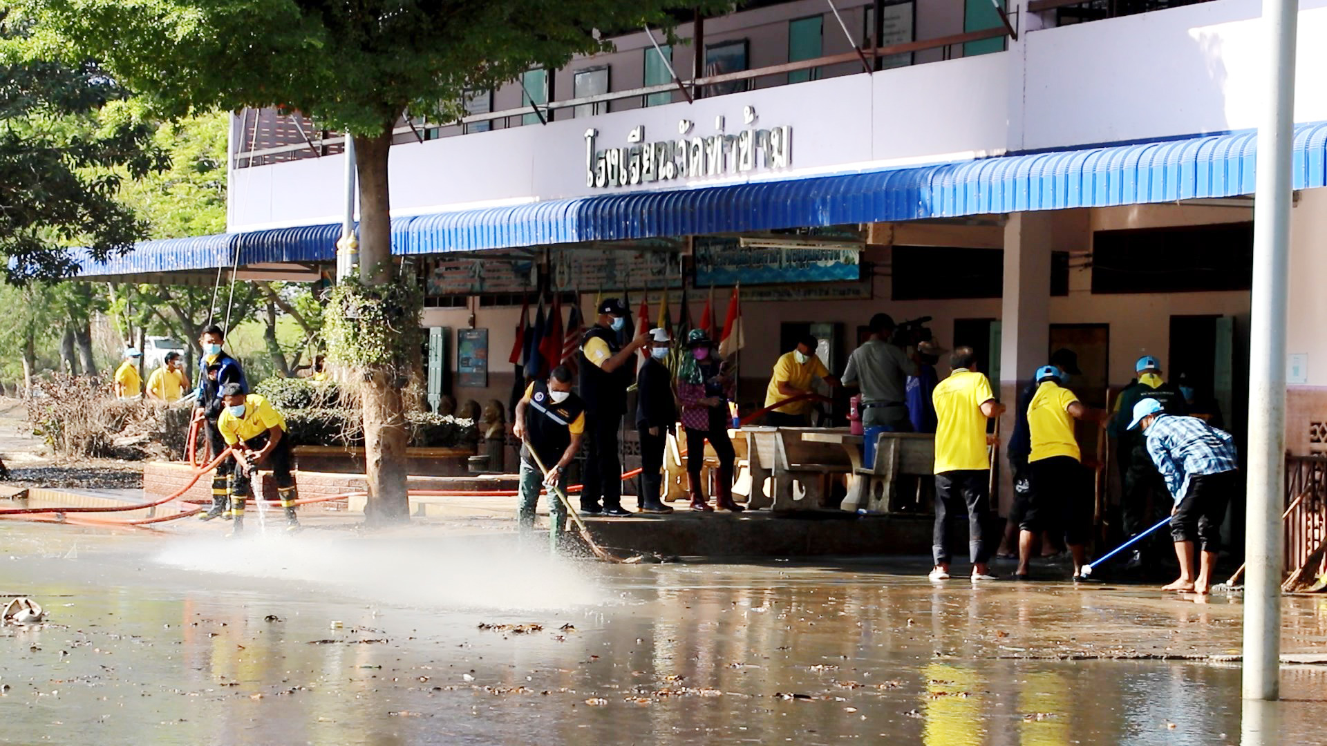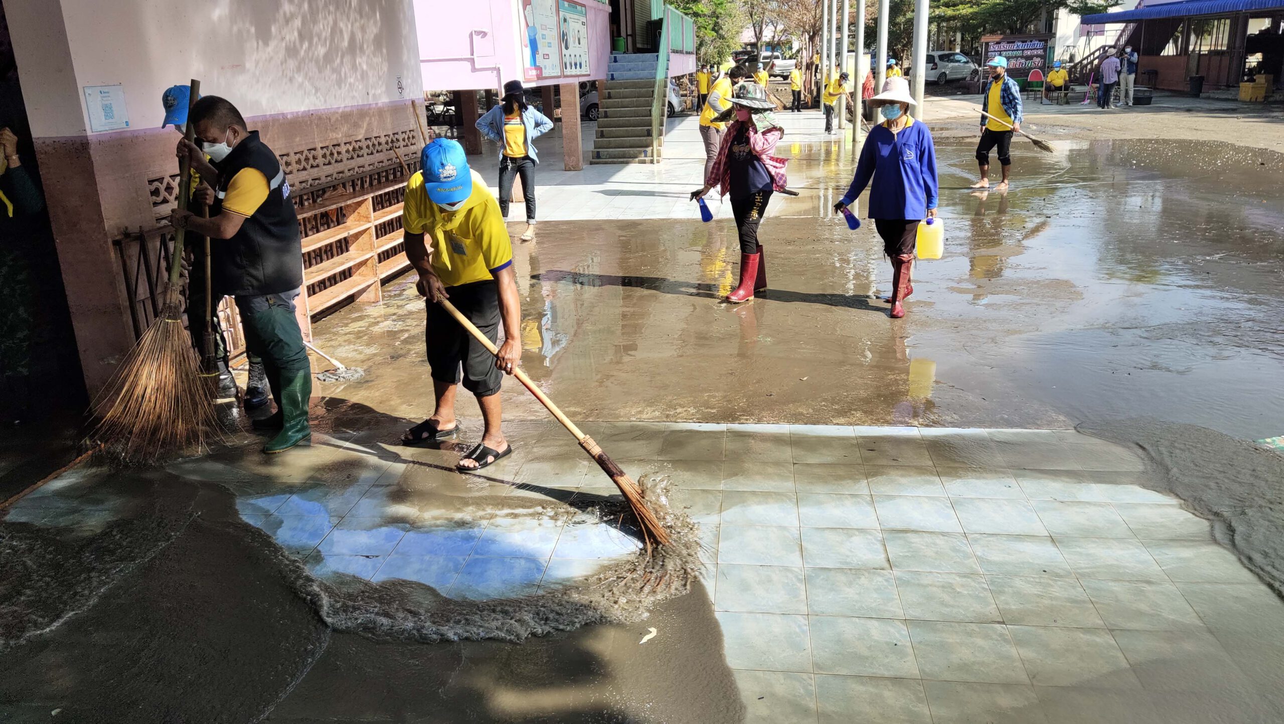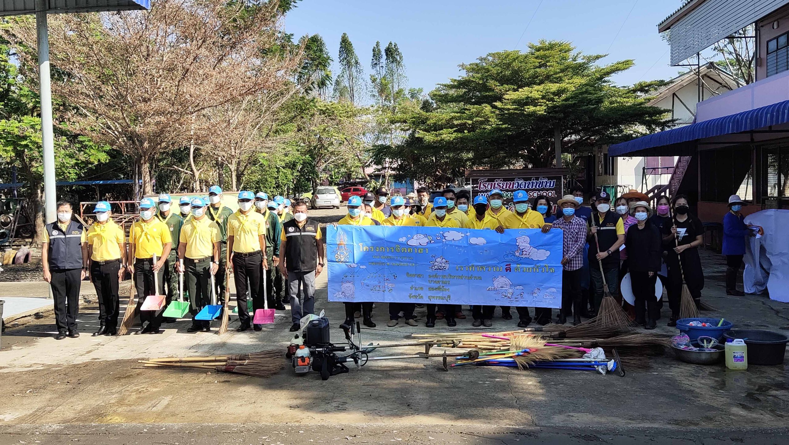 อย่างไรก็ตามหลังจากนี้จะได้เร่งซ่อมแซมทั้งตัวอาคารเรียน อุปกรณ์การเรียนการสอนส่วนที่เสียหายทั้งหมดก่อน ซึ่งการทำความสะอาดโรงเรียนวันนี้ได้รับความอนุเคราะห์และความร่วมมือจาก รองผู้อำนวยการรักษาความมั่นคงภายในจังหวัดสุพรรณบุรี กำลังทหารทหารจาก กองพันทหารช่างที่ 9 กองพลทหารราบที่ 9 (ค่ายสุรสีห์) นายไพฑูรย์ วงศ์วีรกูล นายอำเภอสองพี่น้อง จิตอาสาอำเภอสองพี่น้อง และ องค์การบริหารส่วนตำบลบางตาเถร คณะครู ผู้นำชุมชนและจิตอาสา ร่วมกันทำความสะอาดฟื้นฟูโรงเรียนเพื่อให้เด็กนักเรียนได้เข้ามาเรียนตามปกติต่อไป