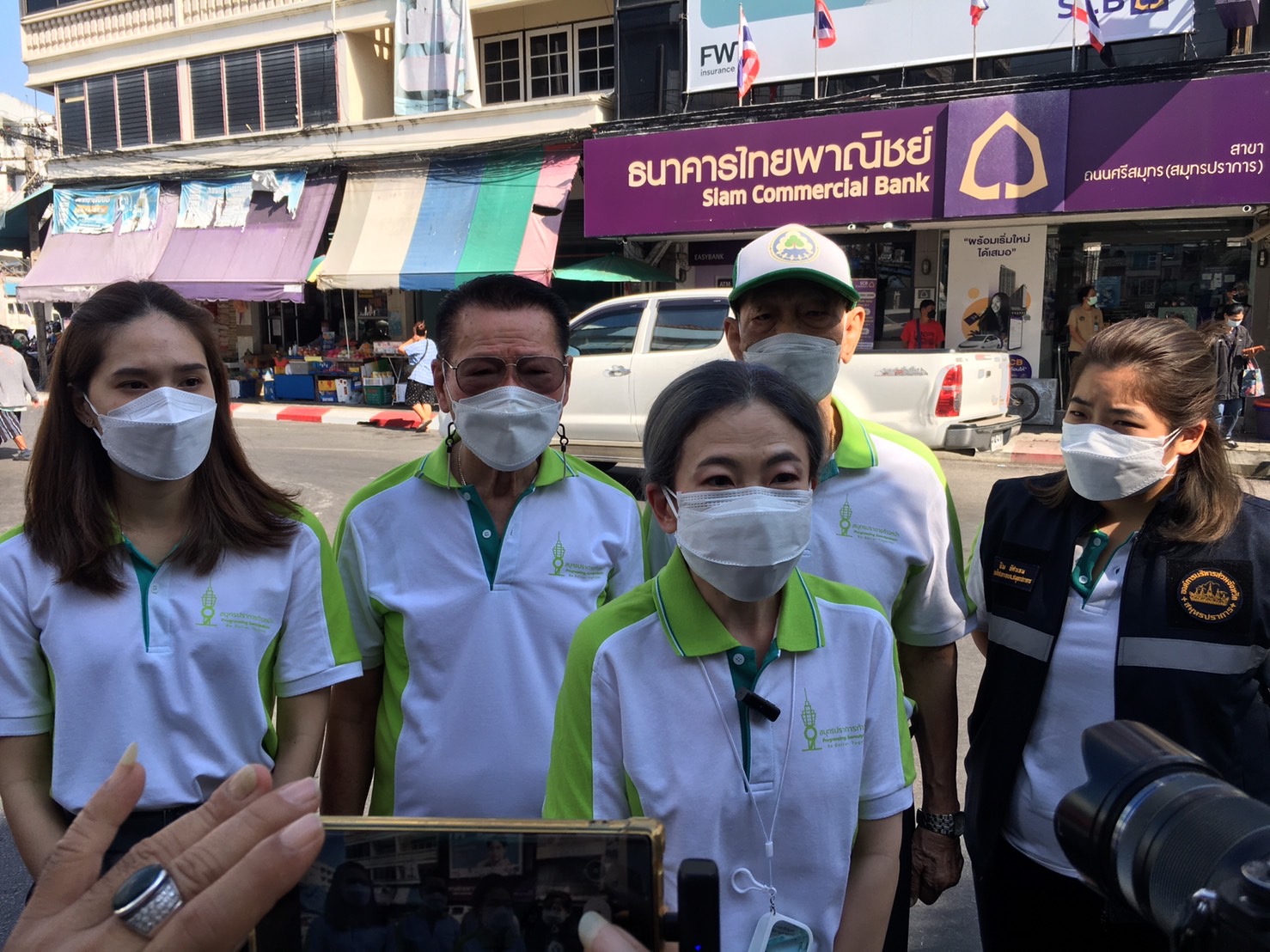 โดยนางประภาพร อัศวเหม นายกเทศมนตรีนครสมุทรปราการ พร้อมสมาชิกสภาเทศบาลนครสมุทรปราการ น.ส.นันทิดา แก้วบัวสาย นายกองค์การบริหารส่วนจังหวัดสมุทรปราการ นายสมลักษณ์ ควรสงวน รองนายกอบจ. นางสาวชนม์ทิดา อัศวเหม เลขานุการ นายรัชชานนท์ ทองอร่าม นายสมหวัง เกษมโกสิน เลขานุการนายกอบจ. พร้อมทีมงาน ได้ลงพื้นที่ตลาดปากน้ำ เพื่อแจกแอลกอฮอล์ และหน้ากากอนามัยให้กับประชาชน