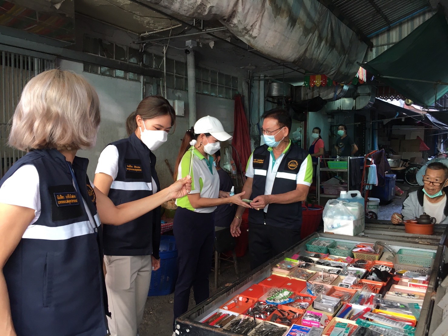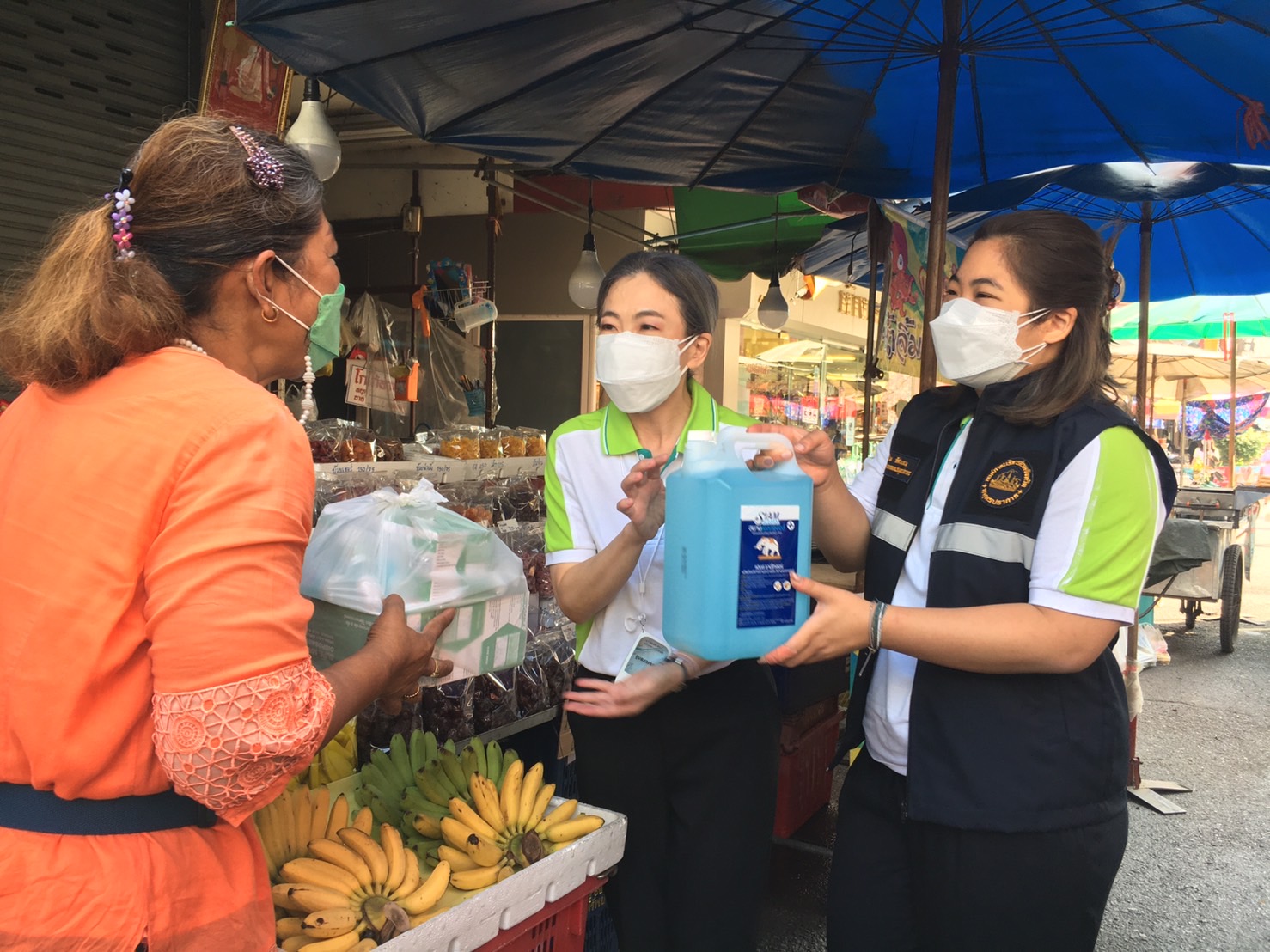 ขณะที่ใกล้เทศกาลปีใหม่ ประชาชนก็จะมาจับจ่ายซื้อของที่ตลาดปากน้ำกันจำนวนมาก ดังนั้นทางเทศบาลนครสมุทรปราการ ร่วมกับองค์การบริหารส่วนจังหวัดสมุทรปราการ จึงได้ลงพื้นที่ร่วมกันแจกเจล แอลกอฮอล์ และหน้ากากอนามัยให้กับประชาชน โดยนำของมาให้เพื่อสมทบกับของเก่าที่มีอยู่เพื่อจะได้ใช้ต่อไปได้ เพราะเมื่อประชาชนออกมาจับจ่ายซื้อของ ทำให้เกิดการพบปะผู้คนจำนวนมาก โอกาสเสี่ยงที่จะติดเชื้อก็มีมากเช่นกัน ทางเทศบาลนครสมุทรปราการ และองค์การบริหารส่วนจังหวัดสมุทรปราการ จึงได้ออกมารณรงค์และแจกสิ่งของที่จำเป็นที่ต้องใช้ให้กับประชาชนในการป้องกันเชื้อโควิดเข้าสู่ร่างกาย