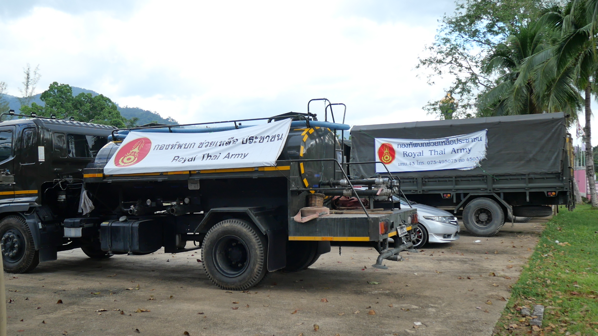 จิตอาสามณฑลทหารบกที่ 43 จิตอาสากองบัญชาการช่วยรบที่ 4 กองพลทหารราบที่ 5 ค่ายเทพสตรีศรีสุนทร อำเภอทุ่งสง จังหวัดนครศรีธรรมราช จิตอาสากองพันทหารช่าง 401,402 จังหวัดพัทลุง และจิตอาสากองพันทหารราบที่ 4 กรมทหารราบที่ 15 ค่ายพระยารัษฎานุประดิษฐ์ อำเภอห้วยยอด จังหวัดตรัง ยังคงก่อสร้างบ้านเรือนให้กับประชาชน และผลิตข้าวกล่อง ผลิตน้ำดื่ม ให้กับประชาชนที่เดือดร้อนจากภัยน้ำป่าไหลหลาก ตำบลโพรงจระเข้ อำเภอย่านตาขาว จังหวัดตรัง