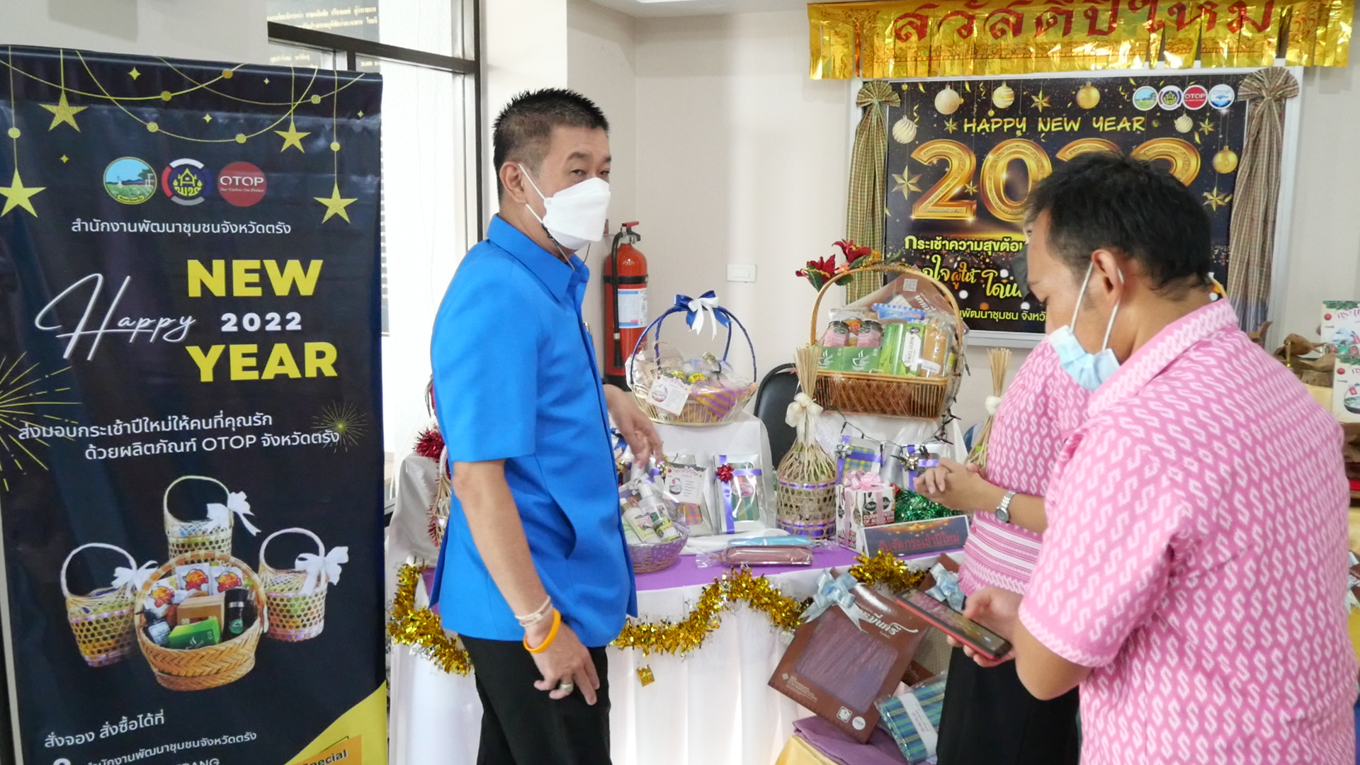 ผู้ว่าราชการจังหวัดตรัง เชิญชวนประชาชน หน่วยงานภาครัฐ ภาคเอกชน ช่วยกันอุดหนุนสินค้า OTOP ส่งมอบความสุข ด้วยความสุขล้นใจ ในเทศกาลปีใหม่ เพื่อเป็นการช่วยเหลือพี่น้องที่ผลิตสินค้าชุมชน ให้มีรายได้เพิ่มขึ้น ในช่วงการแพร่ระบาดโควิด -19 โดยสินค้ามีราคาขั้นต่ำเพียง 300 บาท เป็นสินค้าเพื่อสุขภาพ