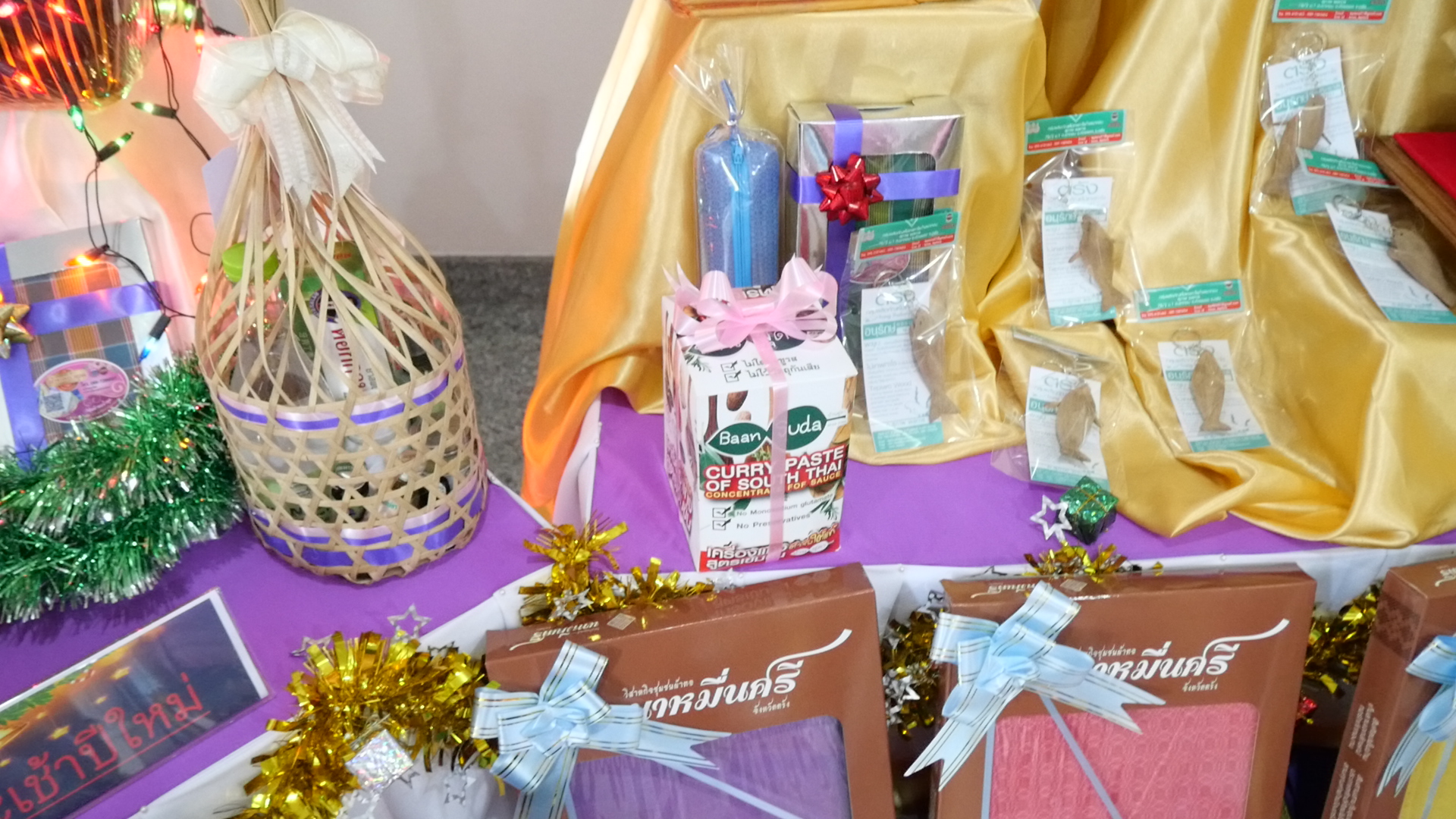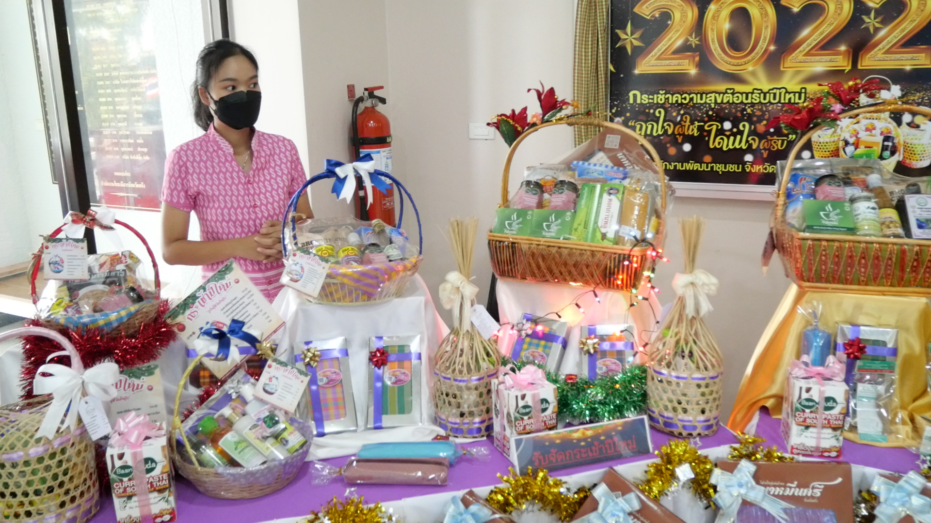 ทั้งนี้ ผู้ว่าราชการจังหวัดตรัง ได้กล่าวว่า พี่น้องประชาชนชาวจังหวัดตรัง ถ้าจะมอบ ของขวัญให้กับผู้หลักผู้ใหญ่ หรือเพื่อนฝูง อยากจะเสนอ สินค้าโอทอป ของสำนักงานพัฒนาชุมชนจังหวัดตรัง วันนี้มีสินค้าหลากหลาย ที่เป็นผลิตภัณฑ์โอทอป มีคุณภาพไม่ว่าจะเป็นในเรื่อง อาหาร สมุนไพร เครื่องใช้ ผ้าทอ ตอนนี้สำนักงานพัฒนาชุมชนจังหวัดตรัง แนะนำมาจัดนิทรรศการ การจัดกระเช้า ของขวัญปีใหม่ ที่บริเวณชั้นล่าง ศาลากลางจังหวัดตรัง ซึ่งเป็นกระเช้าสำเร็จรูป มีทั้งแบบกระเช้าและ ชะลอม อยากเชิญชวนพี่น้องประชาชนชาวจังหวัดตรัง ซื้อสินค้าผลิตภัณฑ์โอทอป ชุมชนของวิสาหกิจชุมชนจังหวัดตรังที่น่าสนใจ และมีคุณภาพ สิ่งสำคัญเป็นการอุดหนุนพี่น้องของจังหวัดตรังจะทำให้มีอาชีพ มีรายได้ และเป็นการกระตุ้นเศรษฐกิจชุมชนตามนโยบายรัฐบาล ทั้งนี้ มีการจัดทำแคตตาล็อค และตัวอย่างกระเช้าของขวัญหลายรูปแบบ ราคาตั้งแต่ 300 บาท ขึ้นไป ให้ส่วนราชการ และประชาชนได้เลือก ชม ซื้อ ได้ที่บริเวณห้องโถง ชั้น 1 ศาลากลางจังหวัดตรัง เพื่อมอบให้แก่บุคคลที่เคารพและนับถือเป็นของขวัญปีใหม่ที่ใกล้มาถึง และยังรับจัดกระเช้าตามความประสงค์ของประชาชนอีกด้วย