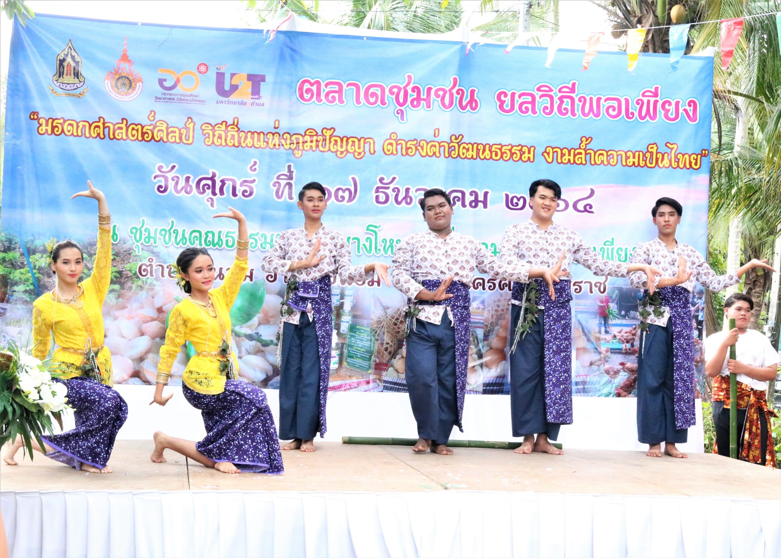 ณ ชุมชนคุณ บ้านบางโหนด (ท่าขามเกษตรพอเพียง) ตำบลขนอม อำเภอขนอม จังหวัดนครศรีธรรมราช วิทยาลัยเทคโนโลยีอุตสาหกรรมและการจัดการ มหาวิทยาลัยเทคโนโลยีราชมงคลศรีวิชัย วิทยาเขตนครศรีธรรมราช พื้นที่ขนอม โดย อาจารย์วาจิศา จันทรักษ์ หัวหน้าโคงการ, อาจารย์น้ำฝน จันทร์นวล อาจารย์ที่ปรึกษาโครงการ พร้อมด้วยคณะทำงานโครงการยกระดับเศรษฐกิจตำบลแบบบูรณาการ (U2T) มหาวิทยาลัยสู่ตำบลสร้างรากแก้วให้ประเทศ ตำบลขนอม (U2Tตำบลขนอม) สนับสนุนงบประมาณโดยกระทรวงอุดมศึกษา วิทยาศาสตร์ วิจัยและนวัตกรรม (อว.) ร่วมกับ วัฒนธรรมจังหวัดนครศรีธรรมราช จัดกิจกรรม ตลาดชุมชน ยลวิถีพอเพียง “มรดกศาสตร์ศิลป์ วิถีถิ่นแห่งภูมิปัญญา ดำรงค่าวัฒนธรรม งามล้ำความเป็นไทย” โดยมี นายทวีศักดิ์ ศรีภูงา ผู้อำนวยการวิทยาลัยเทคโนโลยีอุตสาหกรรมและการจัดการ มหาวิทยาลัยเทคโนโลยีราชมงคลศรีวิชัย วิทยาเขตนครศรีธรรมราช พื้นที่ขนอม ในนามตัวแทนผู้จัดกิจกรรมกล่าวรายงานถึงวัตถุประสงค์การจัดกิจกรรม และได้รับเกียรติจาก นายจิโรจน์ สำแดง นายอำเภอขนอม ในนามตัวแทนของหัวหน้าส่วนราชการ สถานศึกษา องค์กรภาครัฐ ภาคเอกชน และภาคประชาชน กล่าวต้อนรับ คุณกฤตษญา ตระบันพฤกษ์ วัฒนธรรมจังหวัดนครศรีธรรมราช ประธานในพิธีเปิด