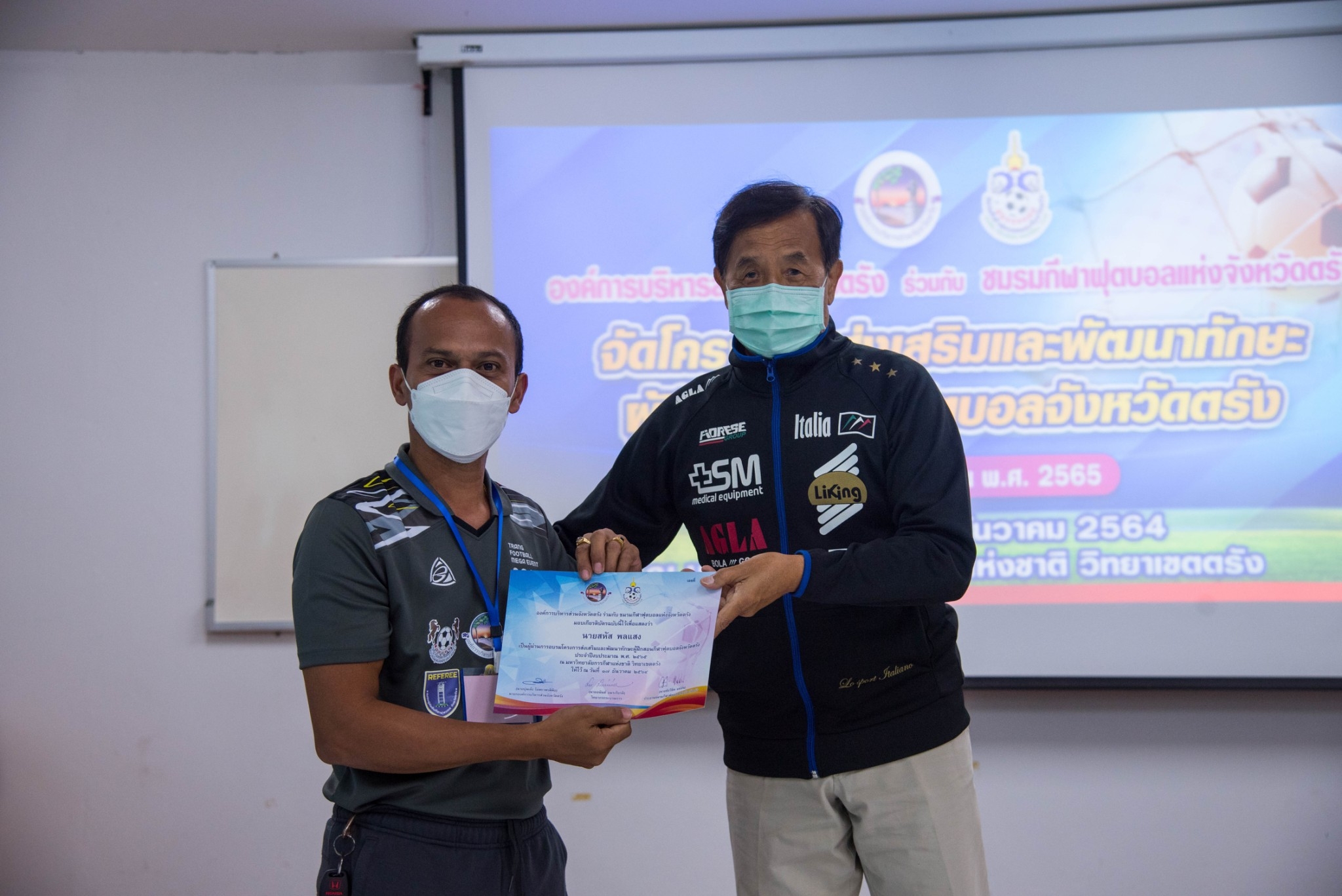 โดยการอบรมครั้งนี้มีเครือข่ายต่างๆ เช่น โรงเรียน องค์กรปกครองส่วนท้องถิ่น ชมรมฟุตบอลในจ.ตรัง และผู้ประกอบการอะคาเดมี่ จำนวน 50 คน เข้ารับความรู้ ประสบการณ์ และการถ่ายทอดทักษะการเล่นฟุตบอลตามมาตรฐานสากล จากผู้ฝึกสอนมืออาชีพ เพื่อนำไปถ่ายทอด/สาธิตให้กับนักกีฬาฟุตบอลเยาวชนของจ.ตรัง ซึ่งการจัดกิจกรรมดำเนินการภายใต้มาตรการป้องกันการแพร่ระบาดของโรคโควิด-19