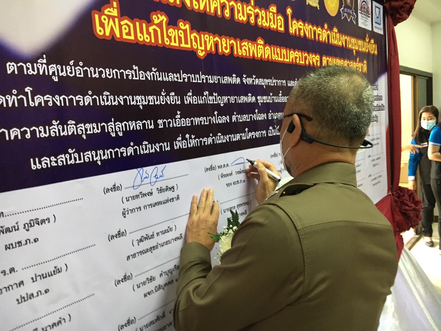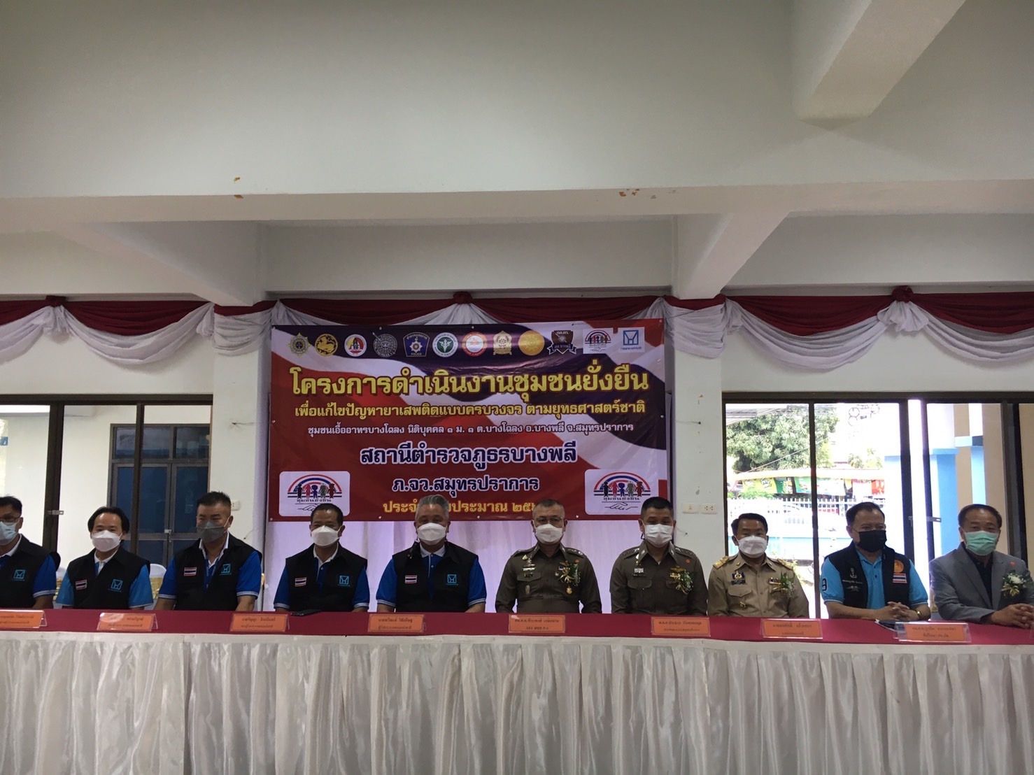 *****เมื่อเวลา 15.00น.วันที่ 19 ธ.ค.2564 ที่ เอื้ออาทรบางโฉลง ต.บางโฉลง อ.บางพลี จ.สมุทรปราการ พล.ต.ต.พีรพงษ์ วงษ์สมาน รองผบช.ภ.1 เป็นประธานในพิธีเปิด โครงการดำเนินงานชุมชนยั่งยืน เพื่อแก้ไขปัญหายาเสพติด ตามยุทธศาสตร์ชาติแบบครบวงจร โดยมี นายทวีพงษ์ วิชัยดิษฐ์ ผู้ว่าการ การเคหะแห่งชาติ พ.ต.อ.ประธาน นันทกอบกุล รองผบก.ภ.จว.สมุทรปราการ นายสมศักดิ์ แก้วเสนา นายอำเภอบางพลี พ.ต.อ.วิโรจน์ ตัดโส ผกก.สภ.บางพลี กต.ตร.จังหวัด สมุทรปราการ กต.ตร.บางพลี สาธารณสุขอำเภอบางพลี กำนัน ผู้ใหญ่บ้าน ผู้นำชุมชน ร่วมลงนาม บันทึกข้อตกลงให้ความร่วมมือ โครงการดำเนินงานชุมชนยั่งยืน เพื่อแก้ไขปัญหายาเสพติด ตามยุทธศาสตร์ชาติแบบครบวงจร