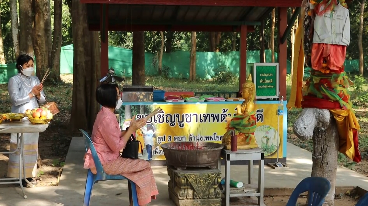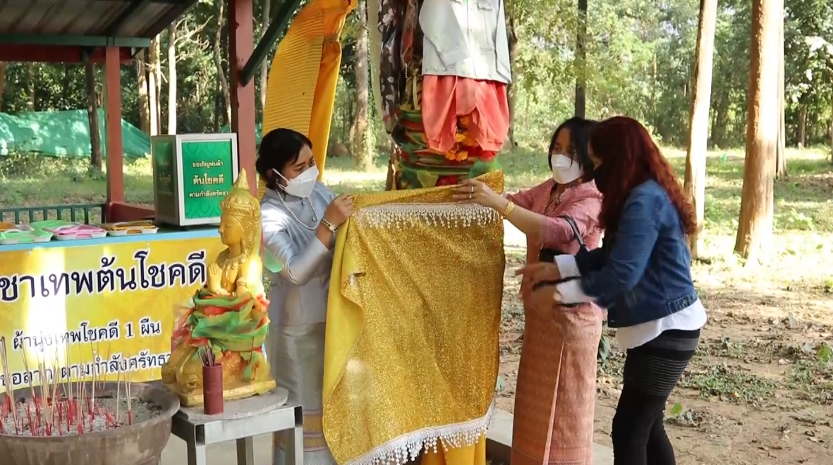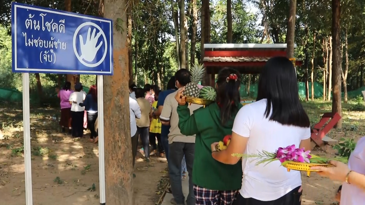 น.ส.ถาวร เอี่ยมสม หนึ่งในผู้โชคดีที่ถูกหวย เปิดเผยว่า ตนได้มาร่วมงานพิธีสมโภชพระนามพระพุทธสุพรรณมุนีศรีศาสดา (หลวงพ่อขุนด่าน) แล้วไปขอโชคลาภที่ต้นโชคดี ได้เลขเด็ดนำไปไปเสี่ยงโชค ซึ่งหลังจากสลากกินแบ่งรัฐบาลงวดที่ผ่านมาออก ปรากฏว่าล็อตเตอรี่ที่ตนซื้อไว้นั้นถูกรางวัลใหญ่ ได้เงินหลายแสนบาท นอกจากตนแล้วยังมีผู้ที่ถูกล็อตเตอรี่อีกหลายคน พร้อมทั้งชาวบ้านที่มารำแก้บนในวันนี้ก็ได้โชคกันทั่วหน้ารวมแล้วกว่าล้านบาท ซึ่งตนพร้อมทั้งผู้ที่ได้โชคและชาวบ้าน ได้รวบเงินจำนวนหนึ่งมาถวายหลวงพ่อขุนด่านด้วย โดยก่อนกลับชาวบ้านที่มาแก้บนต่างก็เดินถ่ายรูปภายในสวนดอกไม้ ที่มีทั้งดอกดาวเรือง ดอกหงอนไก่ ที่กำลังออกดอกบานสะพรั่งสวยงาม