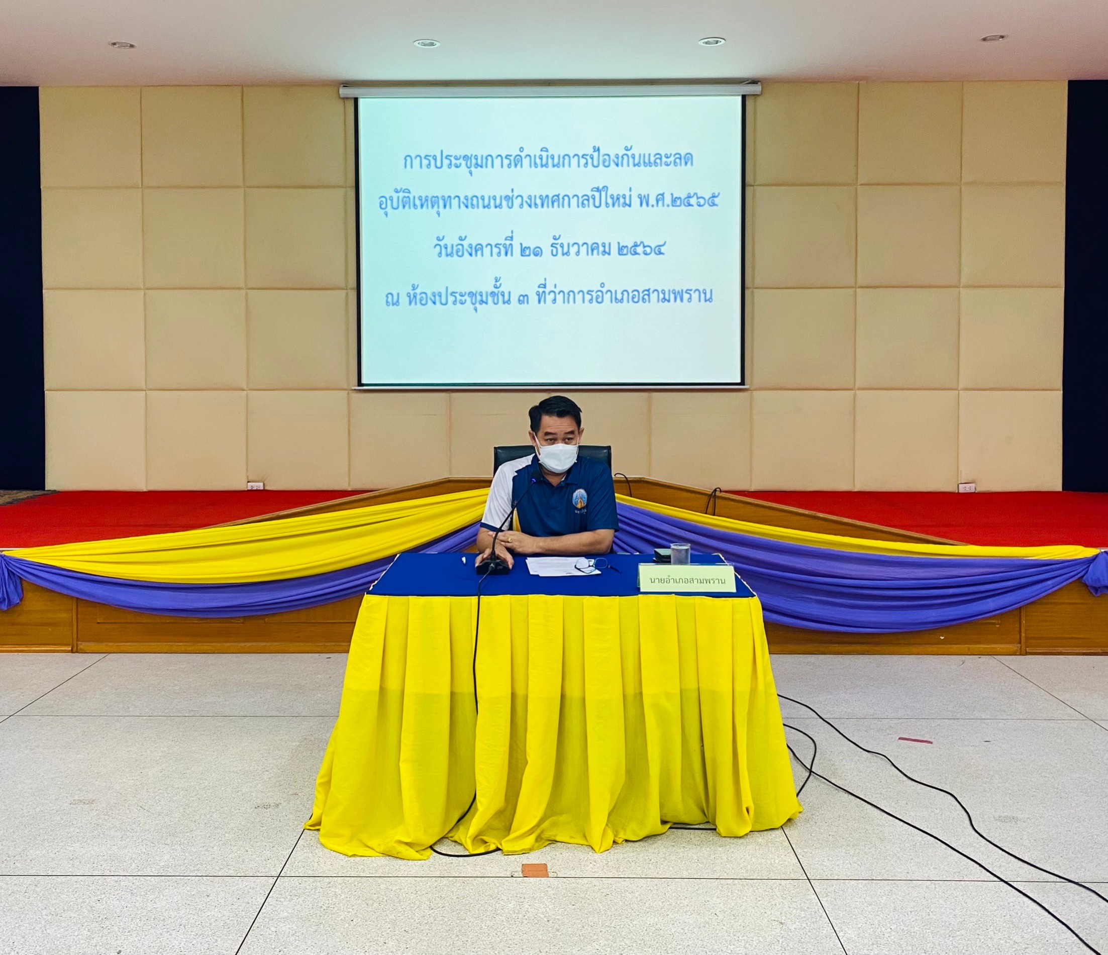 นายพัฒนพงษ์ สร้อยอินทรากุล นายอำเภอสามพราน เป็นประธานประชุมมาตรการป้องกันและลดอุบัติเหตุทางถนนช่วงเทศกาลปีใหม่ พ.ศ. 2565 พร้อมด้วยสถานีตำรวจภูธรสามพราน สถานีตำรวจภูธรโพธิ์แก้ว หัวหน้าส่วนราชการ โรงพยาบาลสามพราน โรงพยาบาลเมตตาประชารักษ์ องค์กรปกครองส่วนท้องถิ่นทุกแห่ง และกำนันทุกตำบล การเตรียมความพร้อมเพื่อลดปัจจัยเสี่ยงการเกิดอุบัติเหตุทางถนน และการกำหนดจุดการตั้งจุดตรวจในเขตพื้นที่อำเภอสามพราน