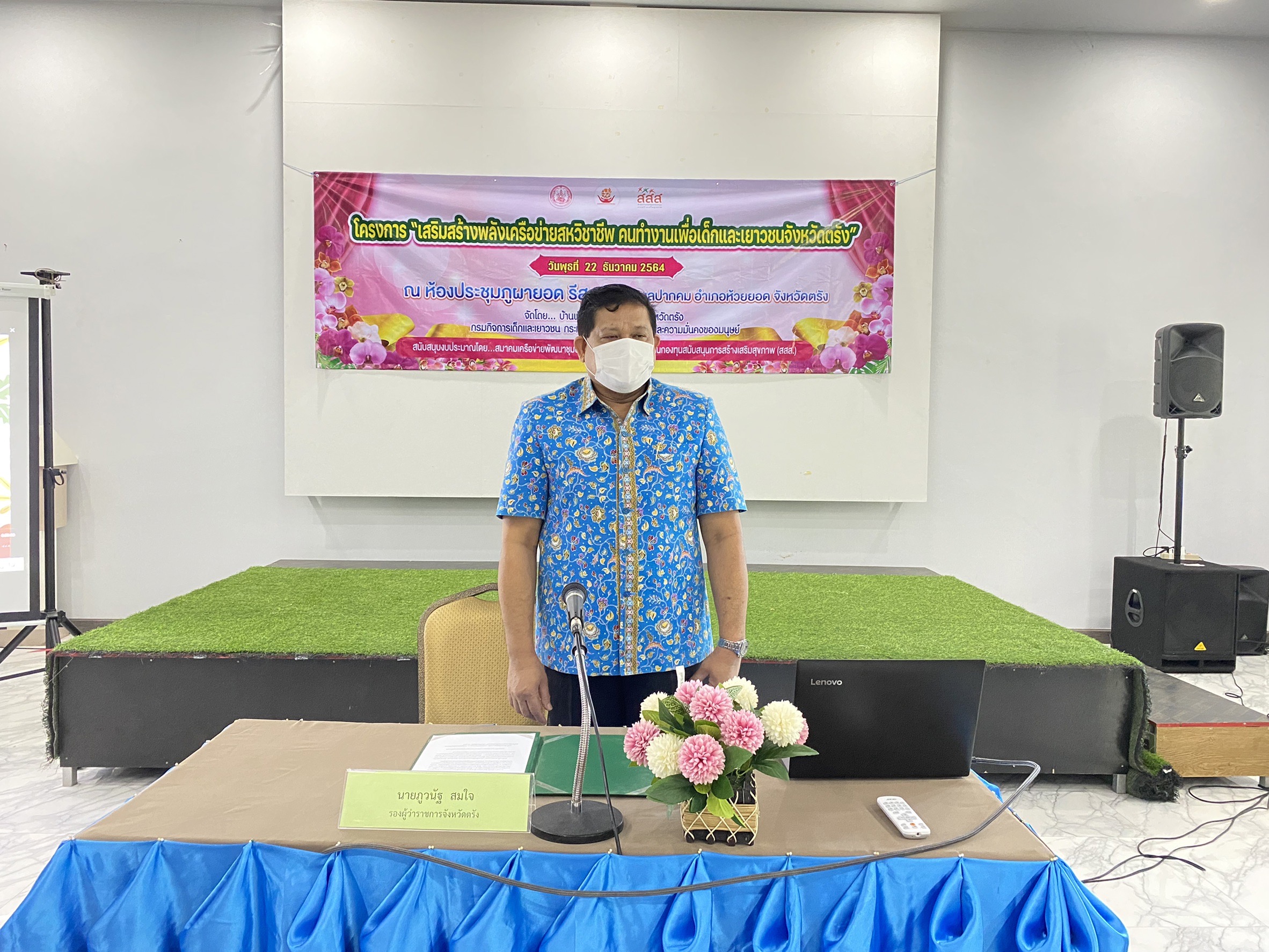 (22 ธ.ค.2564) นายภูวนัฐ สมใจ รองผู้ว่าราชการจังหวัดตรัง เป็นประธานในพิธีเปิดโครงการเสริมสร้างพลังเครือข่ายสหวิชาชีพ คนทำงานเพื่อเด็กและเยาวชนจังหวัดตรัง ณ ห้องประชุมภูผายอด รีสอร์ท ต.ปากคม อ.ห้วยยอด จ.ตรัง
