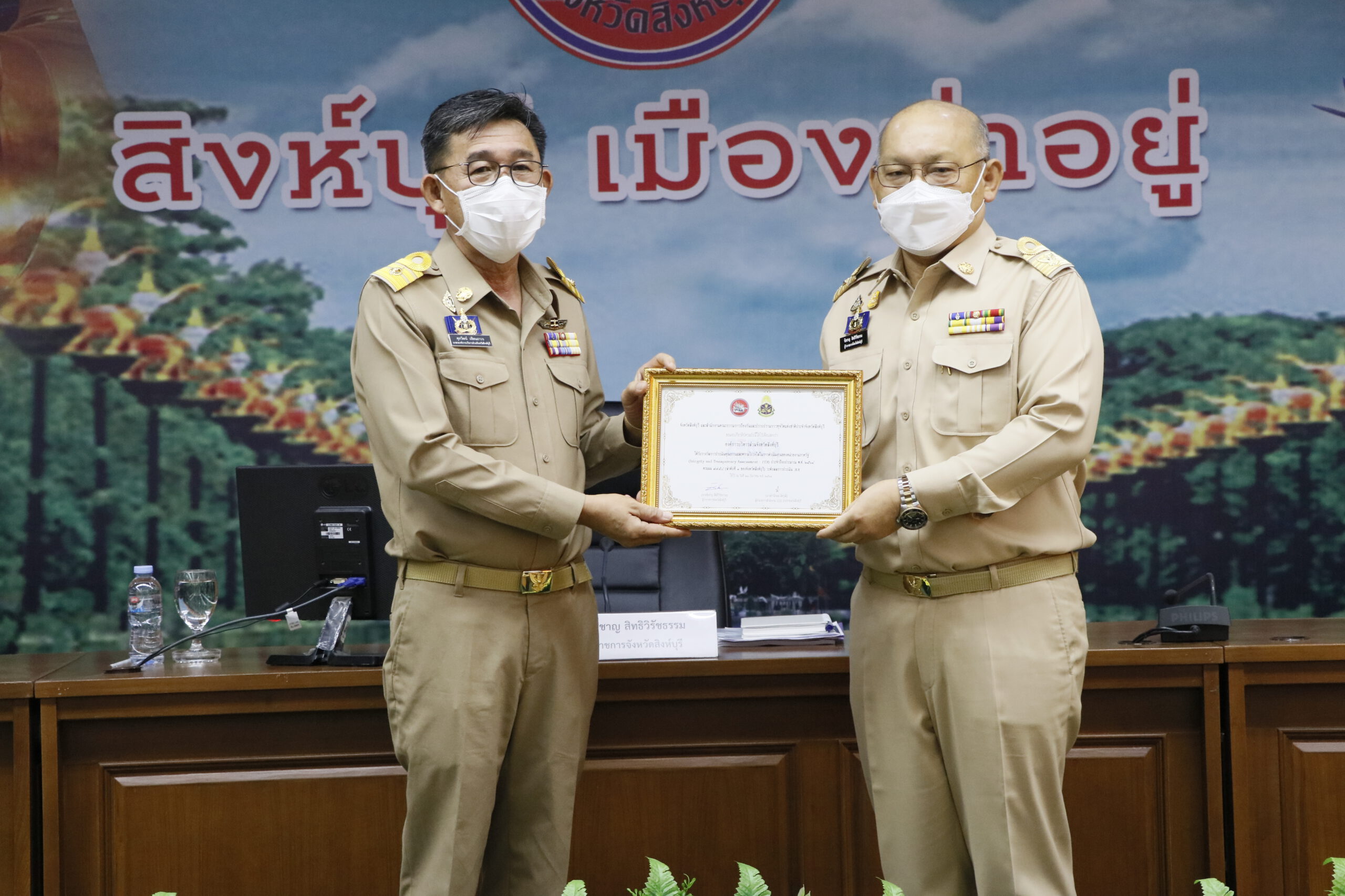 จังหวัดสิงห์บุรี จัดพิธี มอบรางวัลการประเมินคุณธรรมและความโปรงใสในการดำเนินงานของหน่วยงานภาครัฐ