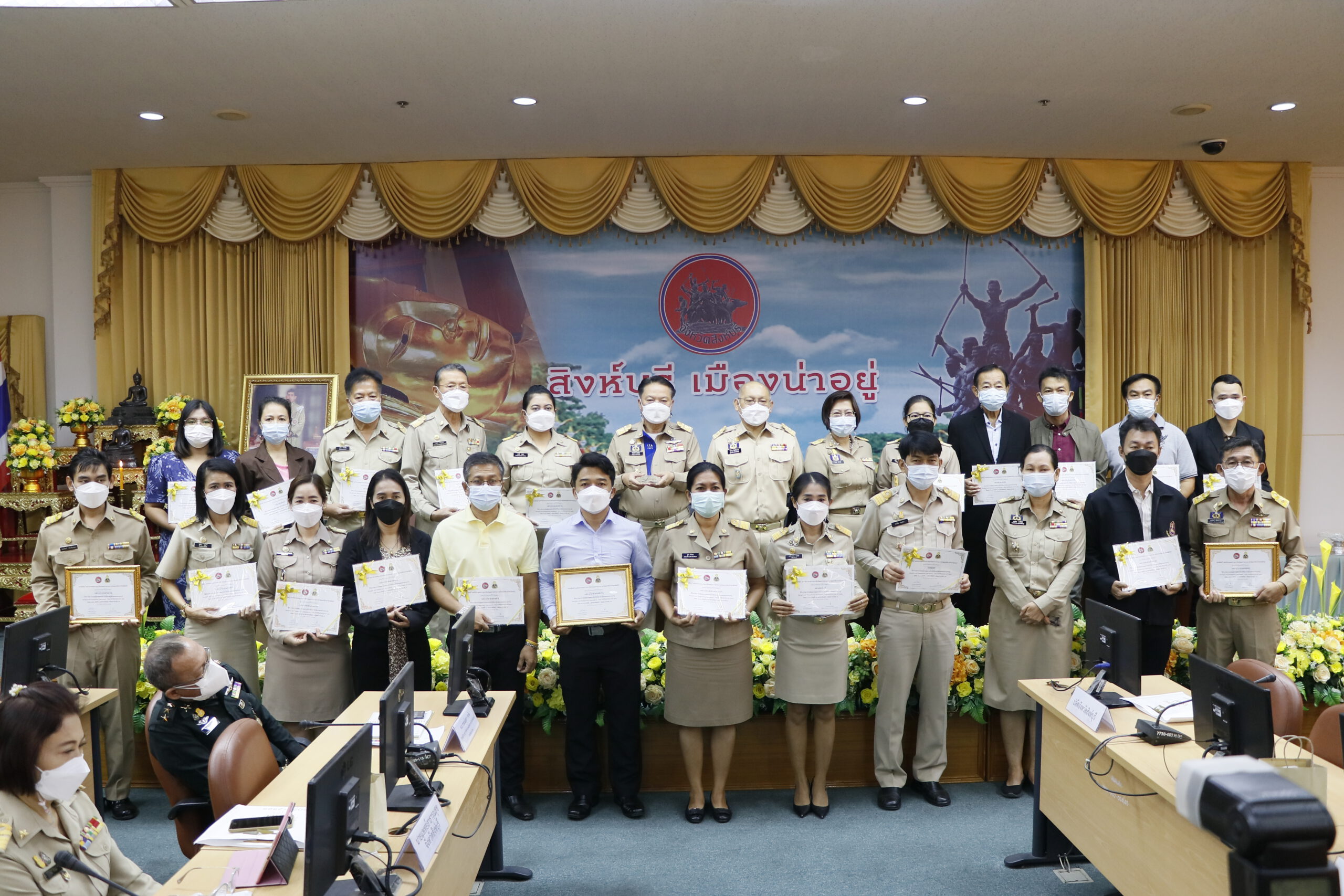 วันพฤหัสบดีที่ 22 ธันวาคม พ.ศ.2564 เวลา 09.10 น. นายชัยชาญ สิทธิวิรัชธรรม ผู้ว่าราชการจังหวัดสิงห์บุรี