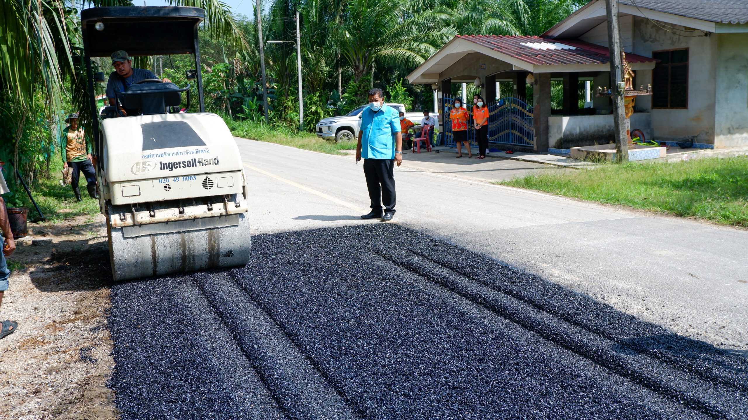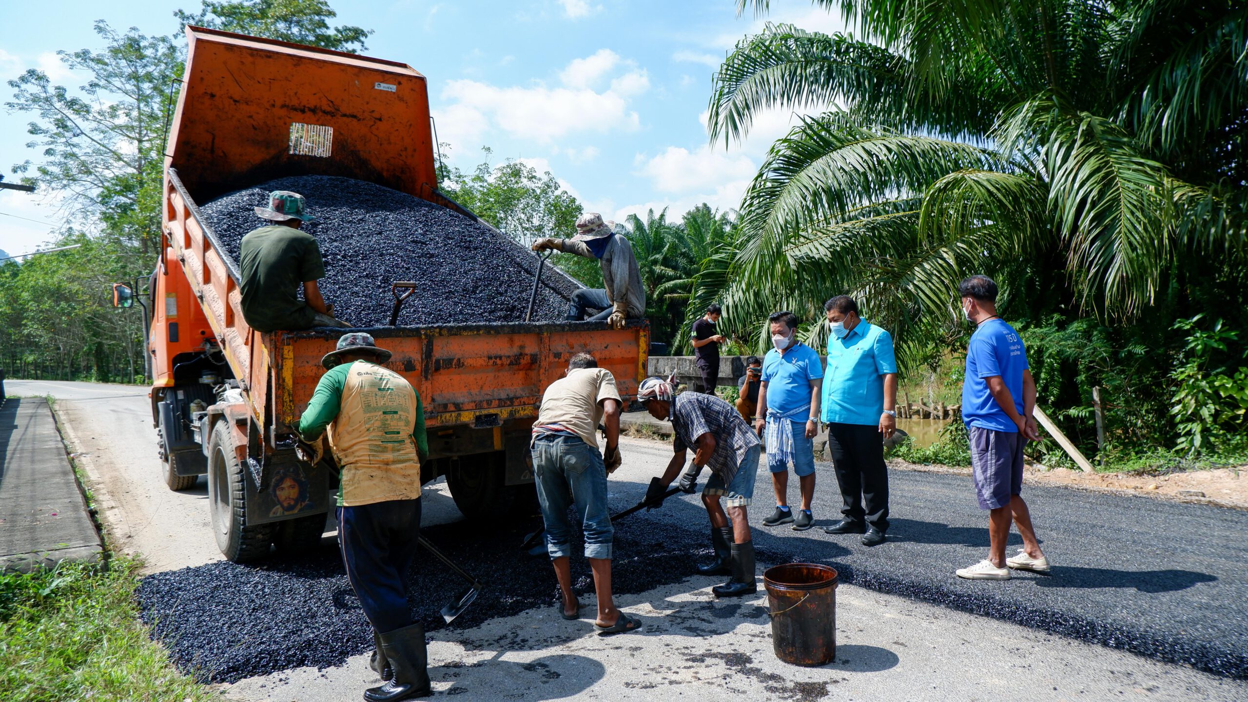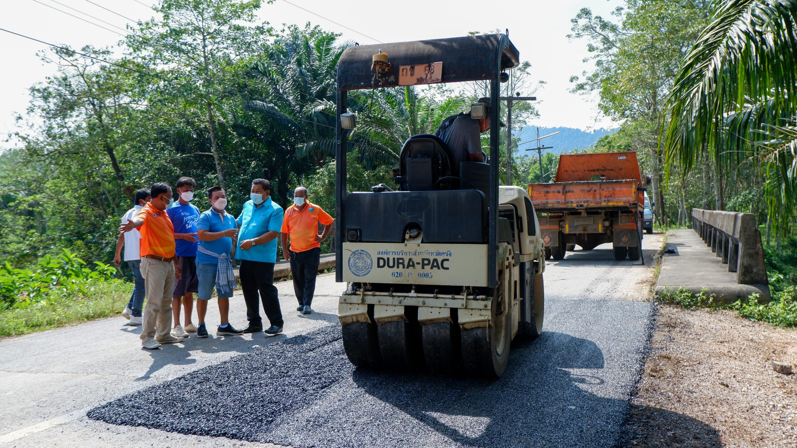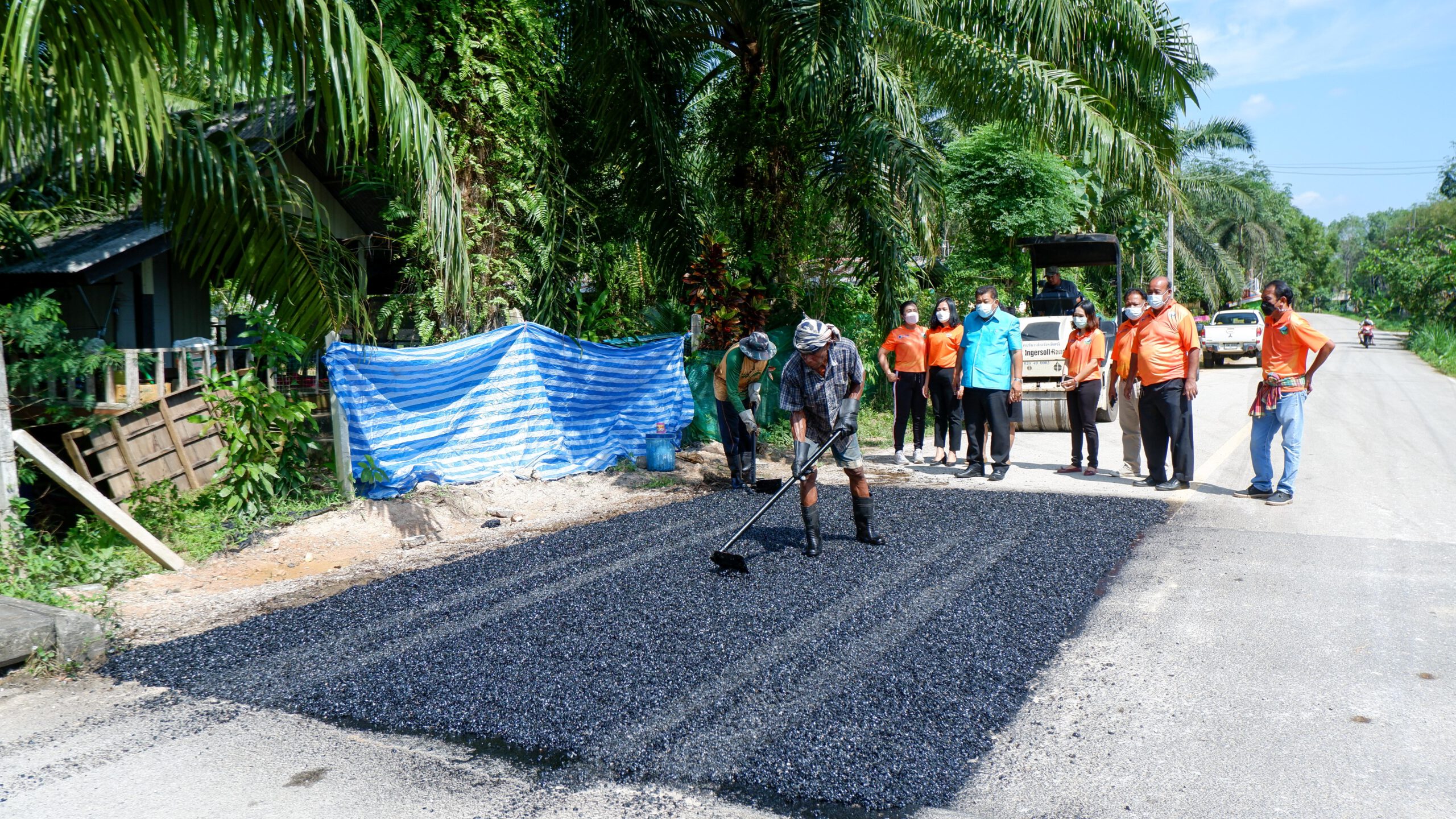 ตรัง รองนายกอบจ.ติดตามการซ่อมแซมผิวถนนที่ชำรุดเสียหายจากน้ำกัดเซาะช่วงฝนตก