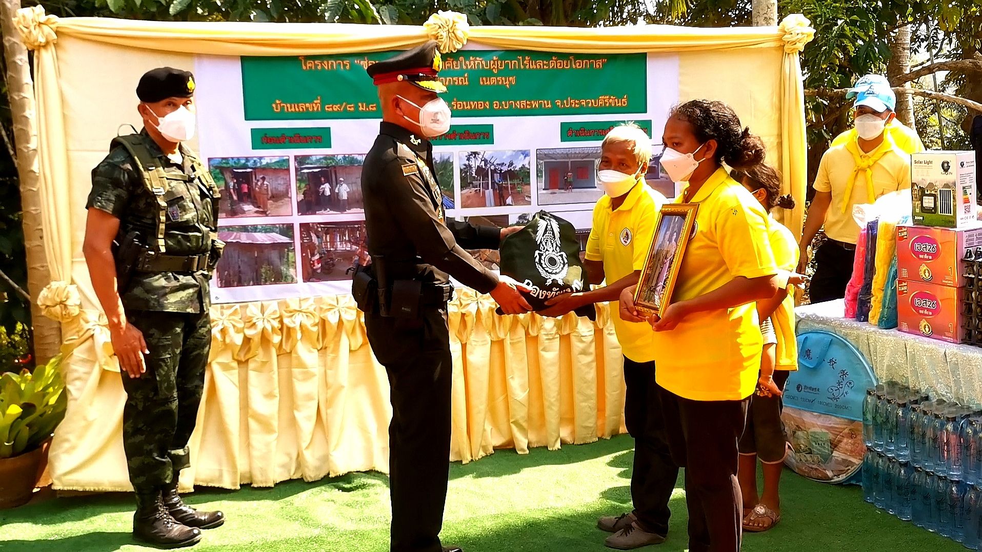 วันที่ 23 ธันวาคม 2564 พล.ท. สุขสรรค์ หนองบัวล่าง แม่ทัพภาคที่ 1 ได้อัญเชิญสิ่งของพระราชทาน มอบให้แก่ นางวราภรณ์เ เนตรนุช ชาวบ้านคลองลอย เลขที่ 89/8 หมู่ 8 ตำบลร่อนทอง อำเภอบางสะพาน จังหวัดประจวบคีรีขันธ์ โดยมี พ.ต.อ.เสมอ อยู่สำราญ ผกก.สภ.บางสะพาน พ.ต.อ.ภูมิชาย พันธ์กล้า ผกก.ตชด.14 ค่ายพระมงกุฎ พ.ต.ท.อาคม การบรรจง ผบ.ร้อย ตชด. 147 นายณัฐพงษ์ ไกรนรา ปลัดอำเภอฝ่ายความมั่นคงอำเภอบางสะพาน นายมงคล สุขประเสริฐ กำนันตำบลร่อนทอง นายบุญสอง ภักดีโยธา ผู้ใหญ่บ้าน หมู่ที่ 8 พร้อม หัวหน้าส่วนราชการ จิตอาสาพระราชทาน ให้การต้อนรับ