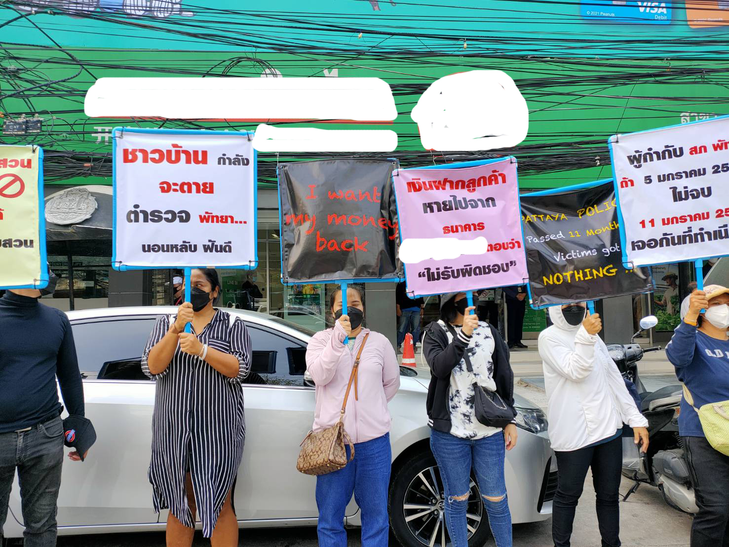 เมื่อวันที่ 24 ธ.ค. 64 ที่ศูนย์ปฏิบัติการสถานรถตำรวจภูธรเมืองพัทยา ผู้สื่อข่าวรายงานว่าได้มีม็อบชาวต่างชาติ หลากหลายเชื้อชาติ ได้มารวมตัวเคลื่อนไหวเพื่อทวงความเป็นธรรม จากกรณีที่มีกลุ่มผู้เสียหายทั้งชาวไทยและต่างชาติที่อาศัยอยู่ในเมืองพัทยา จ.ชลบุรี เคยรวมตัวกันเข้าแจ้งความร้องทุกข์ต่อ พนักงานสอบสวน สภ.เมืองพัทยา ว่าถูกอดีตผู้ช่วยผู้จัดการธนาคาร (ผช.ผจก.) ชื่อดังแห่งหนึ่งสับเปลี่ยนเงินในบัญชี ซึ่งบางรายถูกหลอกให้ร่วมลงทุนจนสูญเงินนับล้านบาท ขณะที่บางรายถูกหลอกให้ร่วมลงทุนในกองทุนต่างๆ โดยอ้างว่าจะได้ค่าตอบแทนหรือดอกเบี้ยสูงจนสูญเงินหลายสิบล้านบาท