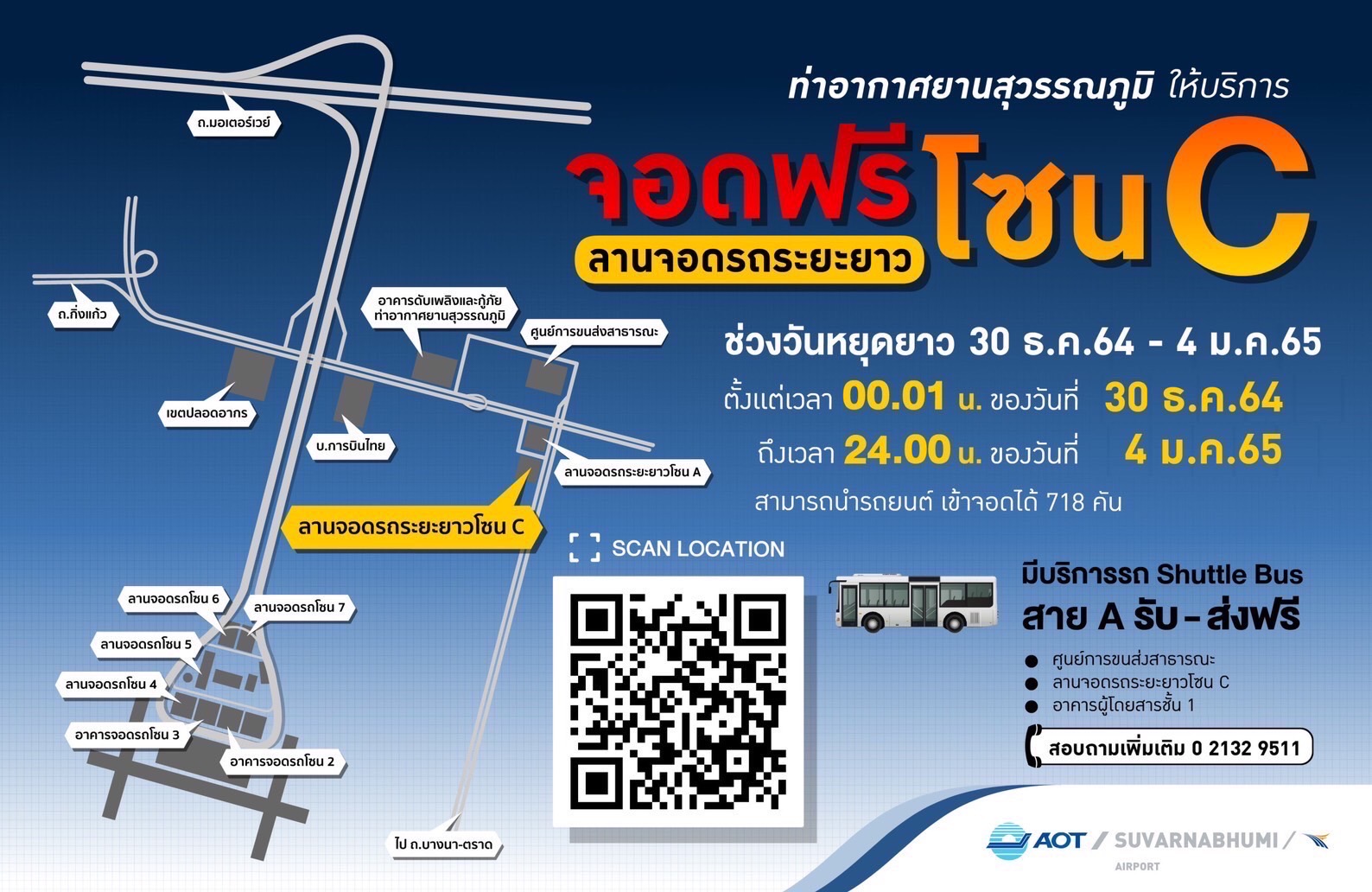 *****วันที่ 25 ธันวาคม 2564 ท่าอากาศยานสุวรรณภูมิ (ทสภ.) เตรียมความพร้อมในการรองรับการเดินทางของผู้โดยสารช่วงเทศกาลคริสต์มาสและปีใหม่ 2565 ยกเว้นค่าบริการจอดรถโซน C เป็นของขวัญแก่ผู้ใช้บริการ และถือปฏิบัติตามมาตรฐานความปลอดภัยด้านสาธารณสุข D – M – H – T – T