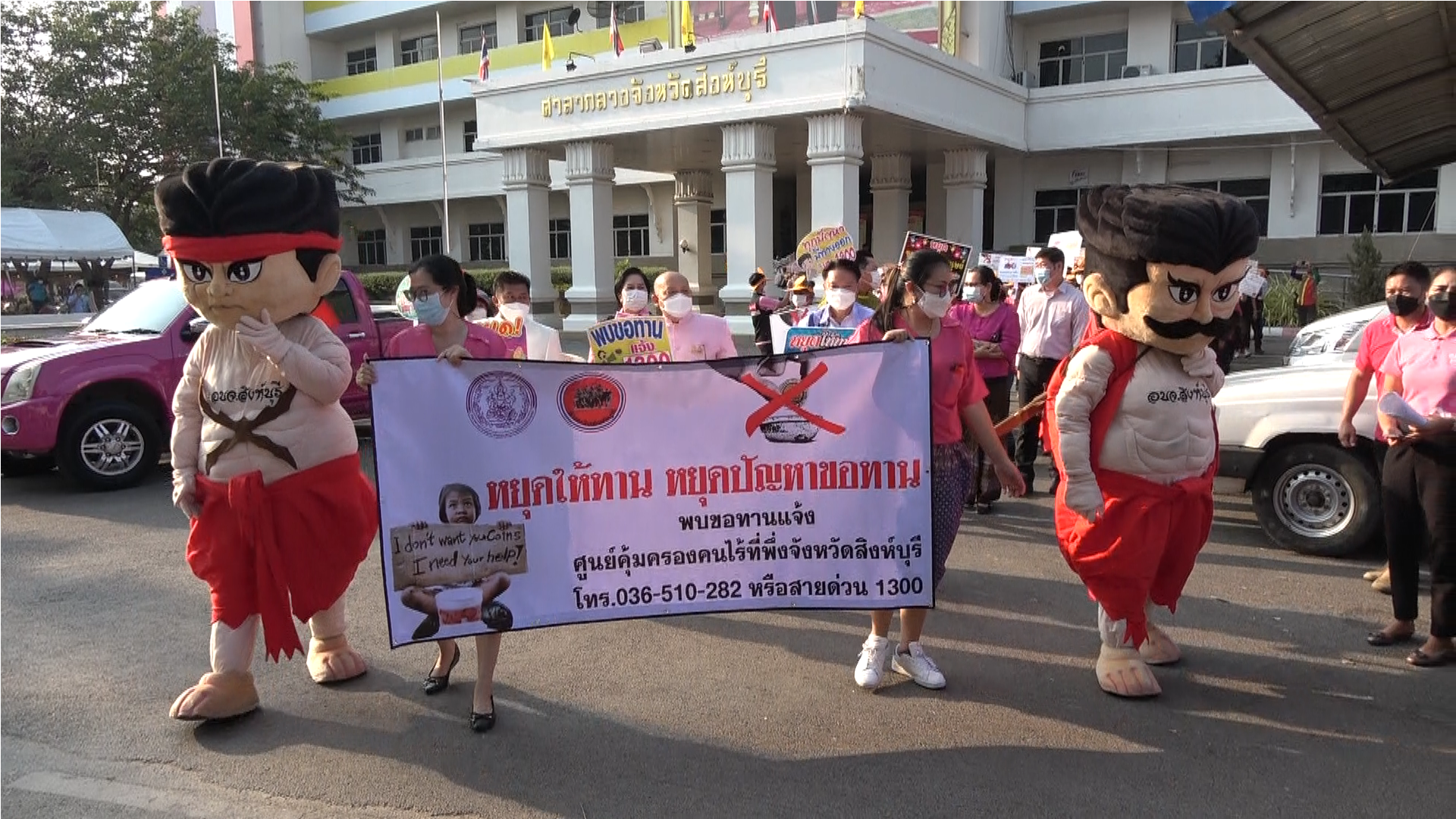 จังหวัดสิงห์บุรี เดินขบวนรณรงค์ประชาสัมพันธ์ หยุดให้ทาน หยุดปัญหาขอทาน