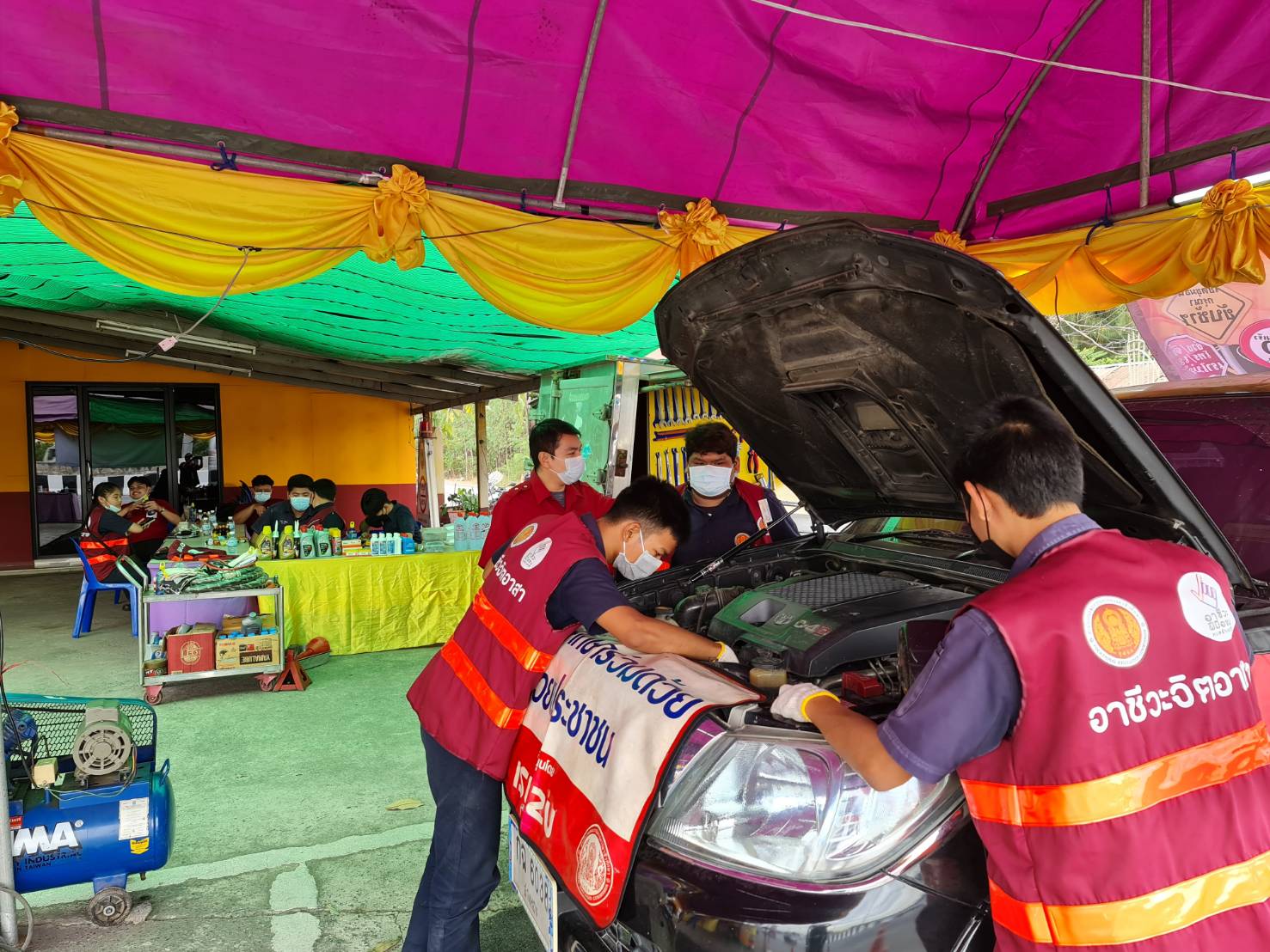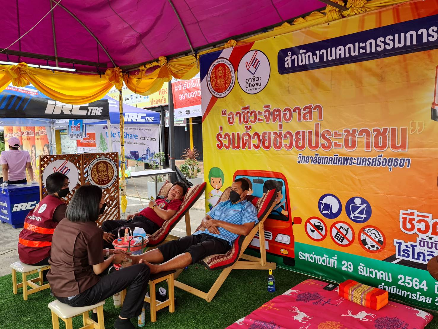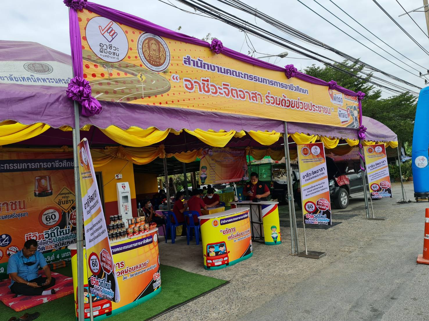 โดยจะมีจุดพักรถให้ประชาชน จอดพักเข้าห้องน้ำอย่างพหลโยธิน จุดทางหลวงวังน้อย ต.สนับทึบ จะมีน้ำดื่ม กาแฟ ผ้าเย็นคอยบริการประชาชนและอาชีวจิตอาสาร่วมด้วยช่วยประชาชน บริการซ่อมรถฟรี โดยนักศักษาอาชรีวะพระนครศรีอยุธยา นวดแผนไทย และ ยังตั้งโรงทานทำอาหารเลี้ยง ผู้ที่จอดพักรถและเจ้า หน้าที่ ที่ทำงาน ให้