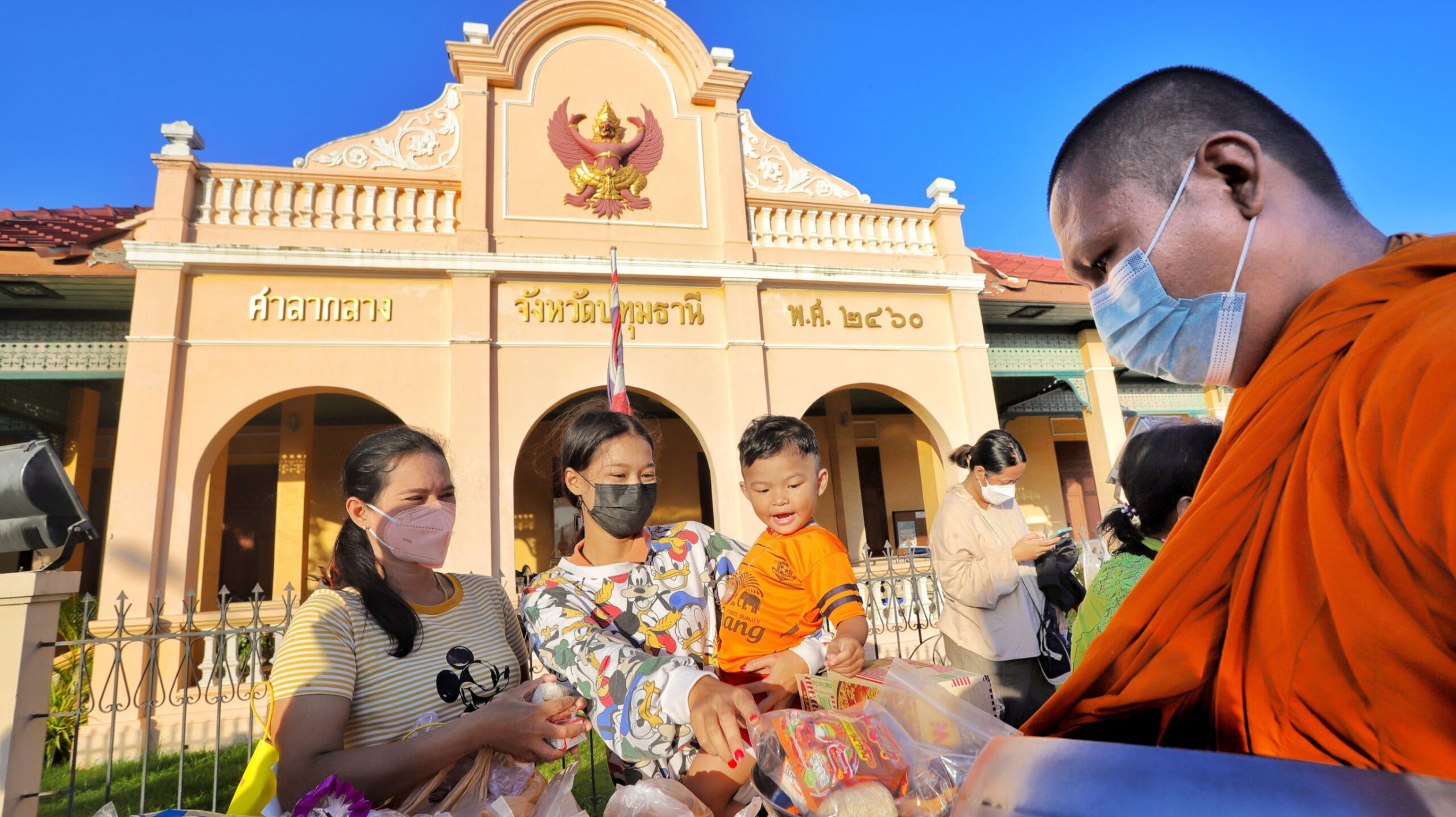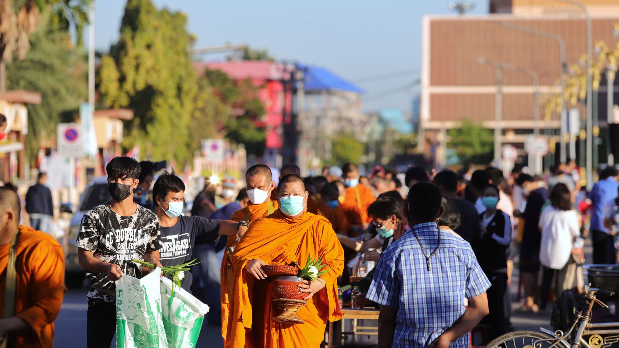 เมื่อวันที่ 1 ม.ค. 65 ผู้สื่อข่าวรายงานว่า บรรยากาศการทำบุญใส่บาตรต้อนรับวันขึ้นปีใหม่ 2565 ของประชาชนชาวจังหวัดปทุมธานี ที่บริเวณ ถนนหน้าศาลากลางปทุมธานี (หลังเก่า) อำเภอเมือง จังหวัดปทุมธานี โดยมีพุทธศาสนิกชนเดินทางมารอใส่บาตรพระภิกษุ สามเณร ที่จะมารับบิณฑบาตในช่วงเช้า