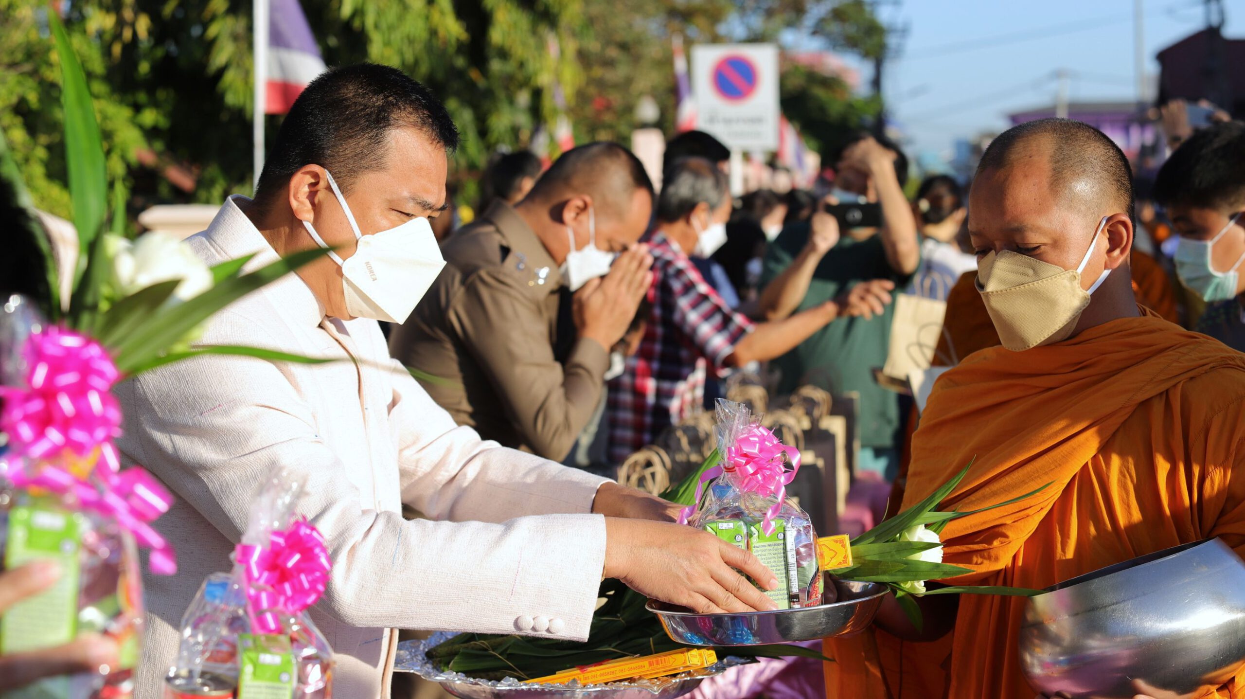 ผู้ว่าฯนำประชาชน ทำบุญใส่บาตรวันขึ้นปีใหม่ 2565