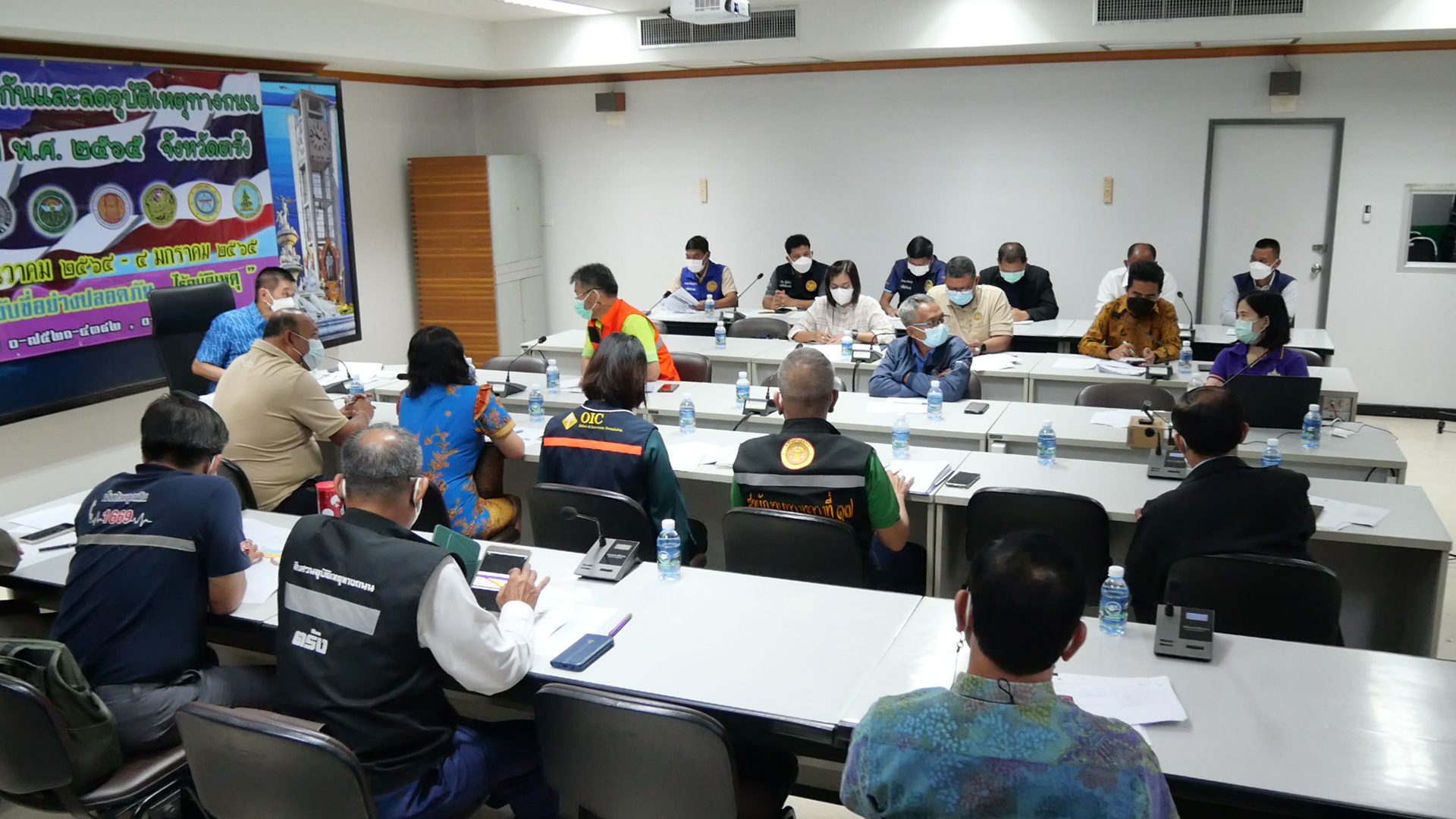 ที่ห้องศรีตรัง ชั้น 3 ศาลากลางจังหวัดตรัง นายขจรศักดิ์ เจริญโสภา ผู้ว่าราชการจังหวัดตรัง เปิดเผยว่า ตามที่จังหวัดตรังได้จัดตั้งศูนย์ปฏิบัติการป้องกันและลดอุบัติเหตุทางถนน เทศกาลปีใหม่ 2565 จังหวัดตรัง ในช่วงระหว่างวันที่ 29 ธันวาคม 2564 – 4 มกราคม 2565 เป็นระยะเวลา 7 วันนั้น จังหวัดตรังได้วางแผนซักซ้อมการปฏิบัติงานด้านการลดอุบัติเหตุทางถนน รวมถึงเน้นย้ำให้ทุกอำเภอได้เพิ่มความเข้มข้นในการปฏิบัติงานในทุกด่านตรวจ ทั้งด่านหลัก และด่านชุมชน รวมถึงการบังคับใช้กฎหมาย การตรวจวัดระดับแอลกอฮอล์ขณะขับขี่ คุมเข้มการสวมหมวกนิรภัย 100% การคาดเข็มขัดนิรภัย เพื่อลดการสูญเสียของพี่น้องประชาชน ในส่วนผู้ใช้รถใช้ถนนนั้น