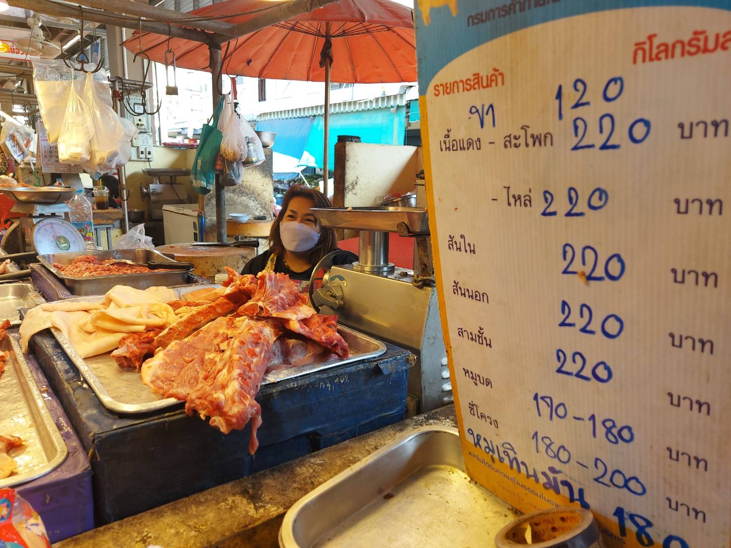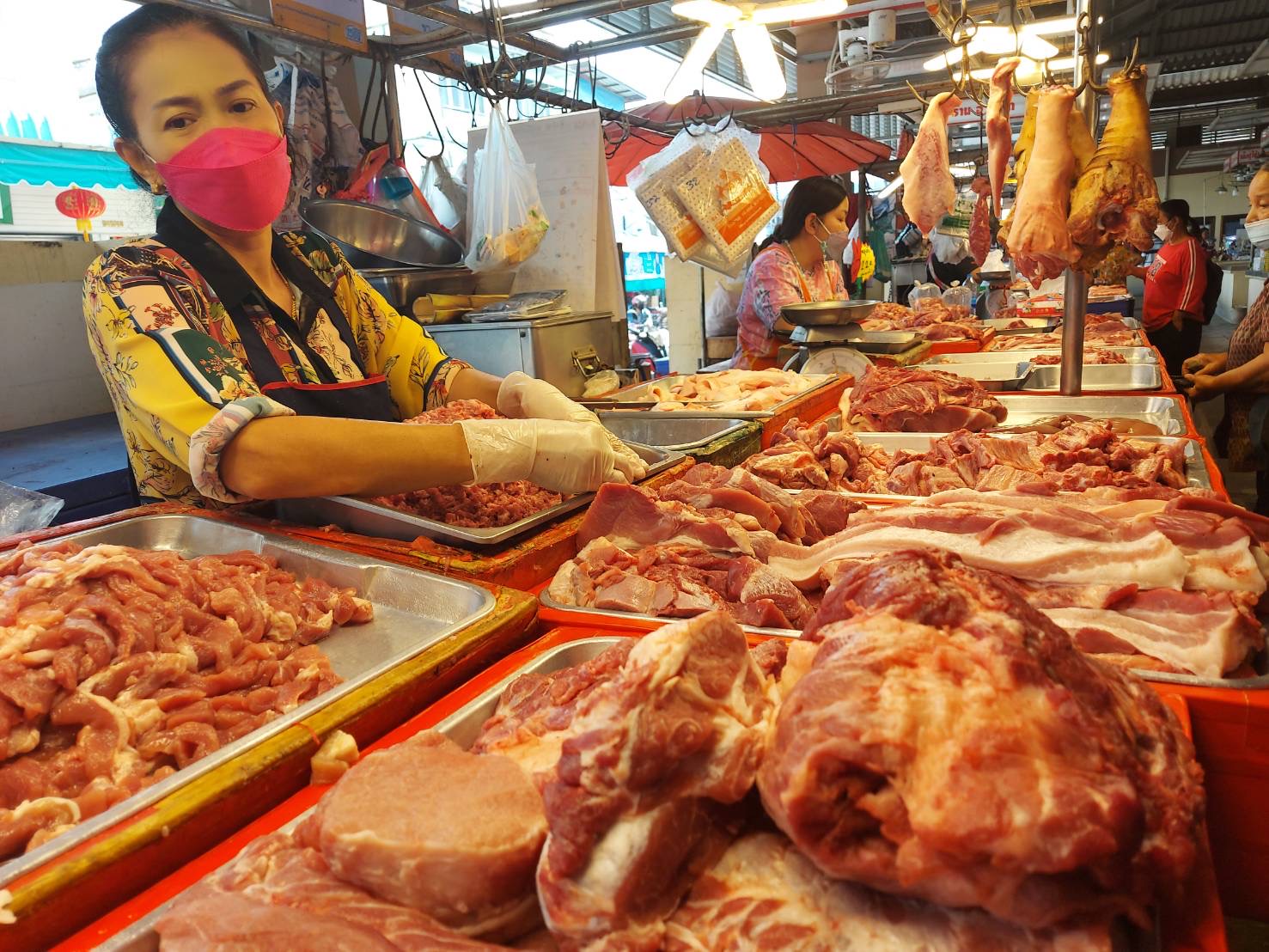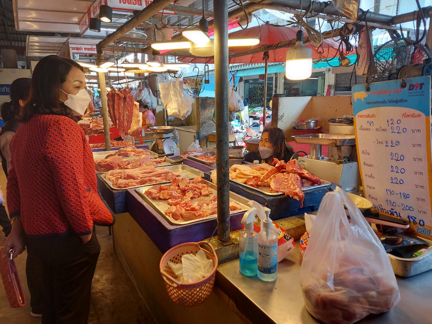 วันที่ 5 มกราคม 2565 นางวิมล เจริญฤทธิ์ พาณิชย์จังหวัดสิงห์บุรี ลงพื้นที่ติดตามสถานการณ์ราคาจำหน่ายสุกรมีชีวิต และสุกรชำแหละ ในพื้นที่จังหวัดสิงห์บุรี สุกรมีชีวิตหน้าฟาร์ม ราคาปรับสูงขึ้นอย่างต่อเนื่อง โดยราคาสุกรมีชีวิต กก.ละ 103-105 บาท สูงขึ้นจากวันที่ 28 ธันวาคม 2564 กก.ละ 3-5 บาท จึงส่งผลให้ราคาสุกรชำแหละในตลาดสดเทศบาลเมืองสิงห์บุรีปรับสูงขึ้นต่อเนื่องเช่นกัน หมูเนื้อแดง (ไหล่/สะโพก) ราคากิโลกรัมละ 190-200 บาท และหมูเนื้อแดงแช่แข็ง (ไหล่/สะโพก) ใน Shop ราคากิโลกรัมละ 164-188 บาท ในส่วนของห้างแม็คโคร สิงห์บุรี จัดโปรโมชั่น ลดราคาสุกรชำแหละเนื้อแดง (สะโพก) ราคากิโลกรัมละ 164 บาท /กก. สุกรชำแหละเนื้อแดง (หัวไหล่) ราคากิโลกรัมละ 165 บาท