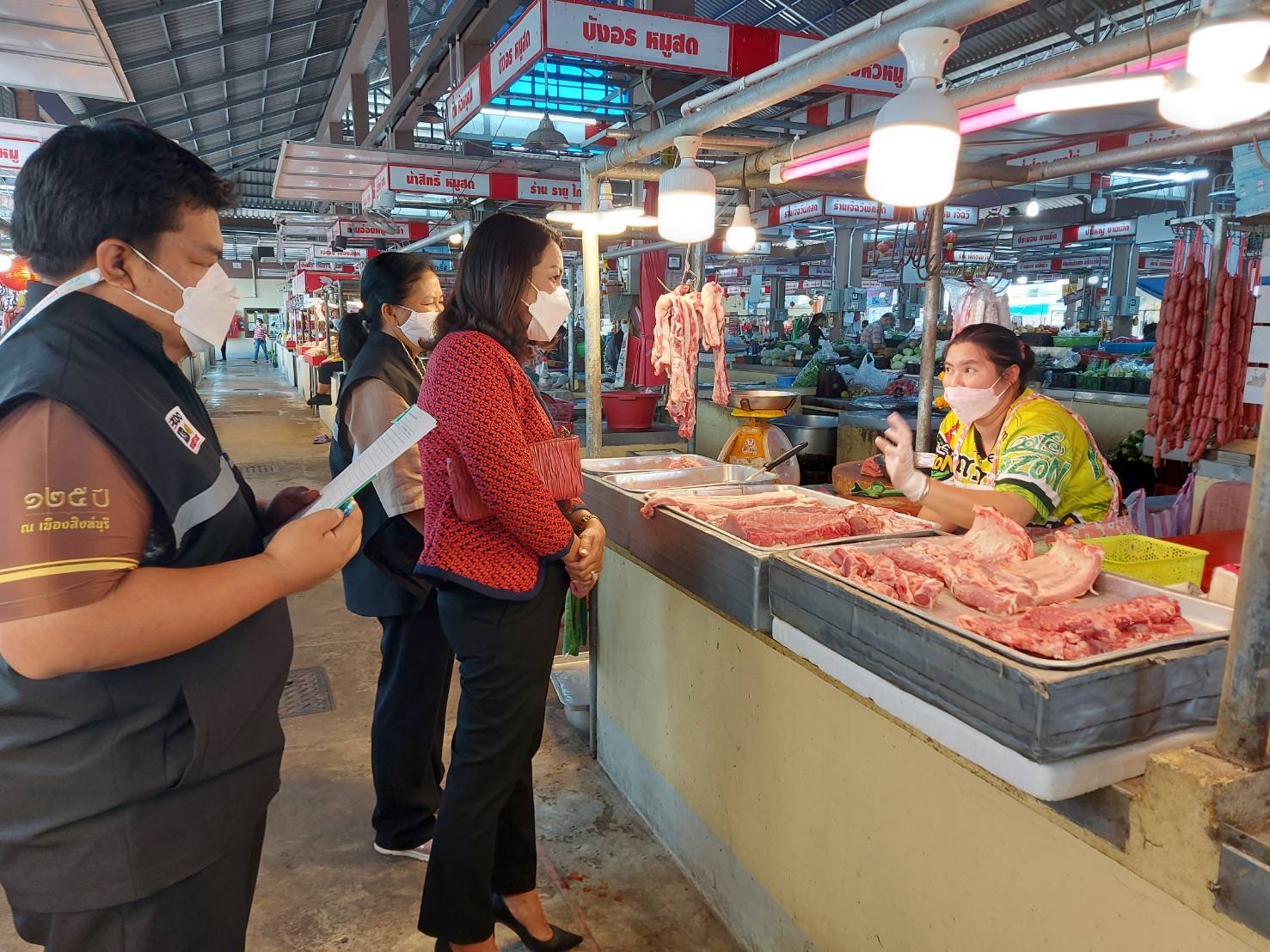 สิงห์บุรี พาณิชย์จังหวัดลงพื้นที่ติดตามราคาจำหน่ายเนื้อหมู